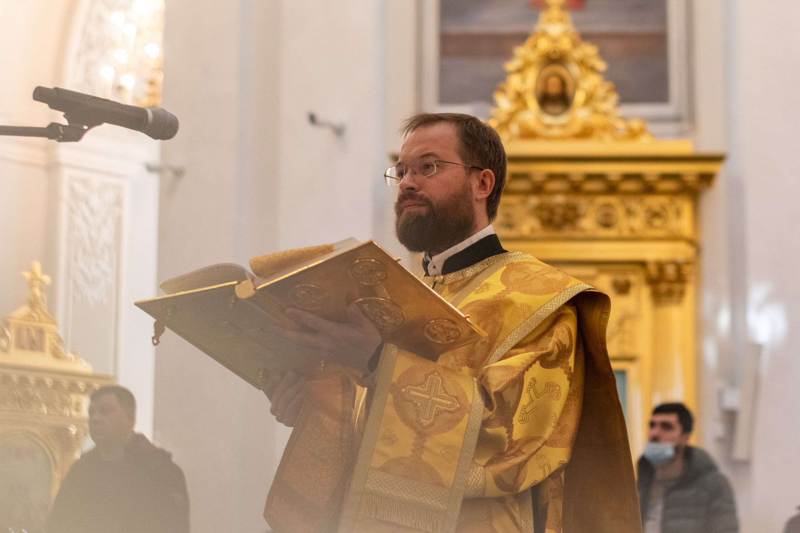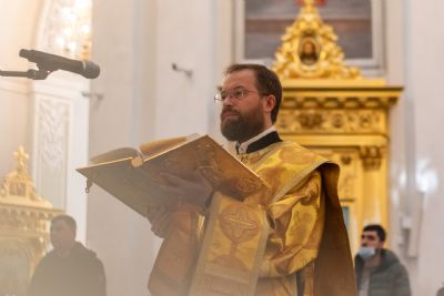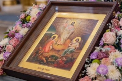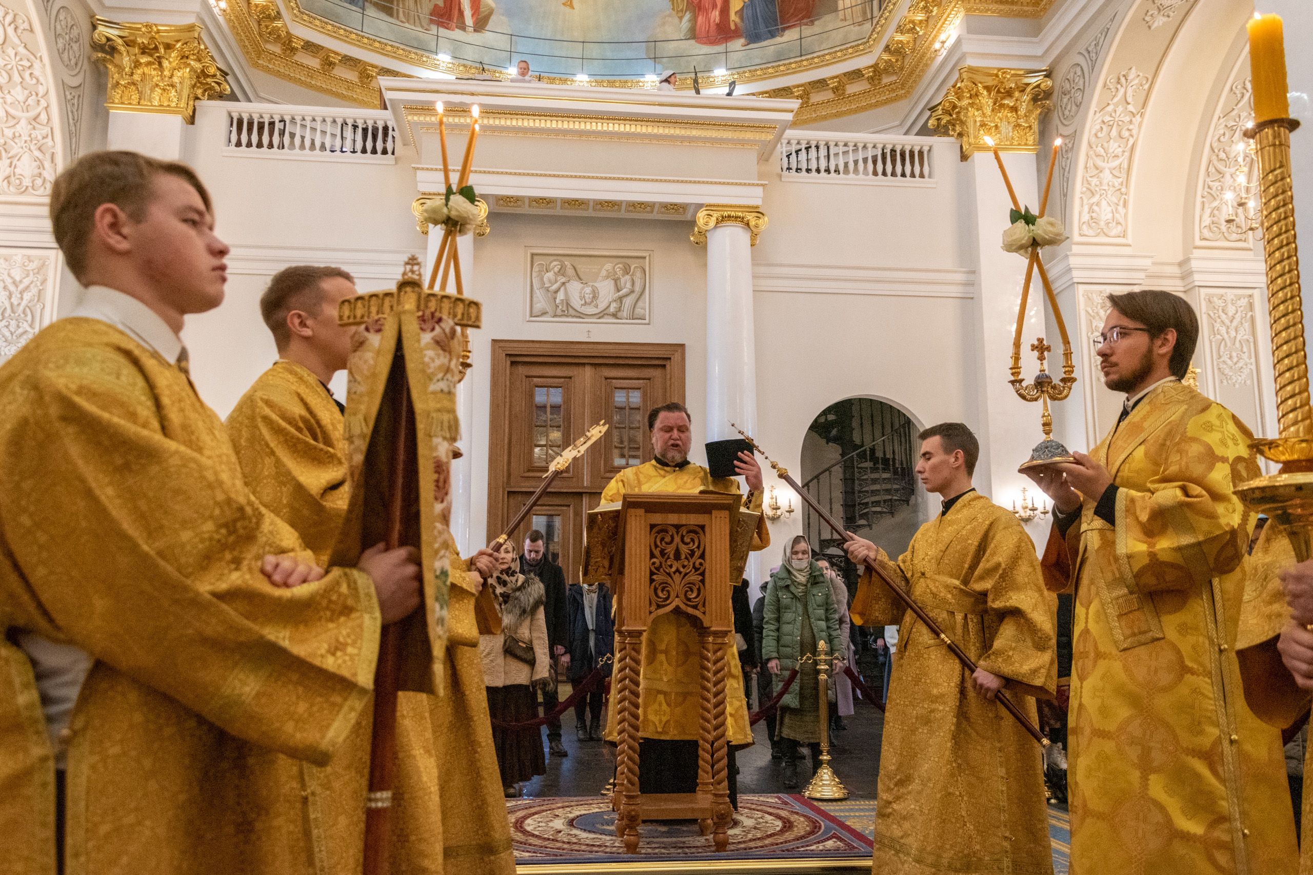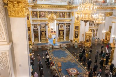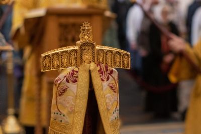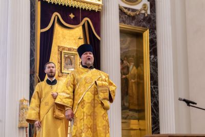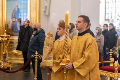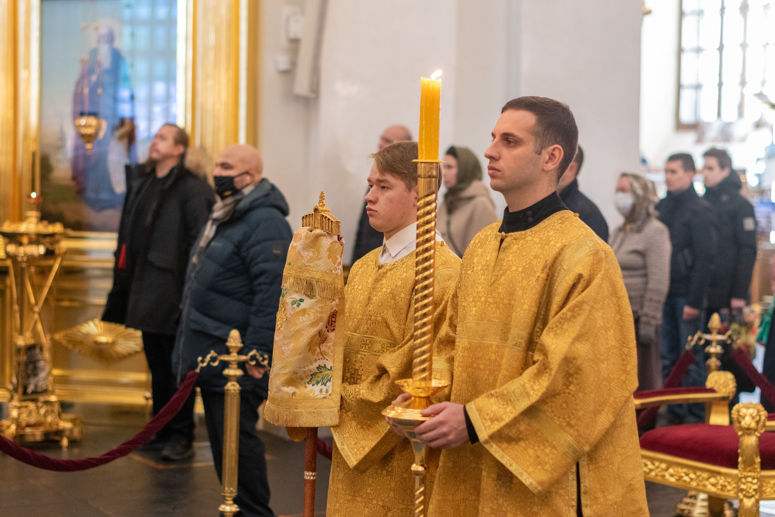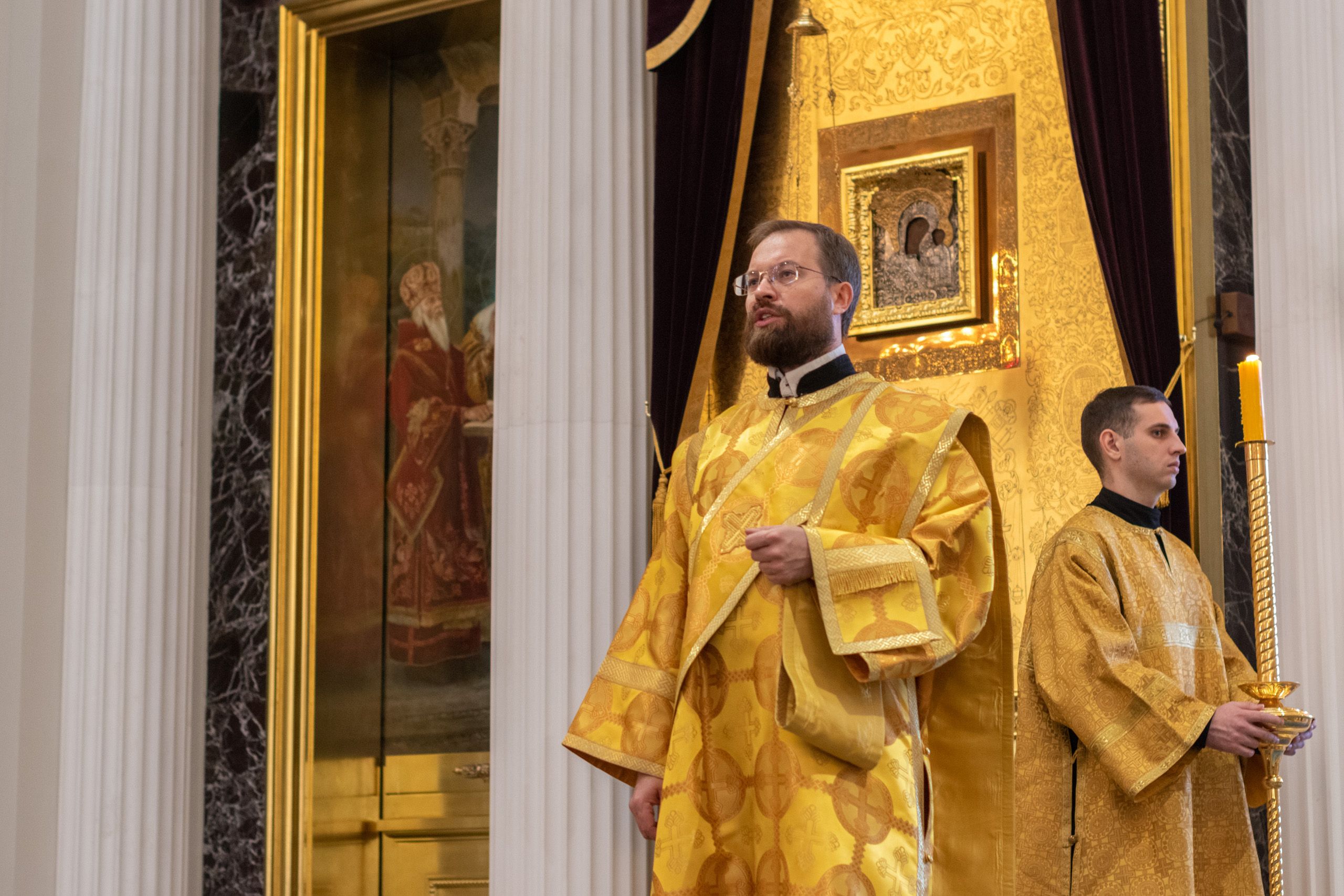 Богослужебные песнопения исполнил архиерейский смешанный хор под управлением Марины Литвиненко. По запричастном стихе проповедь произнёс иерей Кирилл Поморцев. В завершение богослужения архипастырь и священнослужители совершили славление перед Казанским образом Божией Матери.