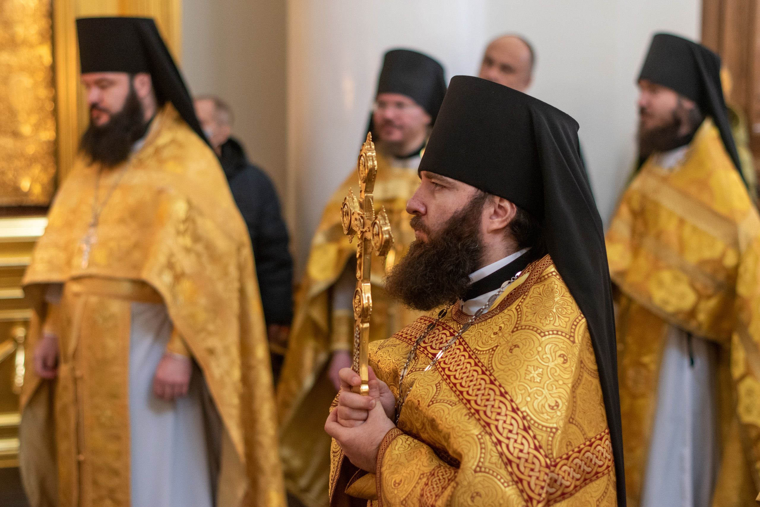Его Высокопреосвященству сослужили наместник обители игумен Марк (Виленский), настоятель Вознесенского собора города Михайловска (Екатеринбургская епархия) иерей Кирилл Поморцев, иеромонах Алексий (Яцейко), насельники монастыря в священном сане.