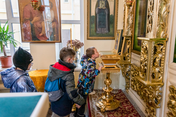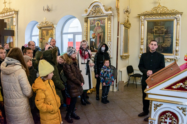 В начале экскурсии взрослые и дети посетили храм во имя святого праведного Иоанна Кронштадтского, где узнали о порядке богослужебной жизни. Также пришедшие смогли приложиться к храмовой святыне — мощам преподобного Гавриила Седмиезерного.