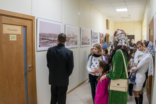 Также посетители ознакомились с расположенной на втором этаже фотовыставкой, посвященной истории Казанско-Богородицкого монастыря и жизни Татарстанской митрополии. В завершение экскурсии состоялось дружеское чаепитие в трапезной семинарии.