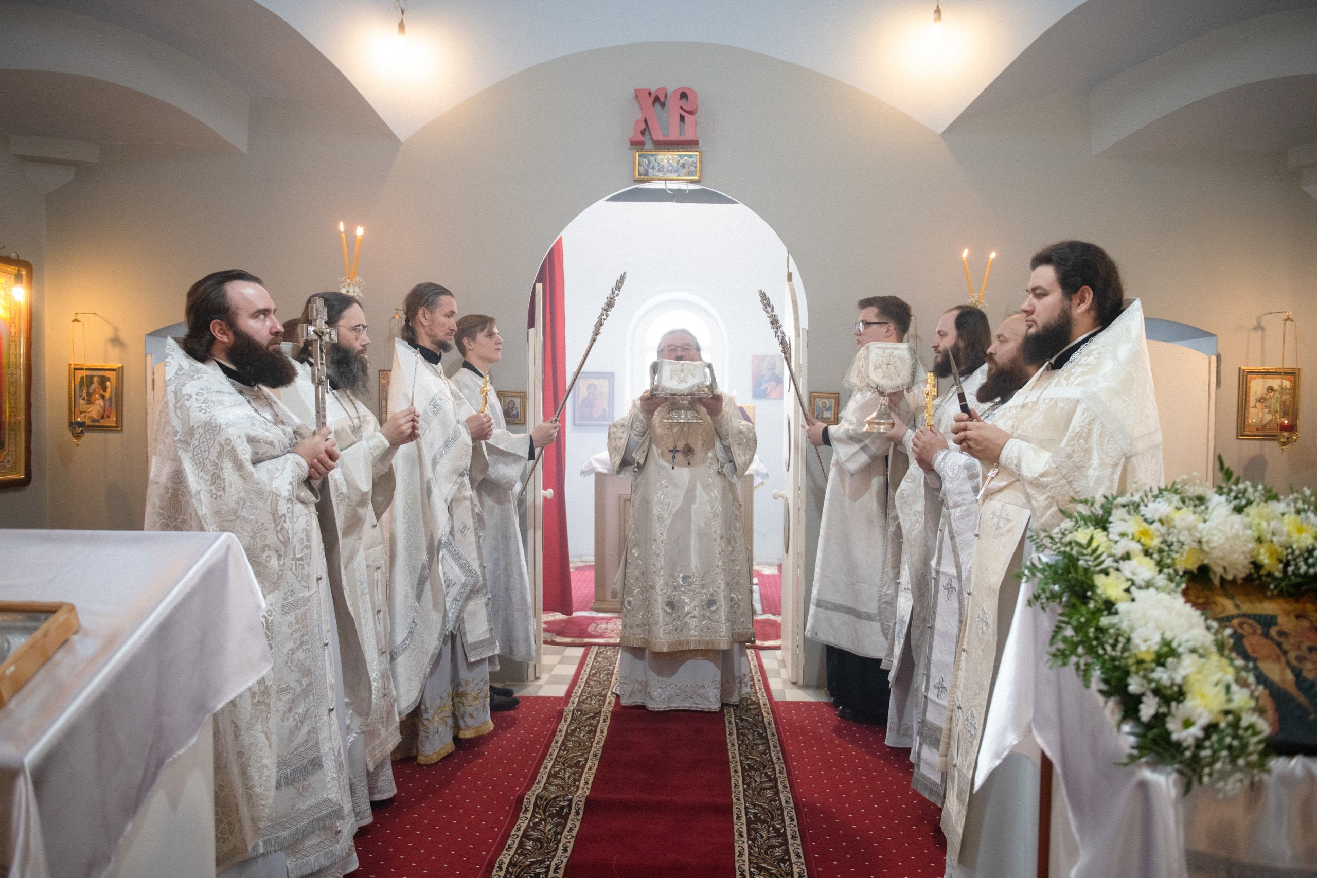 Его Высокопреосвященству сослужили секретарь Татарстанской митрополии иеромонах Кирилл (Корытко), благочинный Зеленодольского церковного округа протоиерей Святослав Мирганиев, настоятель Богоявленского храма иерей Анатолий Григорьев, благочинный Верхнеуслонского церковного округа игумен Пимен (Ивентьев), настоятель храма праведного Иоанна Кронштадтского при Казанской духовной семинарии иеромонах Филипп (Киселёв), иеромонах Алексий (Яцейко).