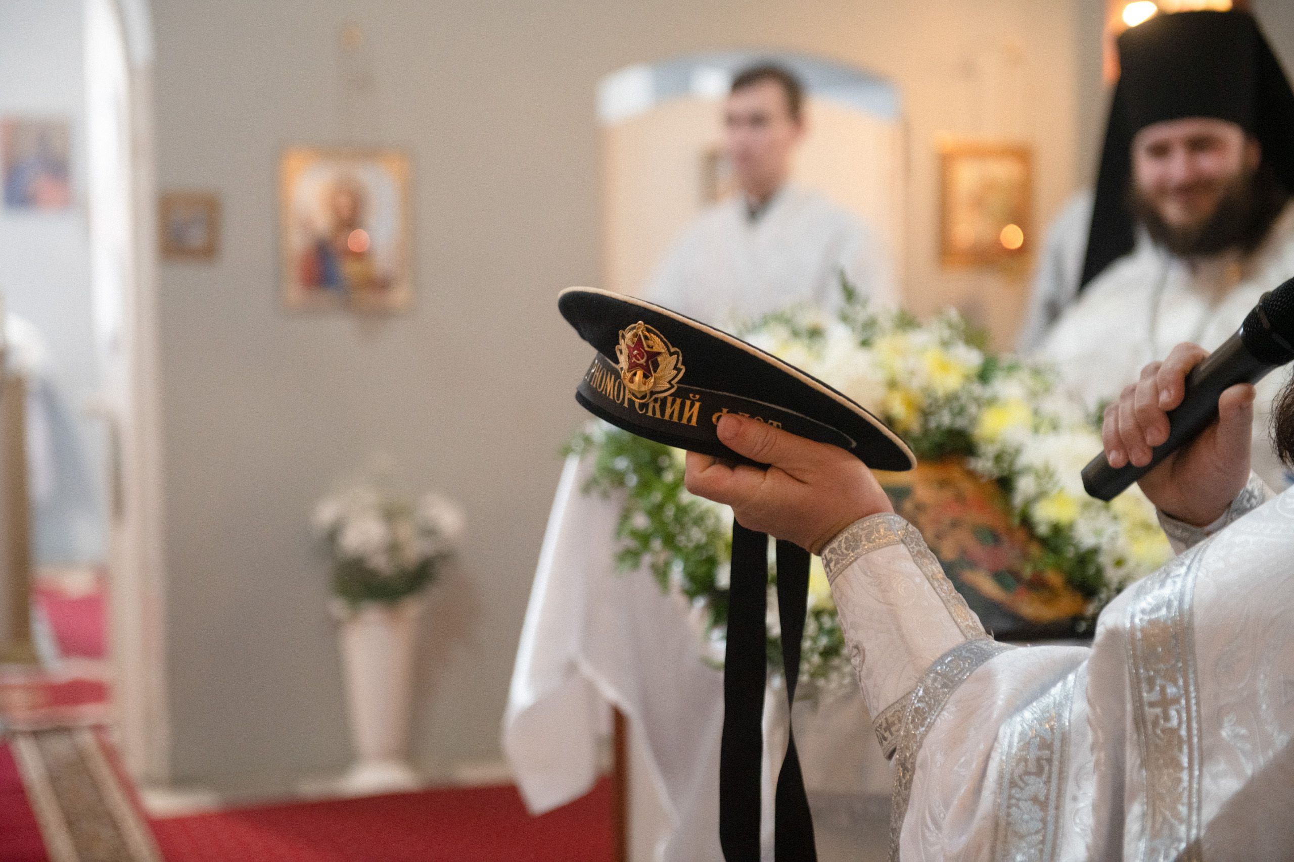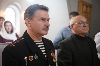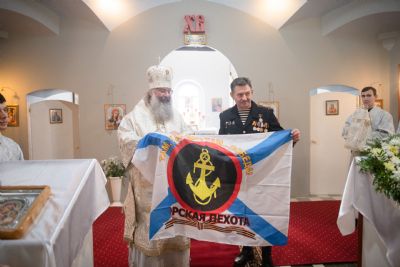 Настоятель Богоявленского храма сердечно поблагодарил Его Высокопреосвященство за посещение и совместную молитву в канун престольного праздника храма. Отец Анатолий отметил, что многие прихожане храма — бывшие военнослужащие морской пехоты ВМФ РФ и преподнёс владыке Кириллу на память морскую фуражку и флаг морской пехоты.