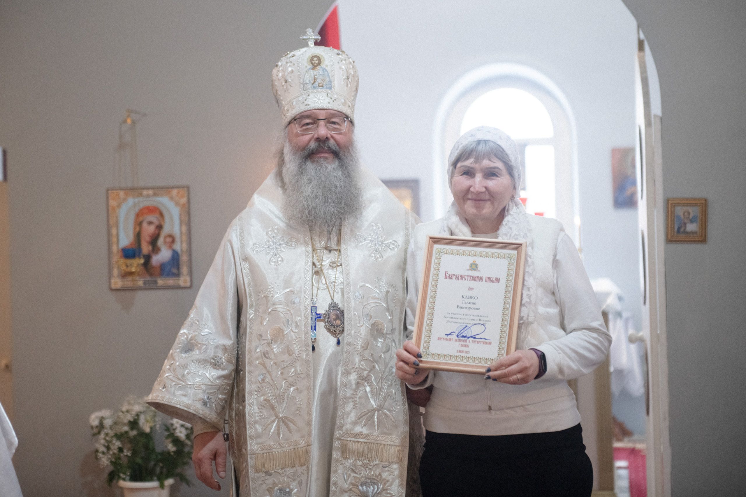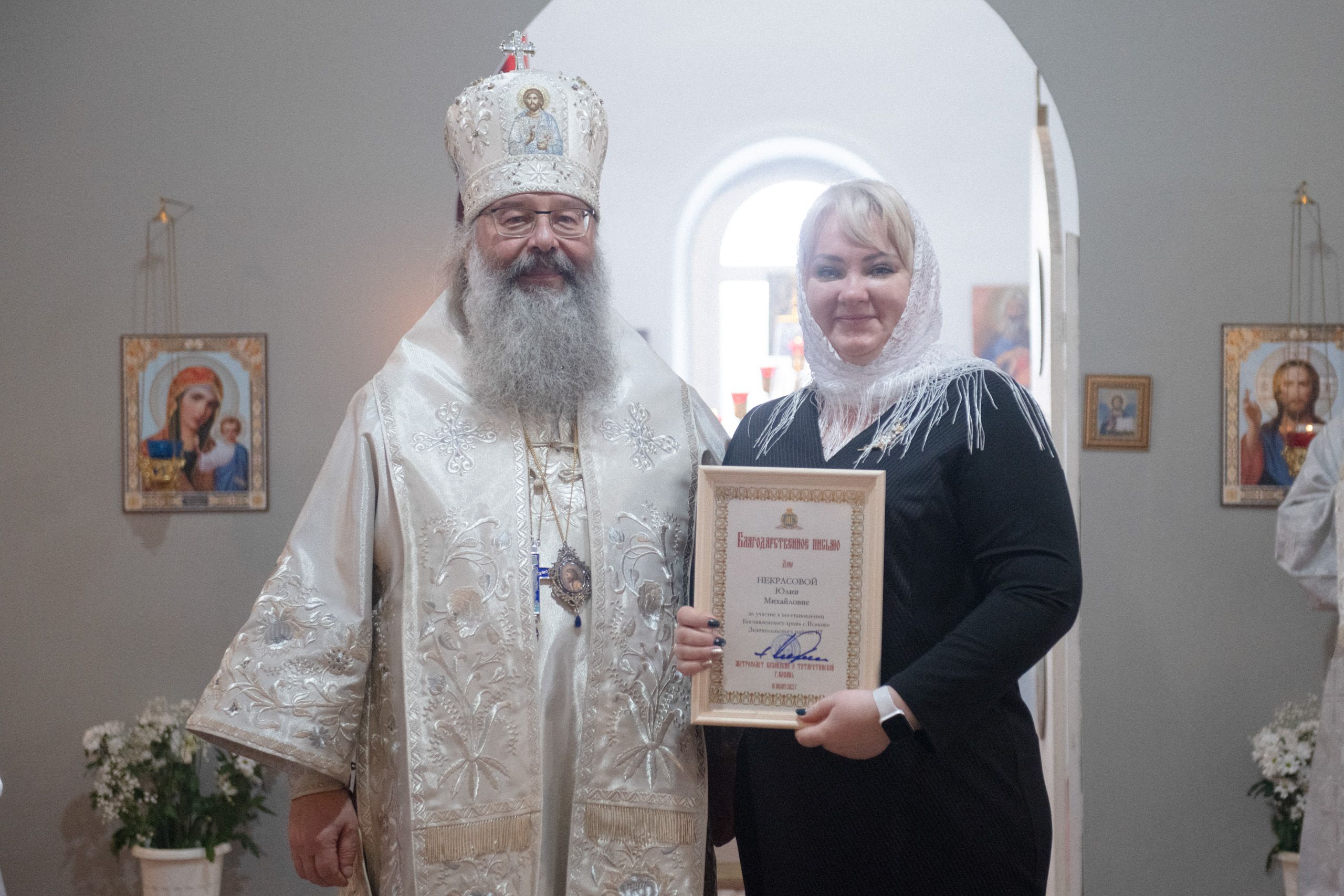 Архиерейские грамоты вручены: Анне Ивановне Леонтьевой, Марату Рязановичу Абдрафикову, Александру Александровичу Даренкову, Сергею Анатольевичу Кучумову, Нине Владимировне Григорьевой, Олегу Евгеньевичу Глазову, Вениамину Николаевичу Цубаренко, Марку Вячеславовичу Беляеву, Ларисе Владимировне Турцевой, Сергею Степановичу Отцову, Айдару Салиховичу Кашапову, Олегу Поликарповичу Тимофееву, Алексею Авенировичу Владыкину, Владиславу Валерьевичу Ларкину, Людмиле Павловне Турановой, Сергею Львовичу Алексееву, Галине Викторовне Кавко, Андрею Викторовичу Пахомову, Виктору Михайловичу Ширяеву, Юлии Михайловне Некрасовой, Радику Харисовичу Тухватуллину, Вячеславу Александровичу Максякову, Лии Фаритовне Максяковой, Анастасии Джавитовне Исаевой, Сергею Владимировичу Белобородову, Нине Александровне Белобородовой, Алексею Владимировичу Колесову, Хадису Хамзовичу Сафину, Шавкату Ахатовичу Хамидуллину, Андрею Ивановичу Храмову.