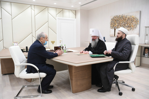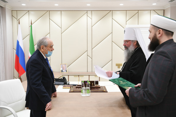 Митрополит Кирилл поздравил первого Президента РТ от себя лично, а также от духовенства и прихожан храмов Татарстанской митрополии, поблагодарил за попечение о верующих людях, бережное отношение к святыням родного края, к его культурному и историческому наследию.