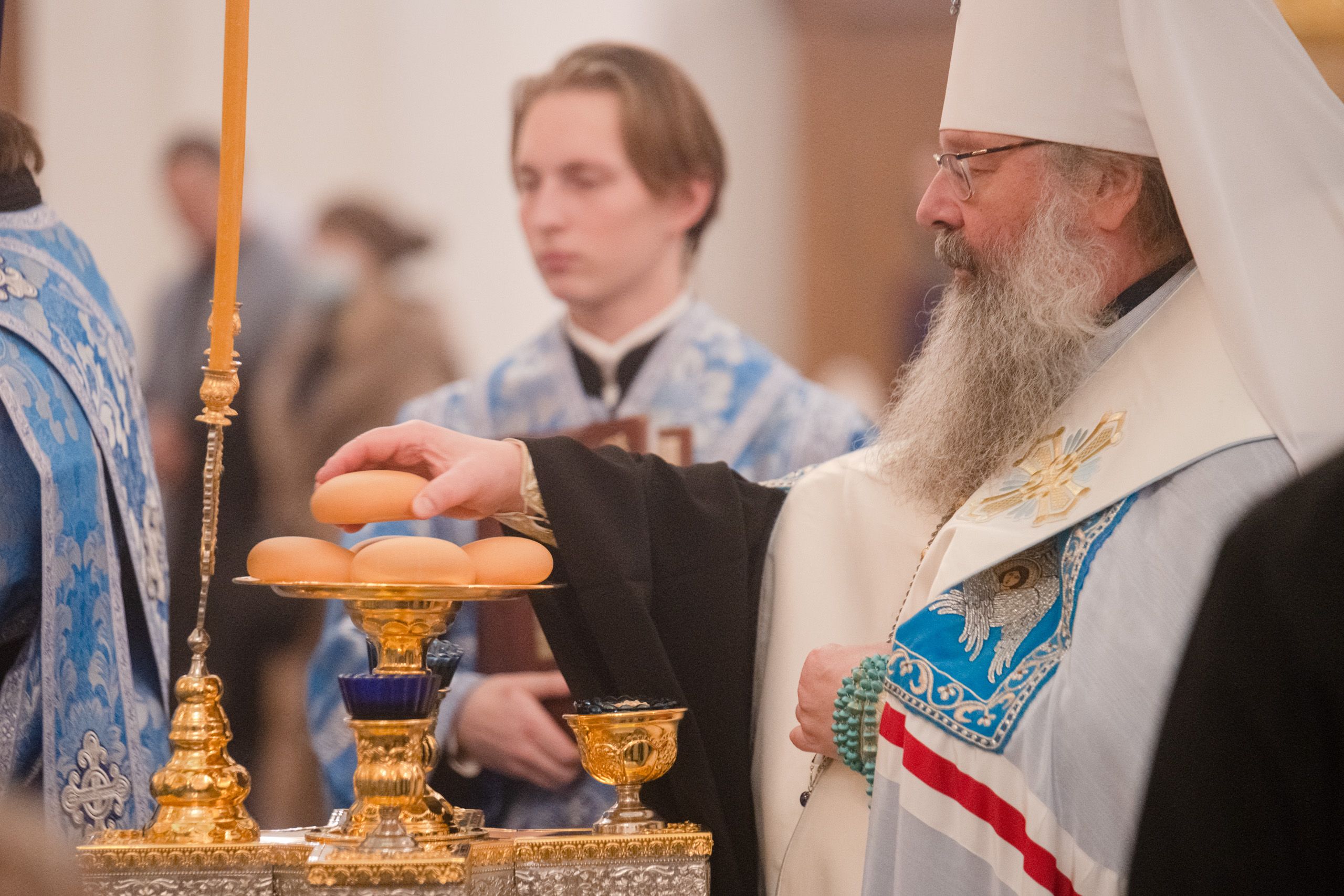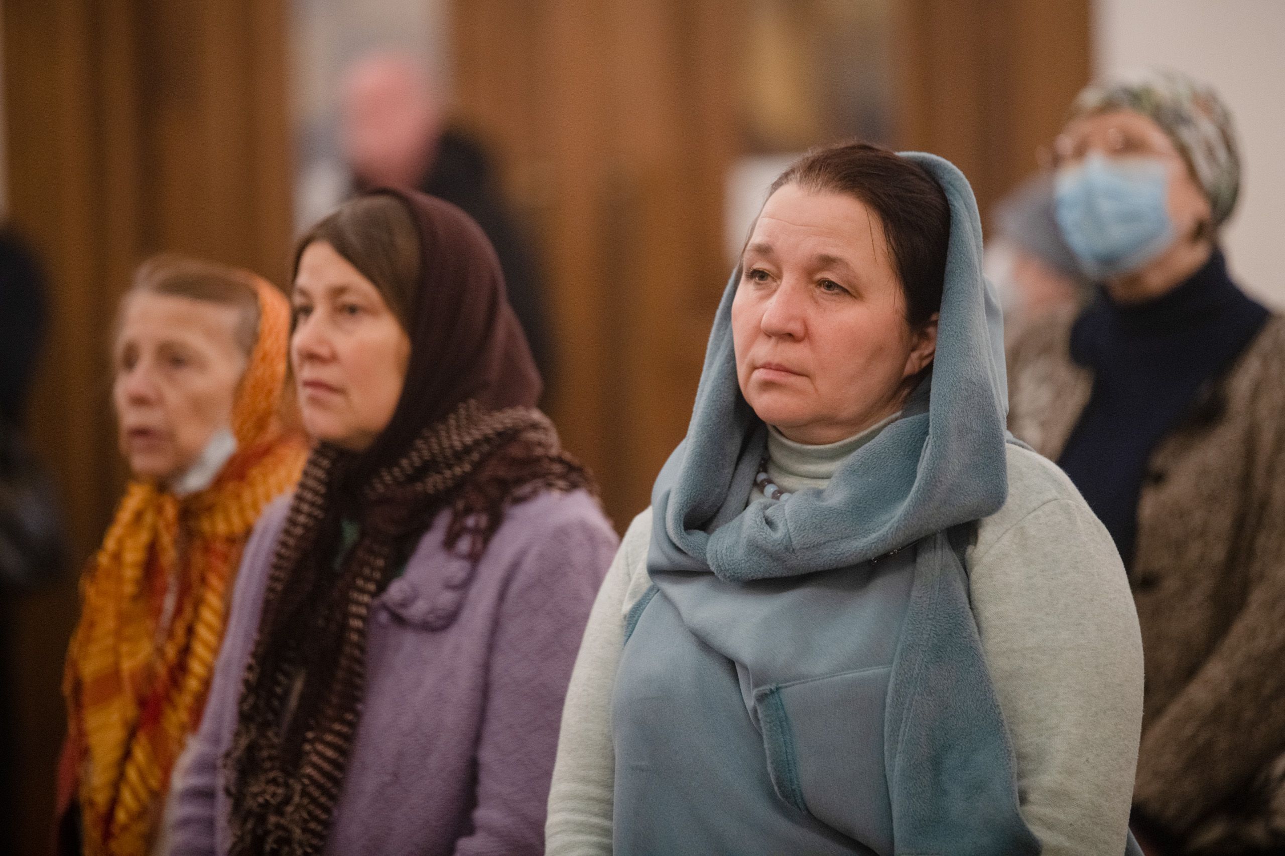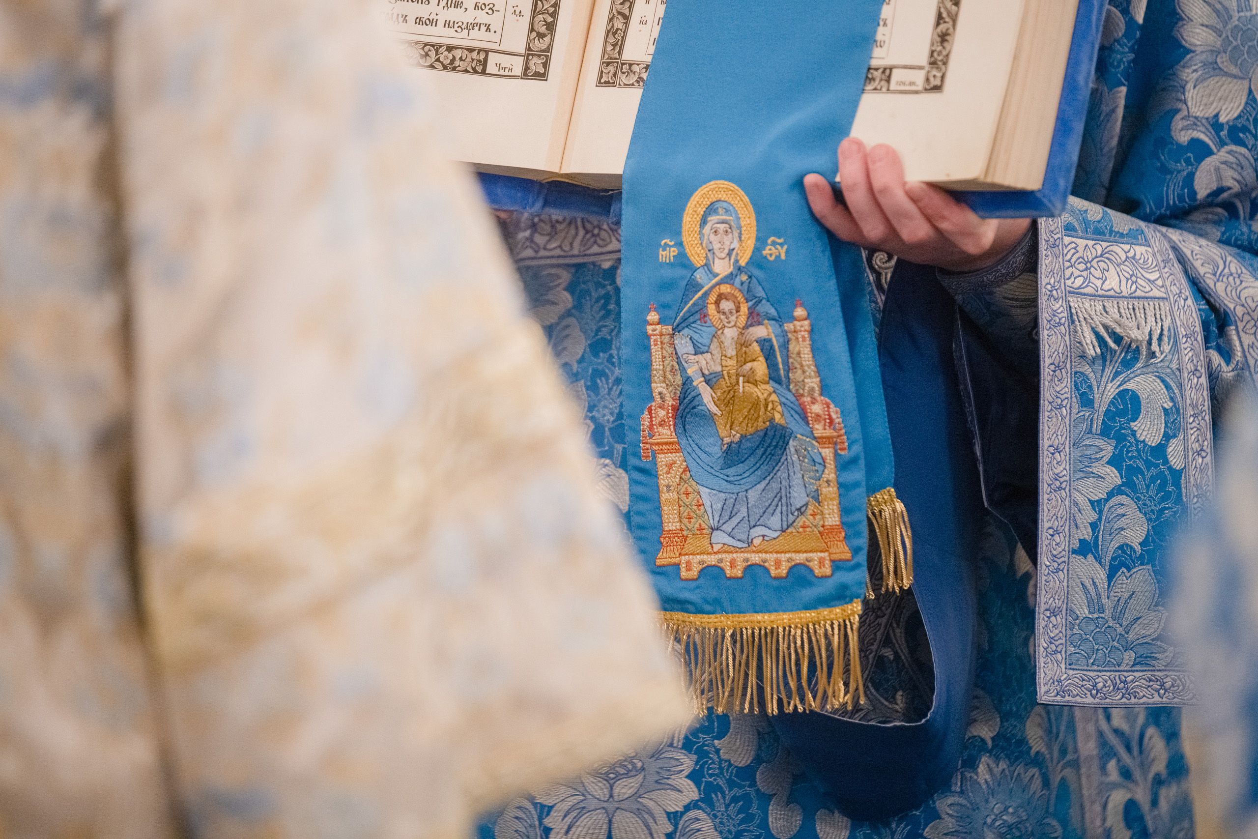 Богослужебные песнопения исполнялись двумя архиерейскими хорами: мужским под управлением Дениса Рогова и смешанным под управлением Марины Литвиненко.