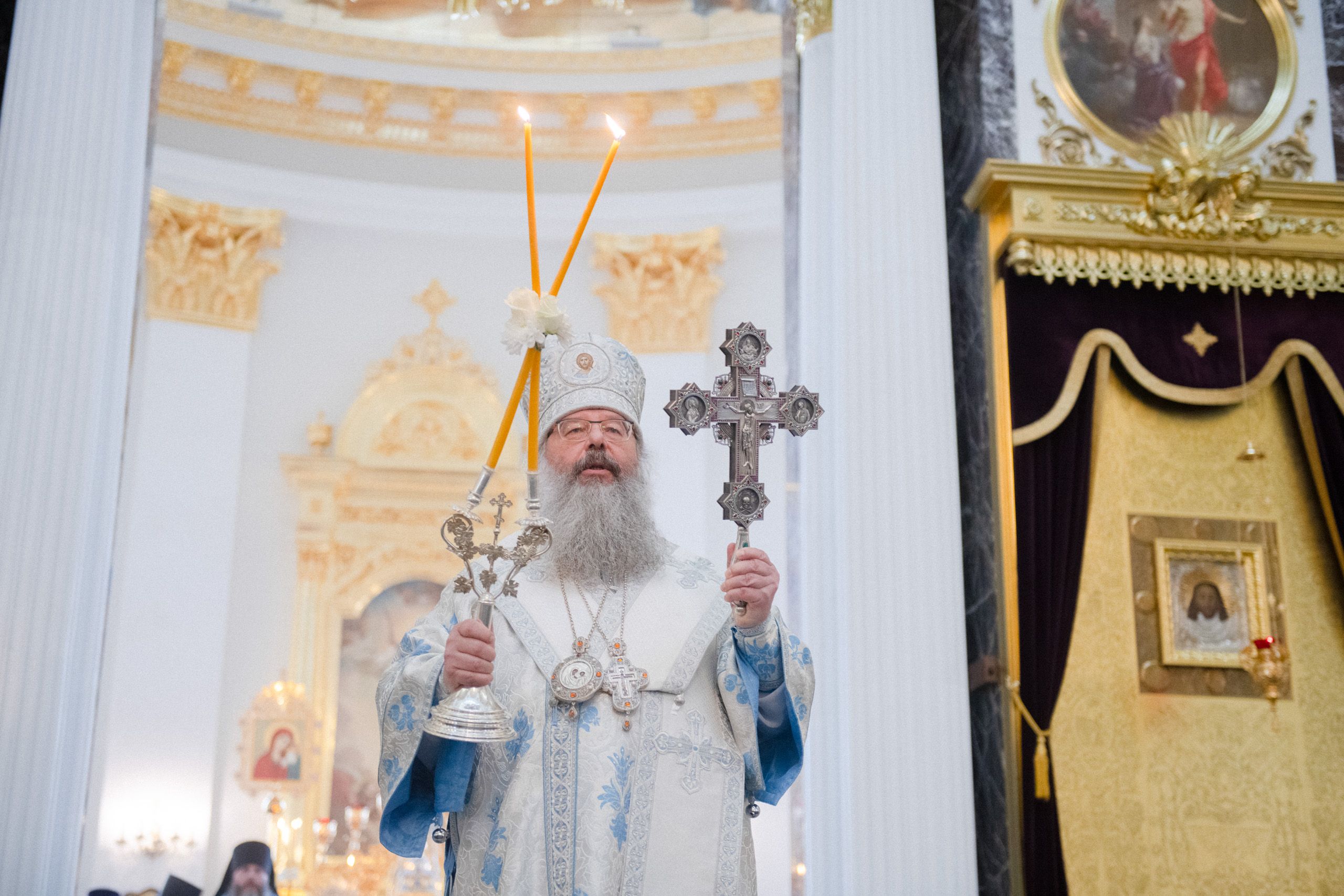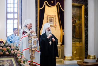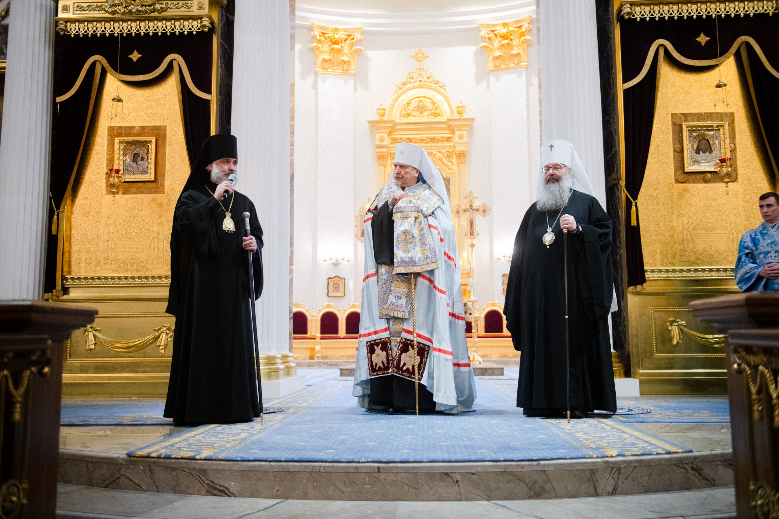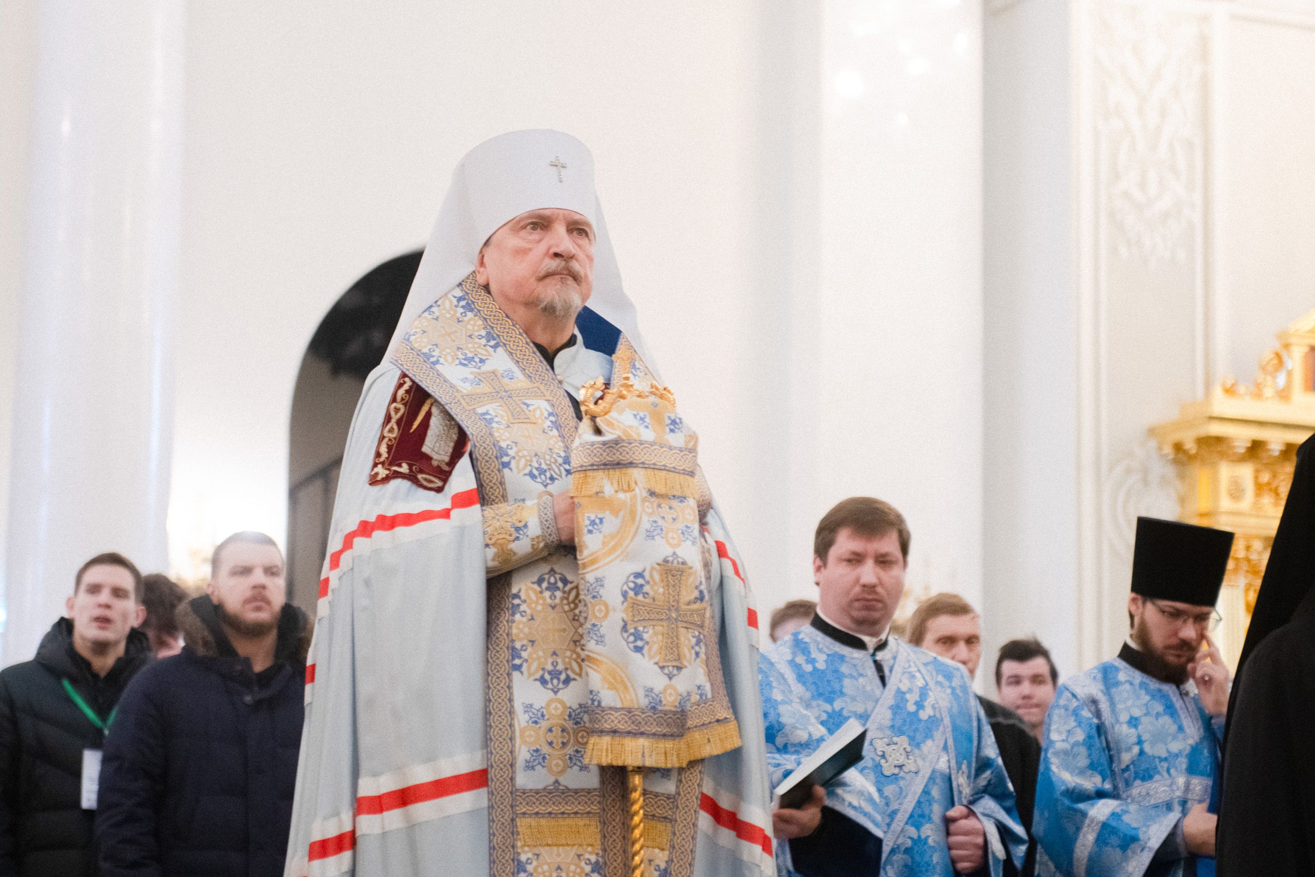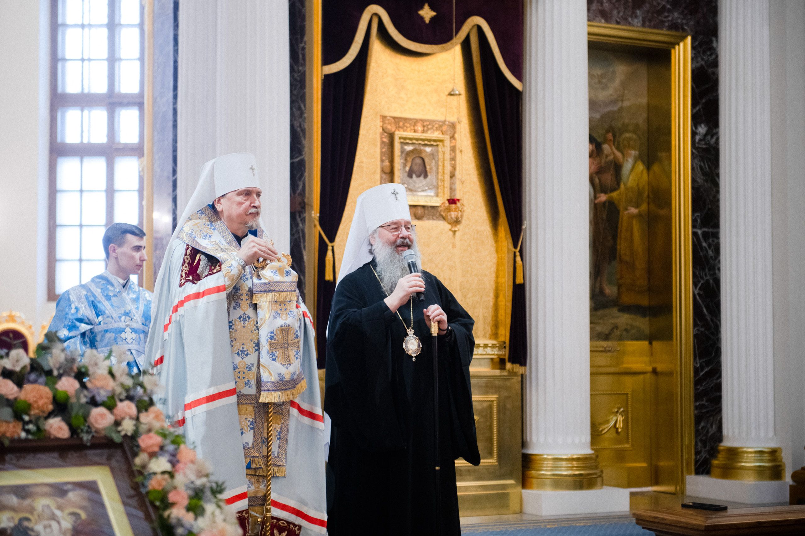 После отпуста архипастырь и духовенство пропели тропари праздника Сретения Господня и Божией Матери в честь Её иконы «Взыскание погибших». Владыка Кирилл, духовенство и миряне поклонились чудотворной Казанской иконе. Глава митрополии поздравил всех участников богослужения с попразднством Сретения и обратился с проповедью: