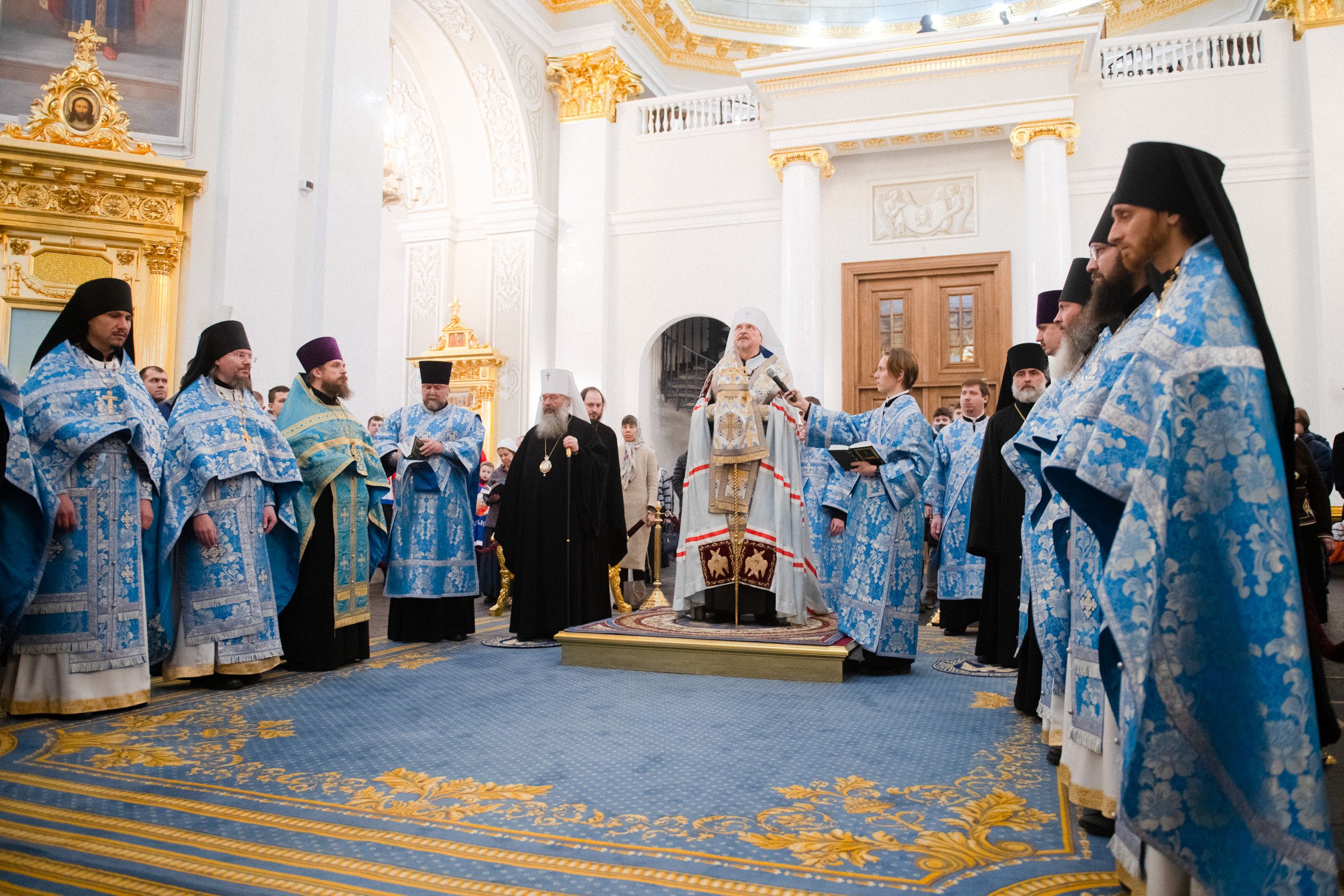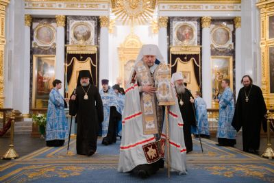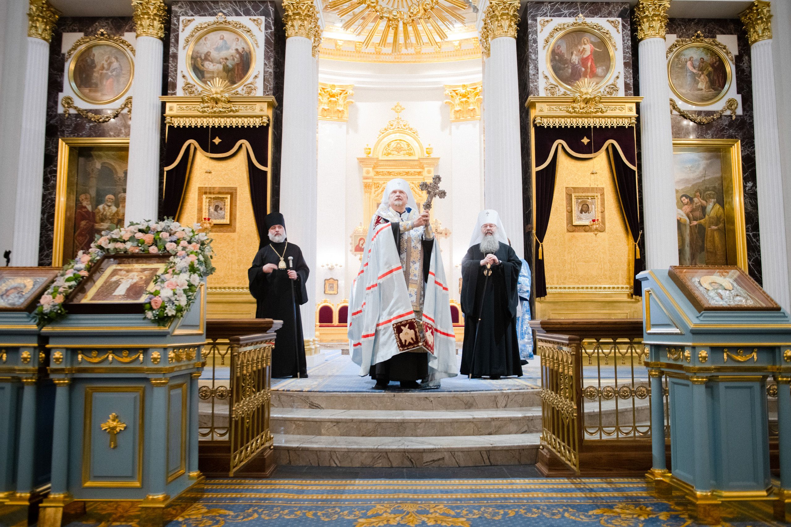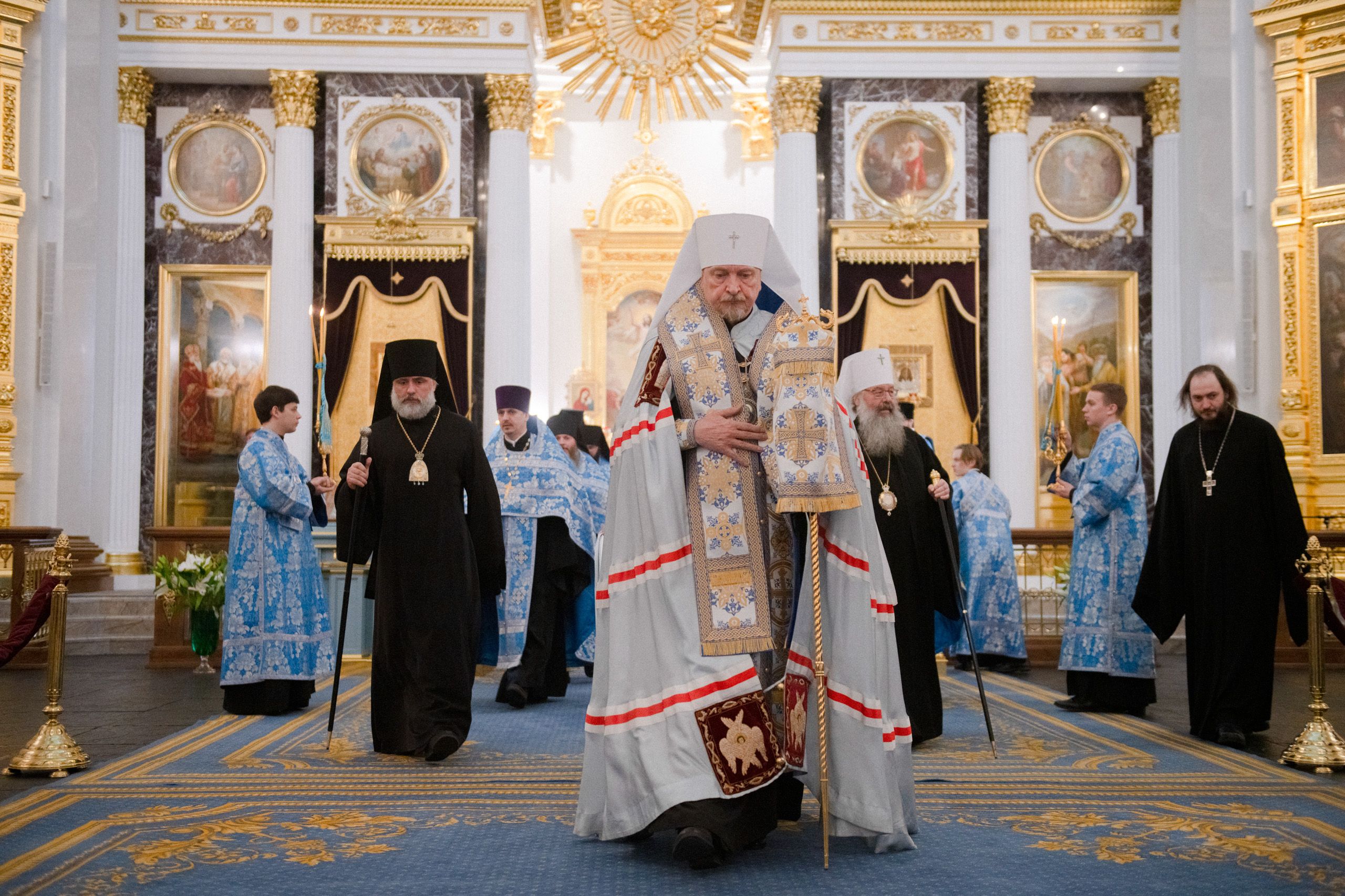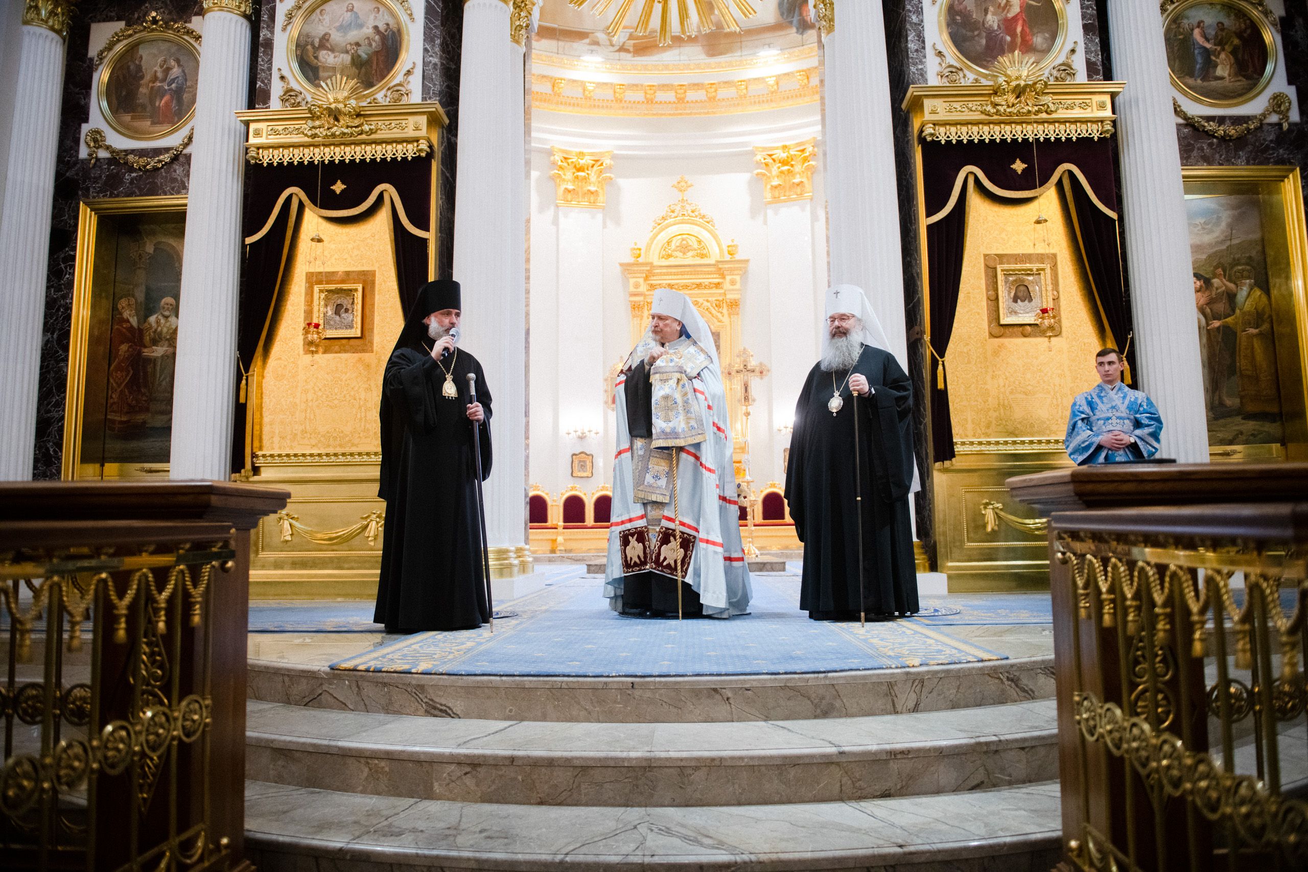 После отпуста архипастырь и духовенство пропели тропари праздника Сретения Господня и Божией Матери в честь Её иконы «Взыскание погибших». Владыка Кирилл, духовенство и миряне поклонились чудотворной Казанской иконе. Глава митрополии поздравил всех участников богослужения с попразднством Сретения и обратился с проповедью:
