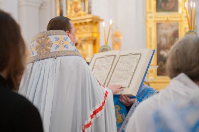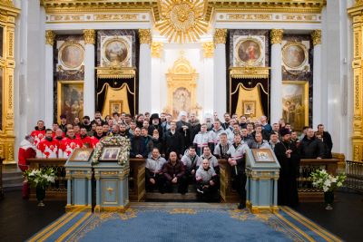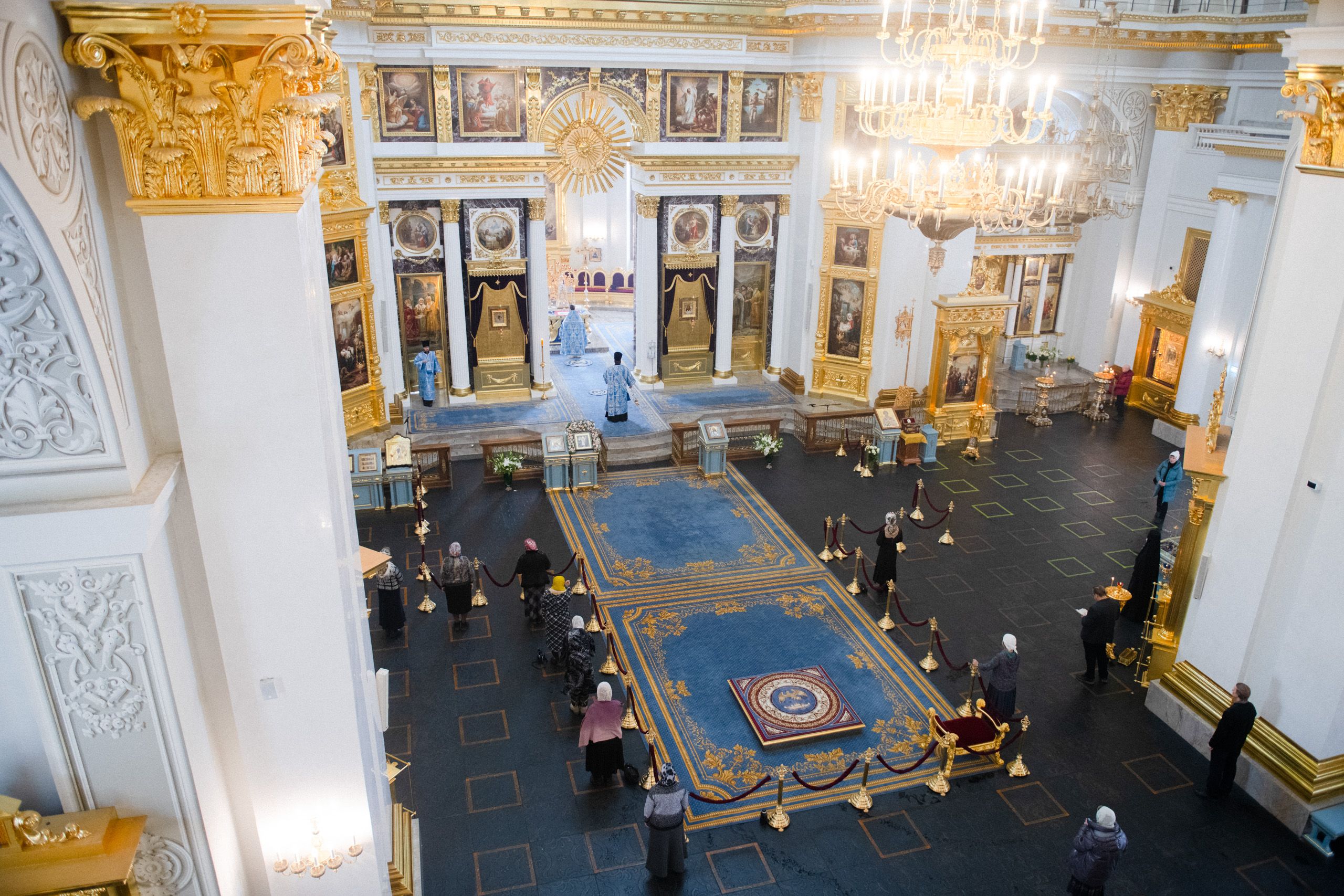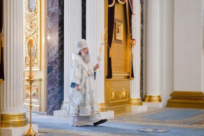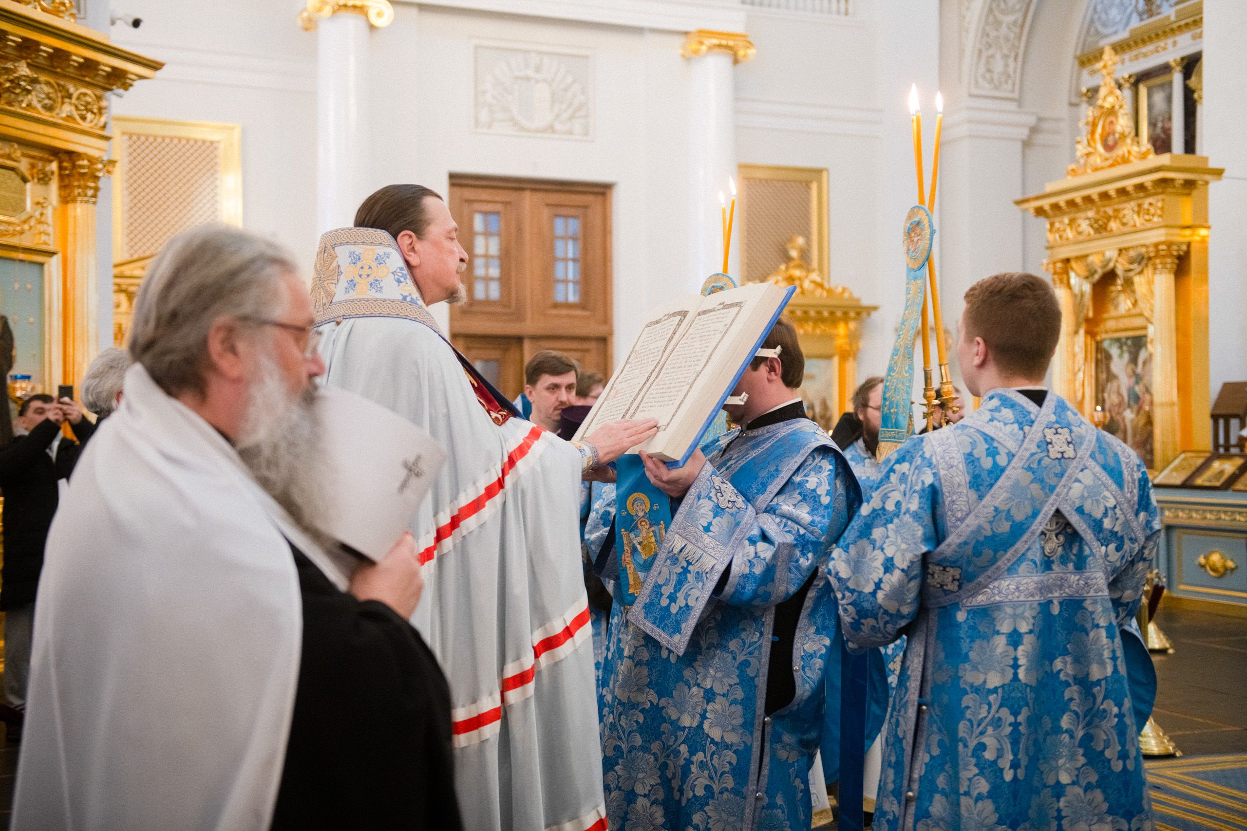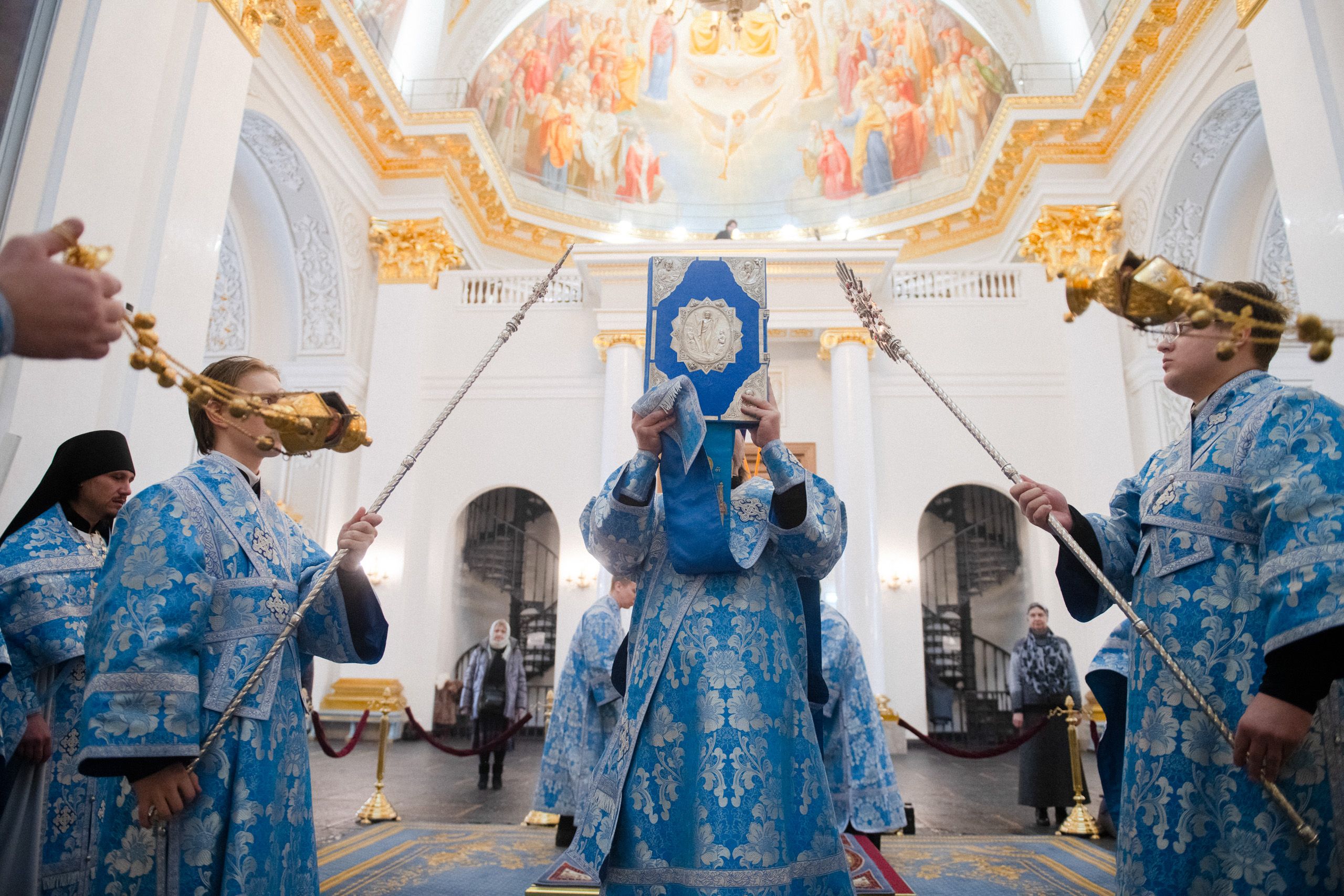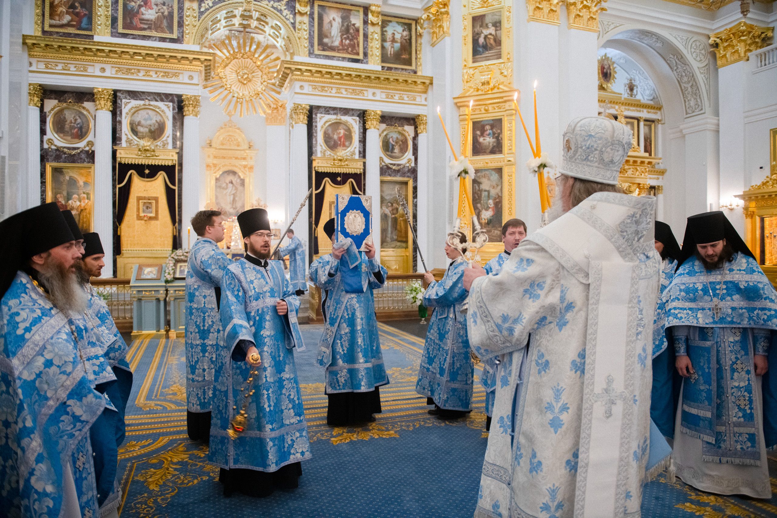 После отпуста архипастырь и духовенство пропели тропари праздника Сретения Господня и Божией Матери в честь Её иконы «Взыскание погибших». Владыка Кирилл, духовенство и миряне поклонились чудотворной Казанской иконе. Глава митрополии поздравил всех участников богослужения с попразднством Сретения и обратился с проповедью: