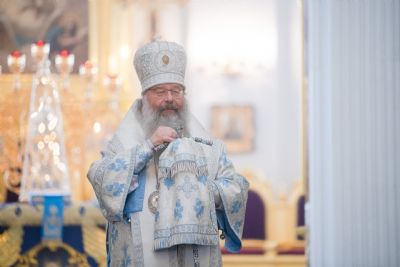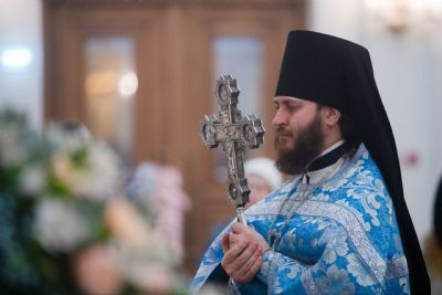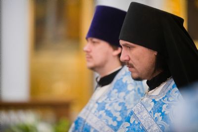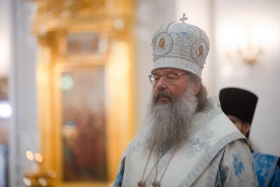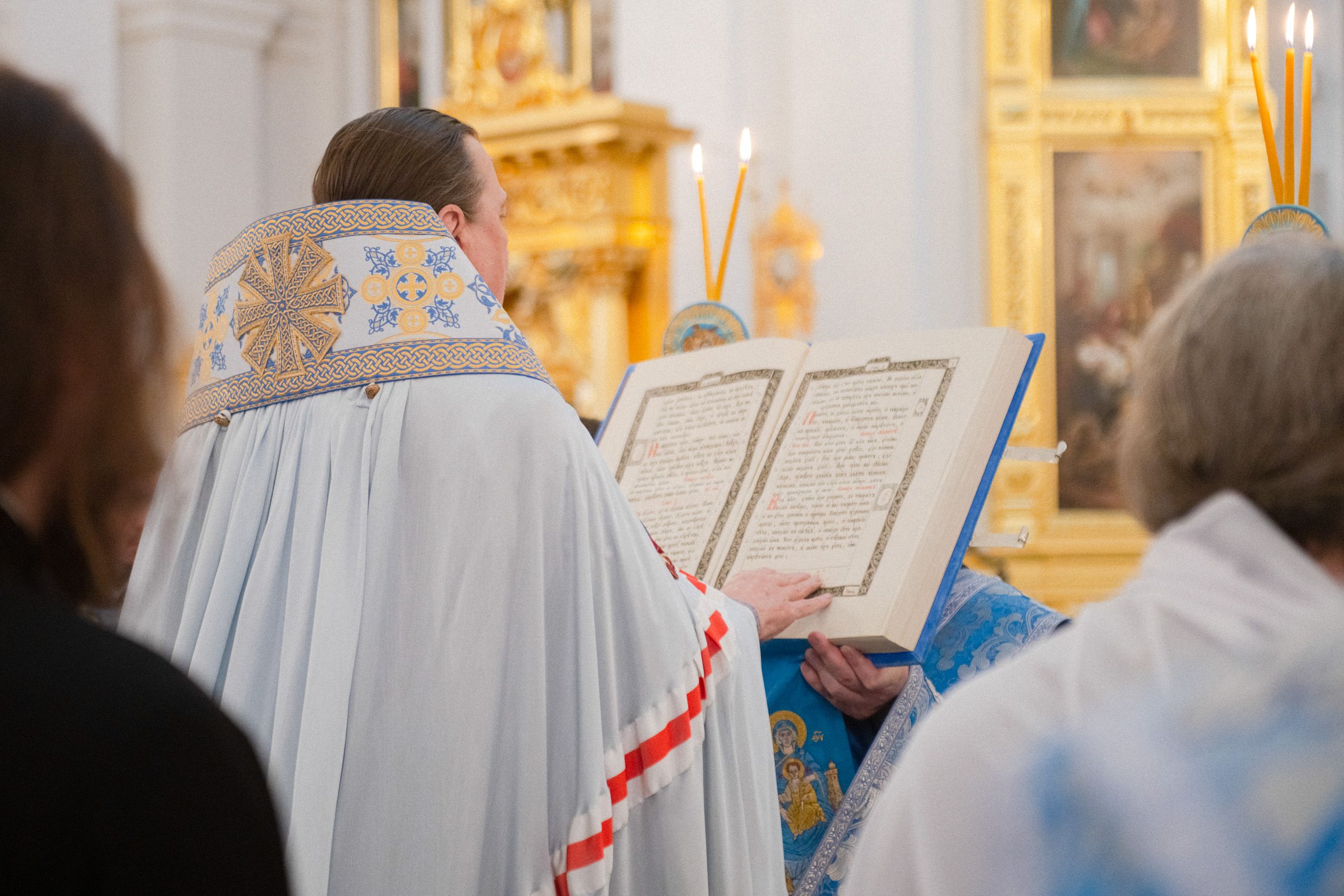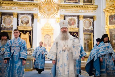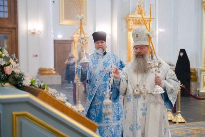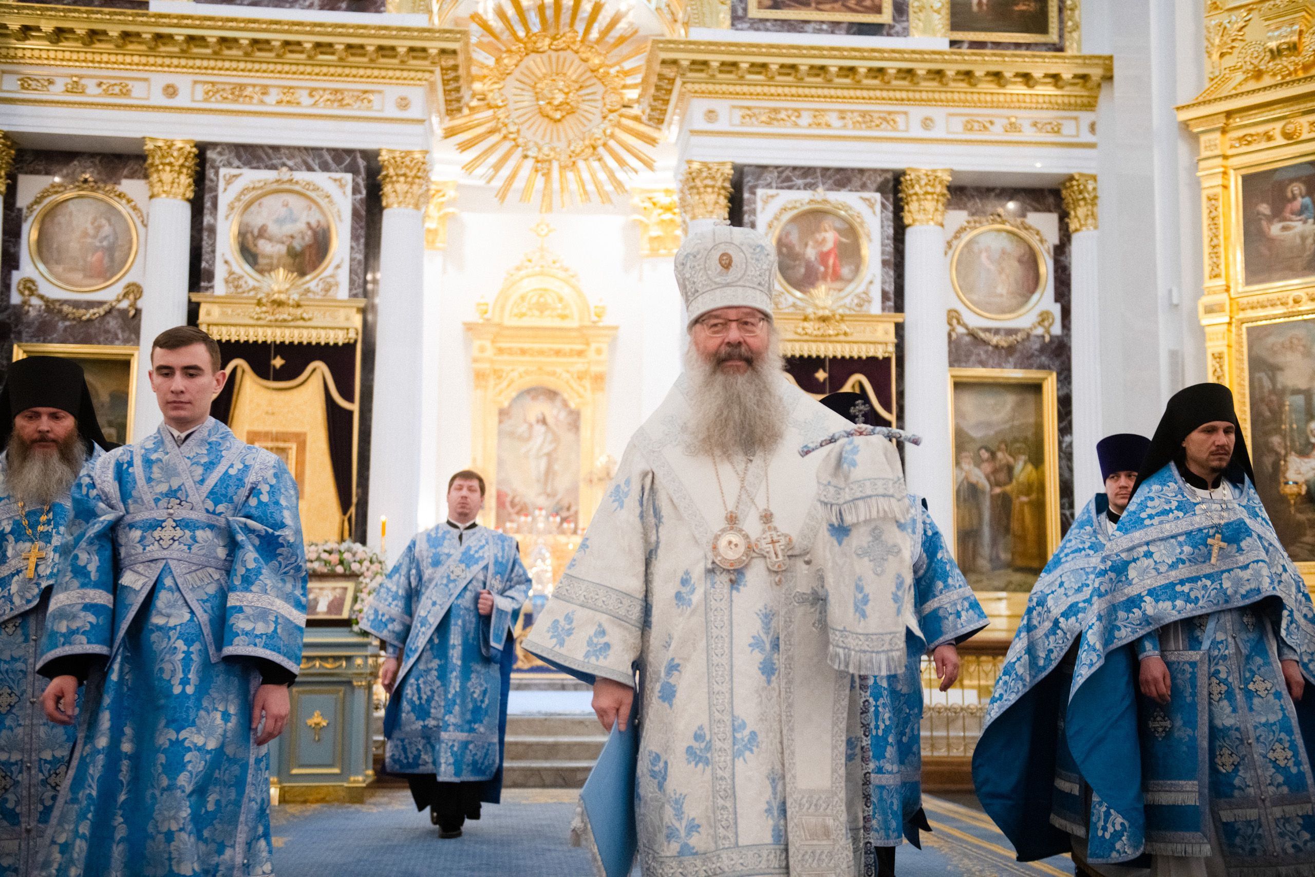За Литургией Его Высокопреосвященству сослужили секретарь Татарстанской митрополии иеромонах Кирилл (Корытко) и братия Богородицкой обители в священном сане. Песнопения исполнил архиерейский мужской хор под управлением Дениса Рогова. Проповедь по запричастном стихе произнёс иеромонах Ермоген (Рубан).