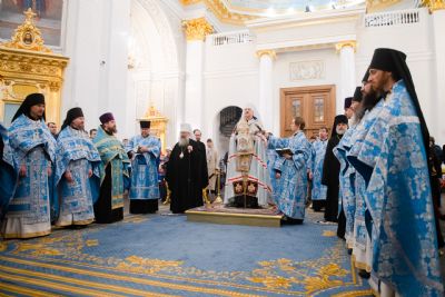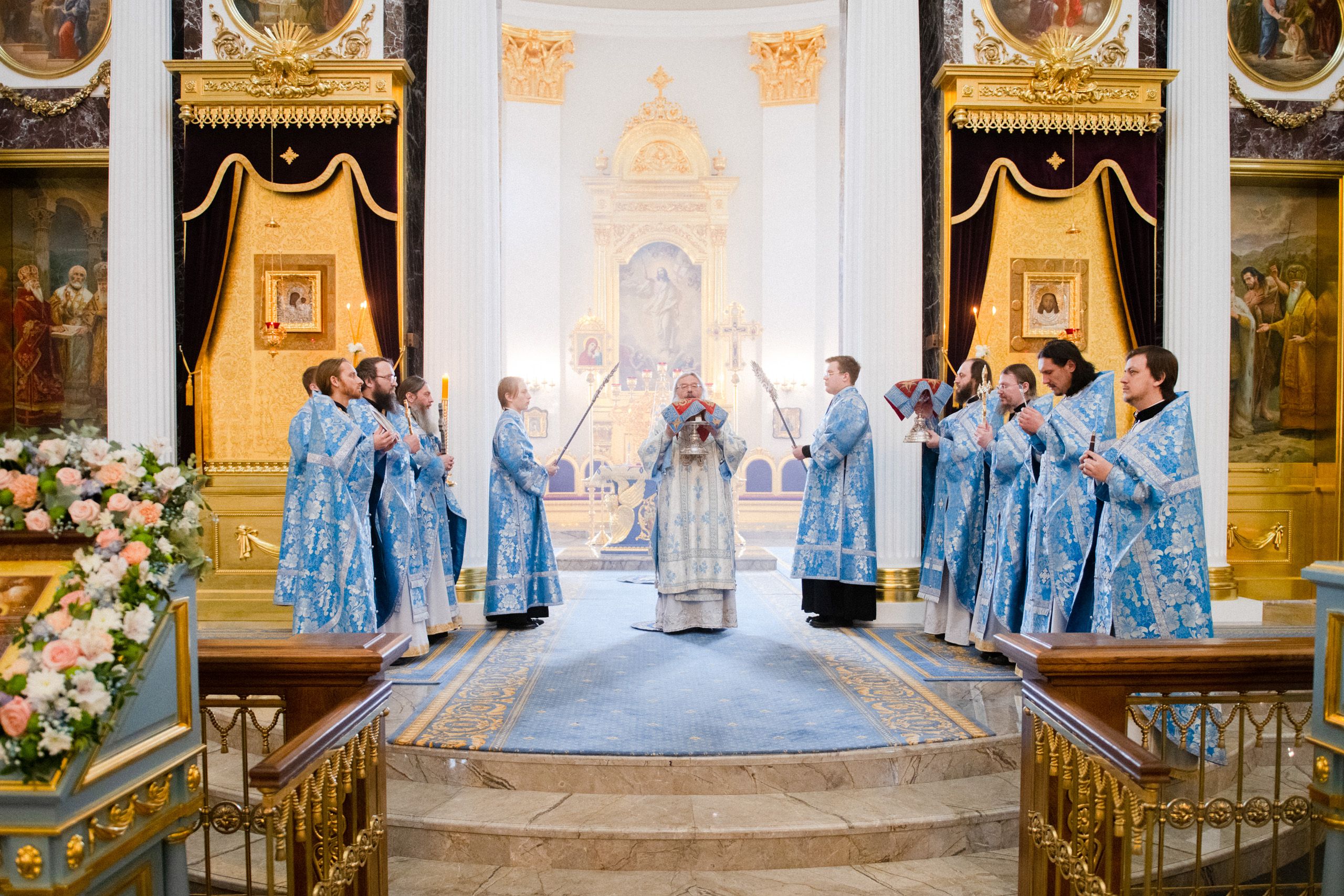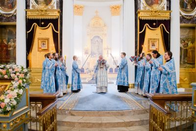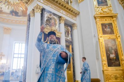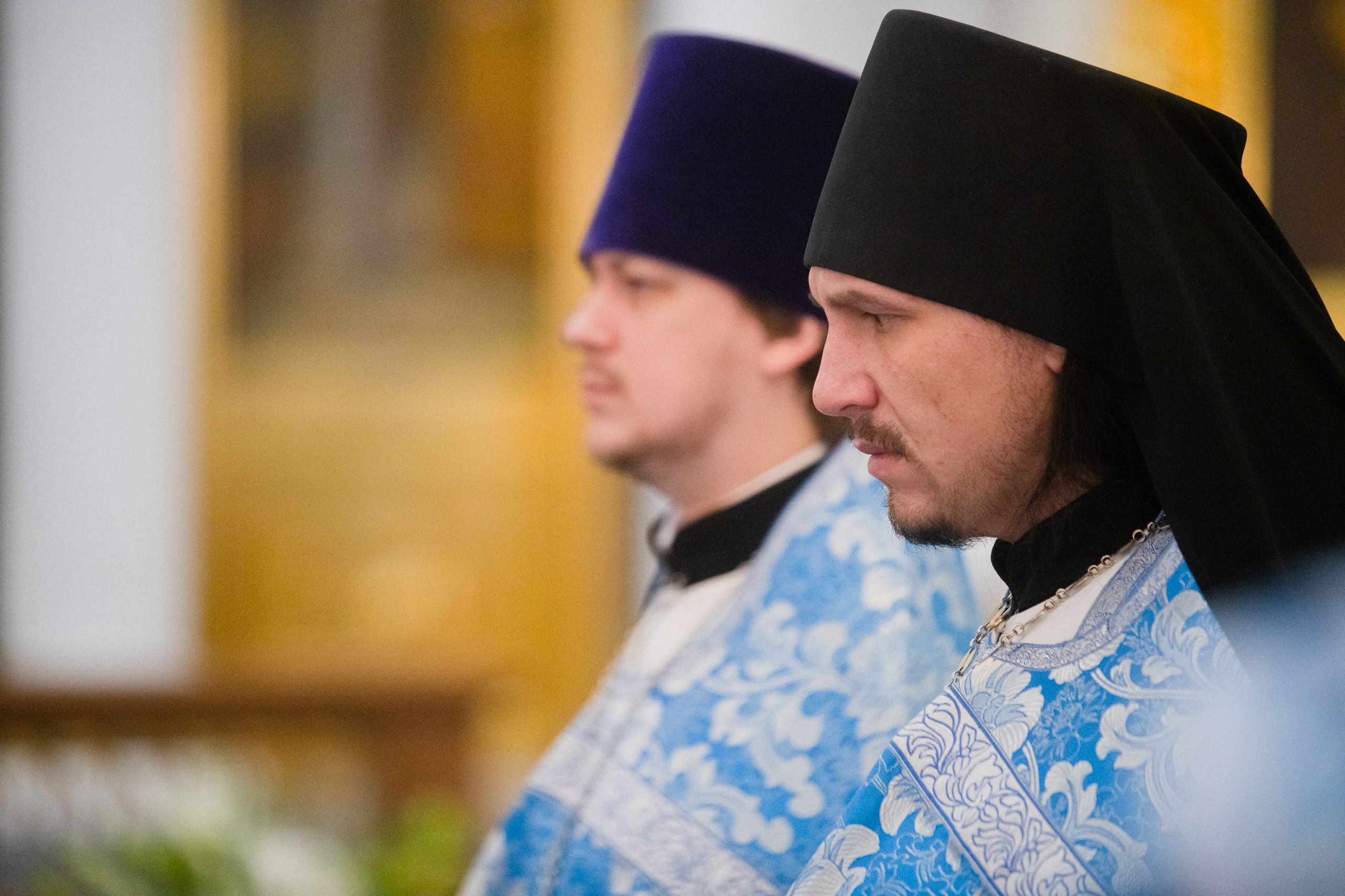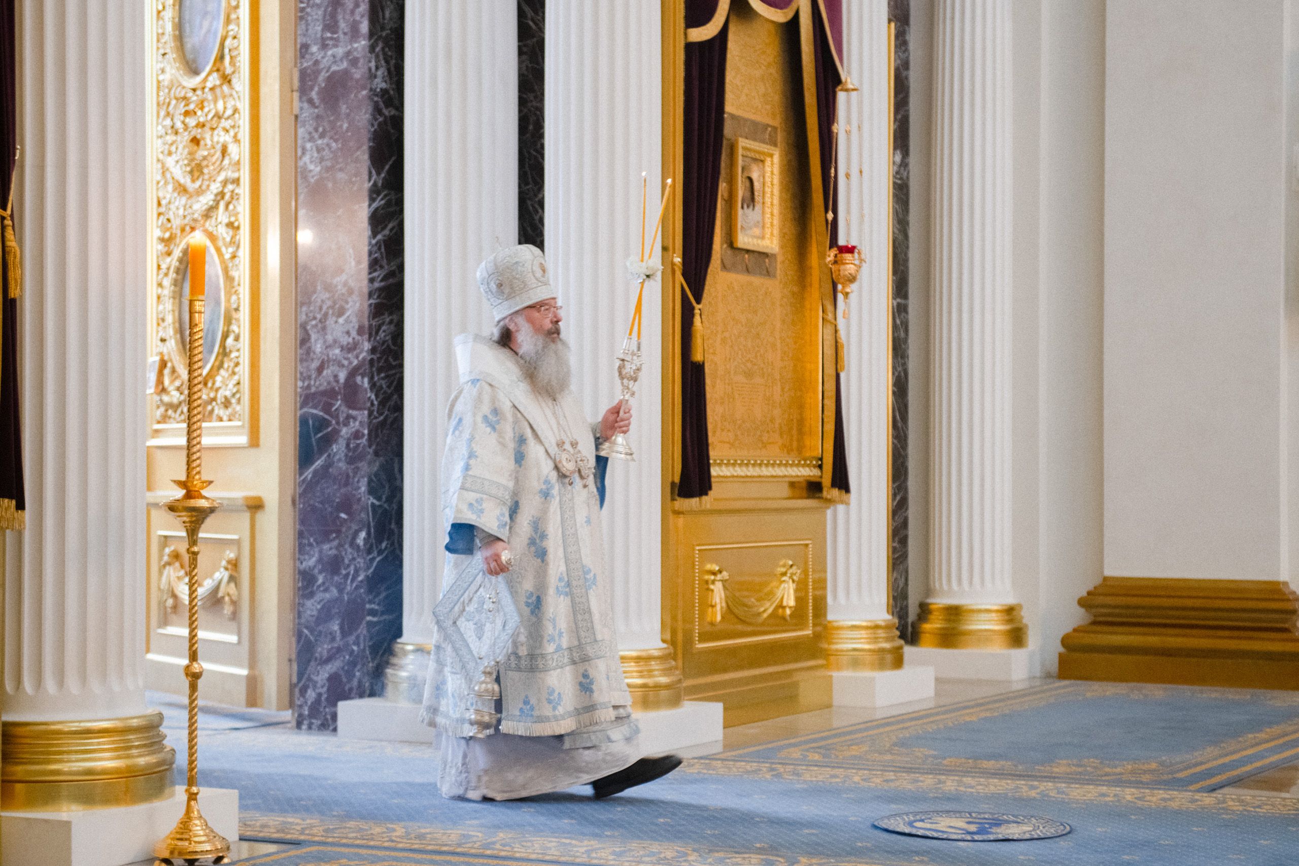 За Литургией Его Высокопреосвященству сослужили секретарь Татарстанской митрополии иеромонах Кирилл (Корытко) и братия Богородицкой обители в священном сане. Песнопения исполнил архиерейский мужской хор под управлением Дениса Рогова. Проповедь по запричастном стихе произнёс иеромонах Ермоген (Рубан).