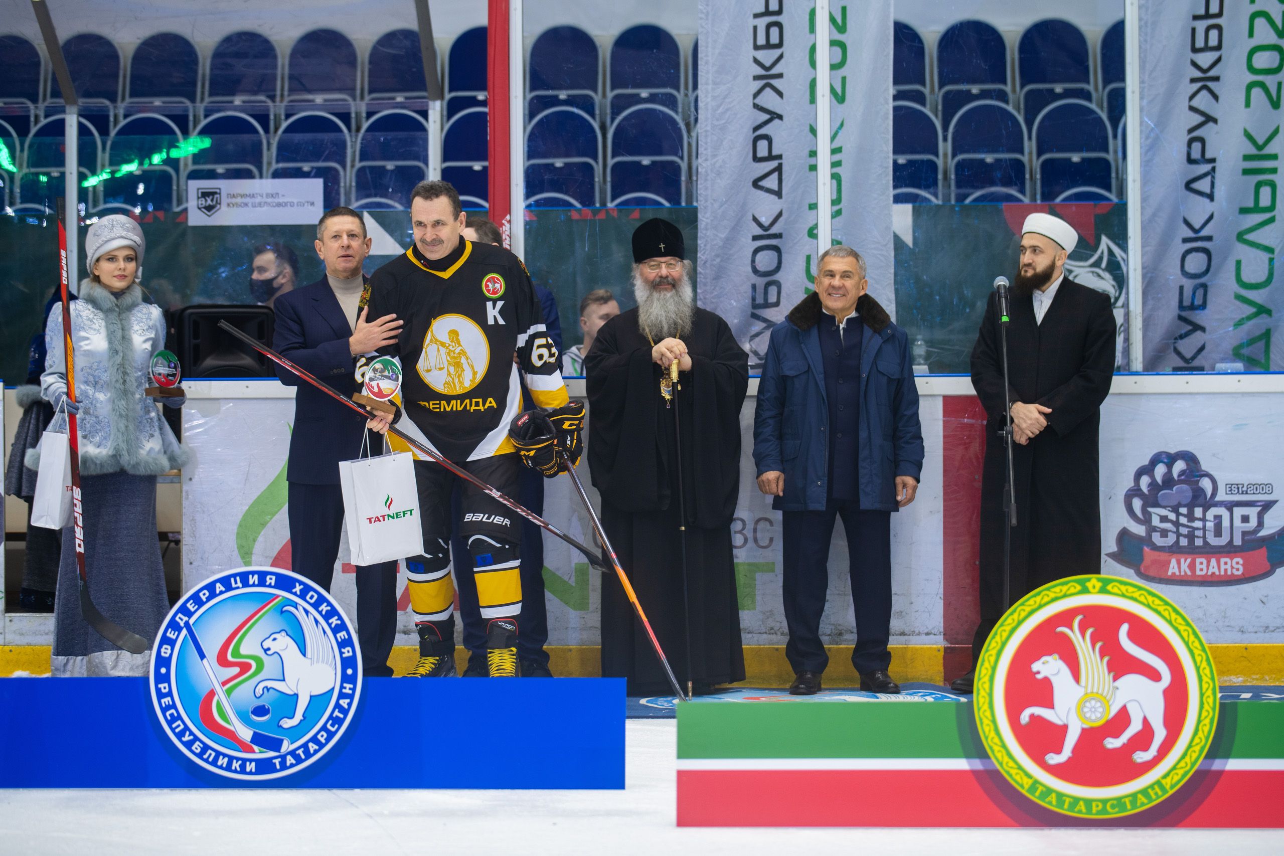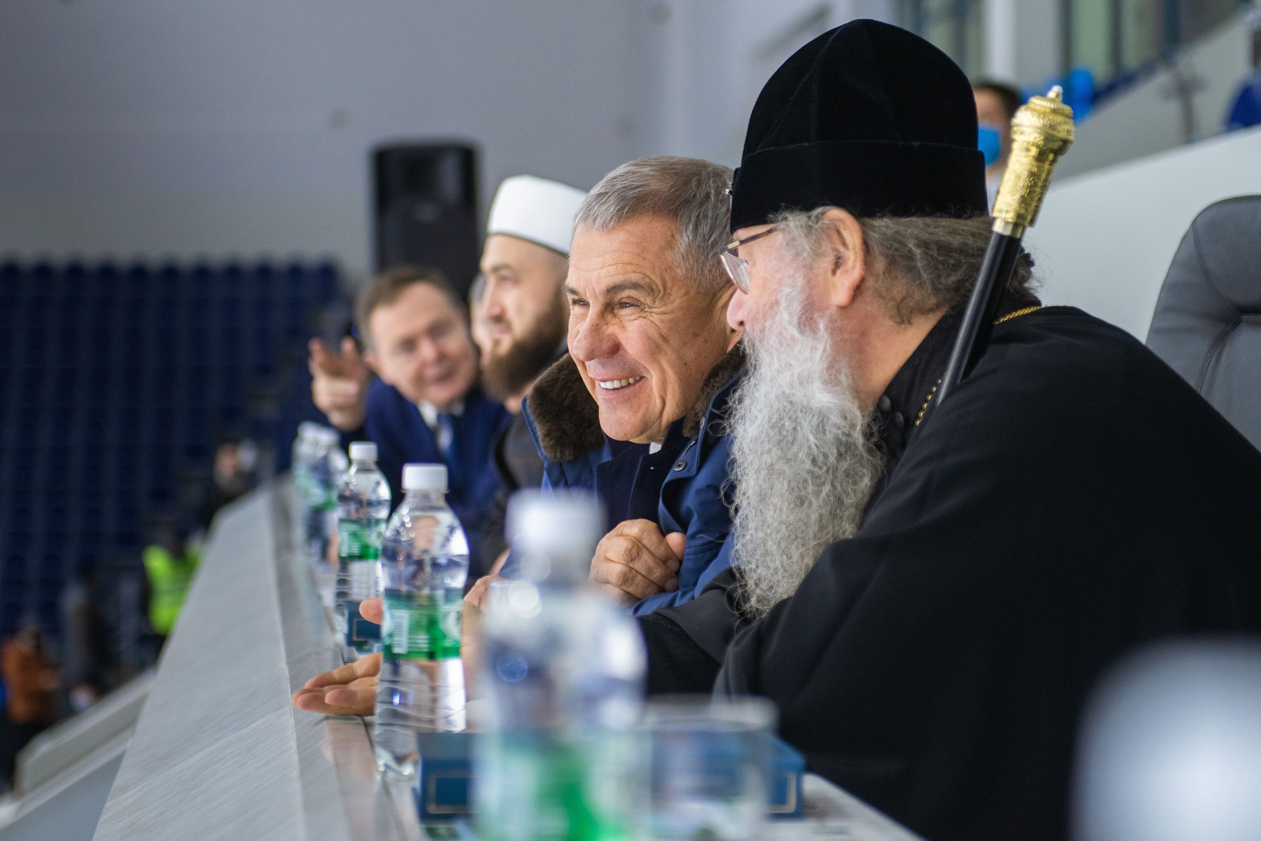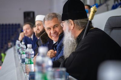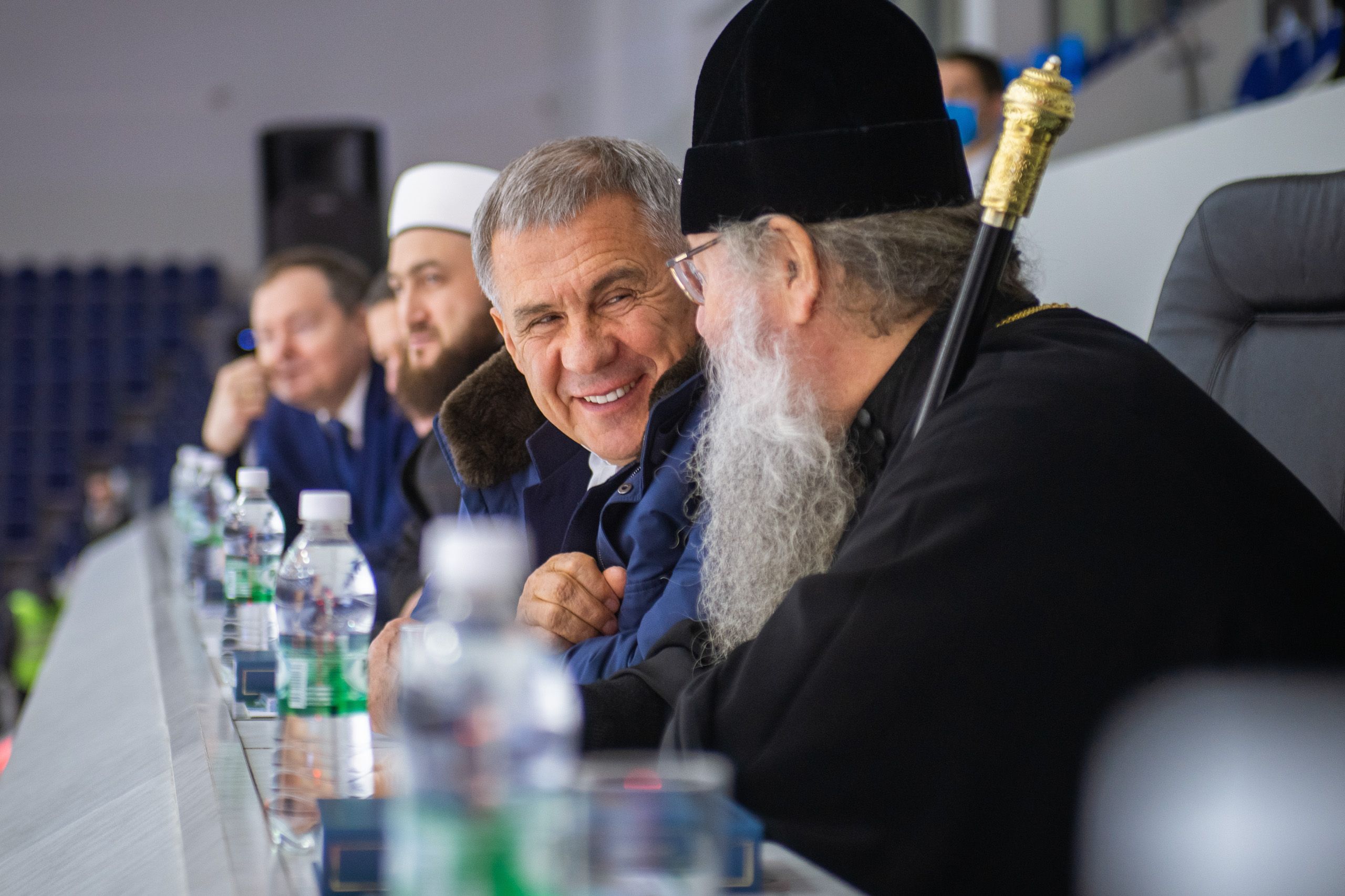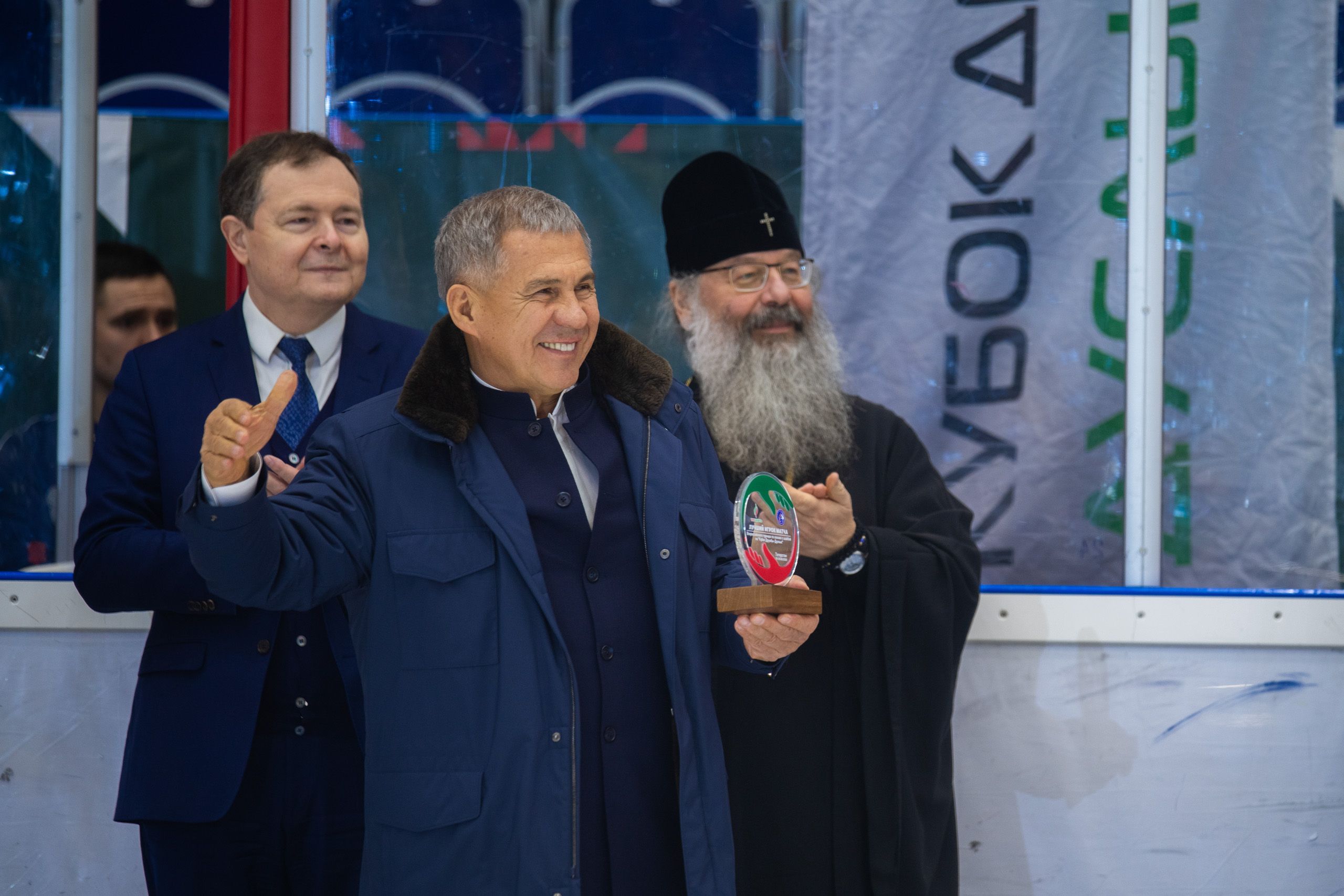 С трибун Казанского ледового дворца спорта Президент вместе с митрополитом Казанским и Татарстанским Кириллом и муфтием Татарстана Камилем хазратом наблюдал за ходом матча Казанской межконфессиональной команды «Миллениум» и команды Верховного суда РТ «Фемида». В упорной борьбе со счётом 4:3 победу одержали хоккеисты «Миллениума».