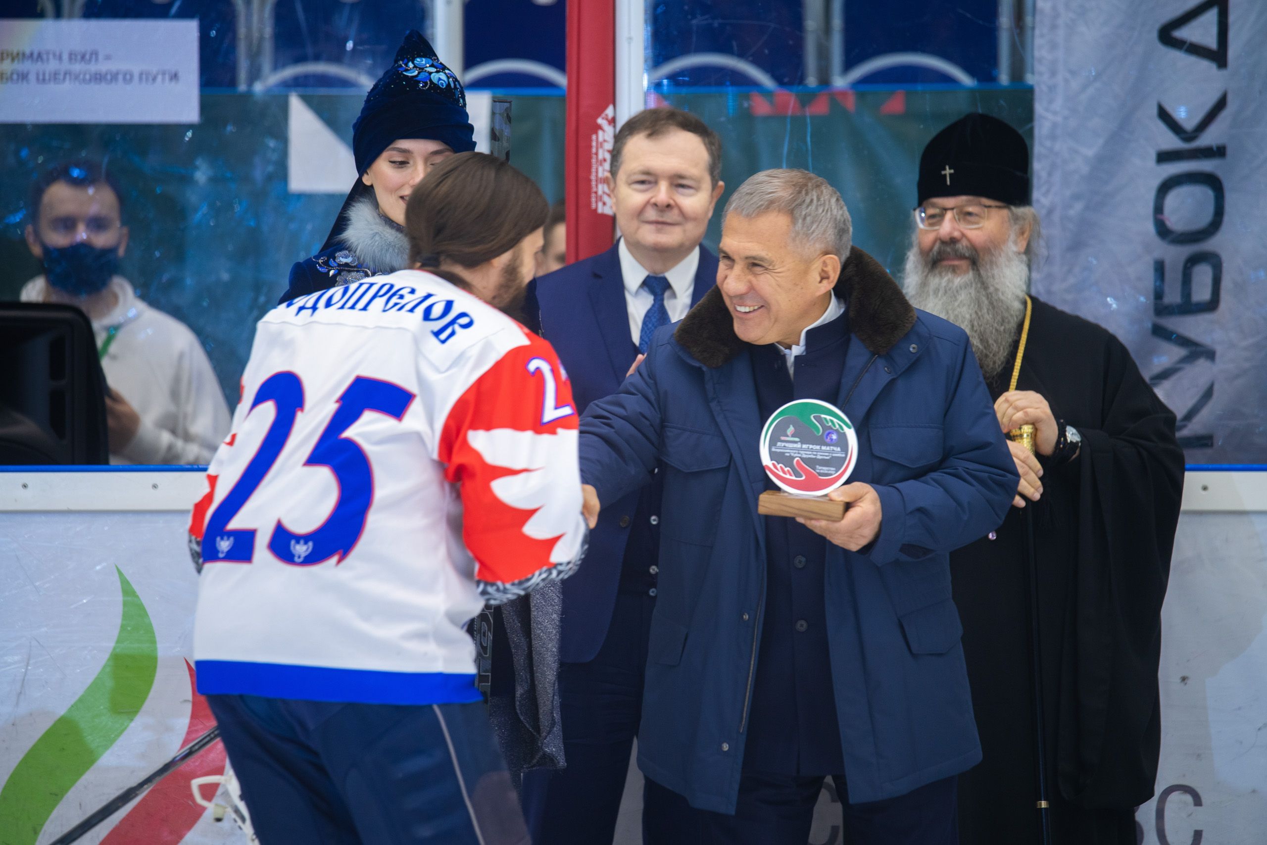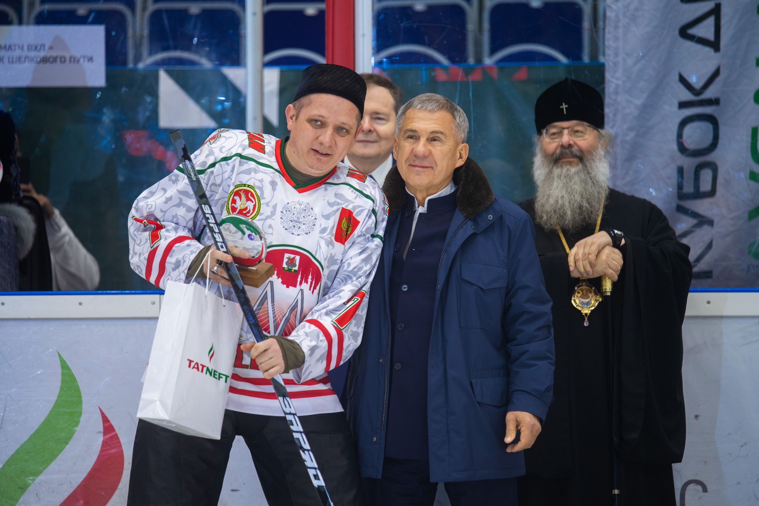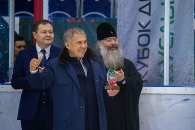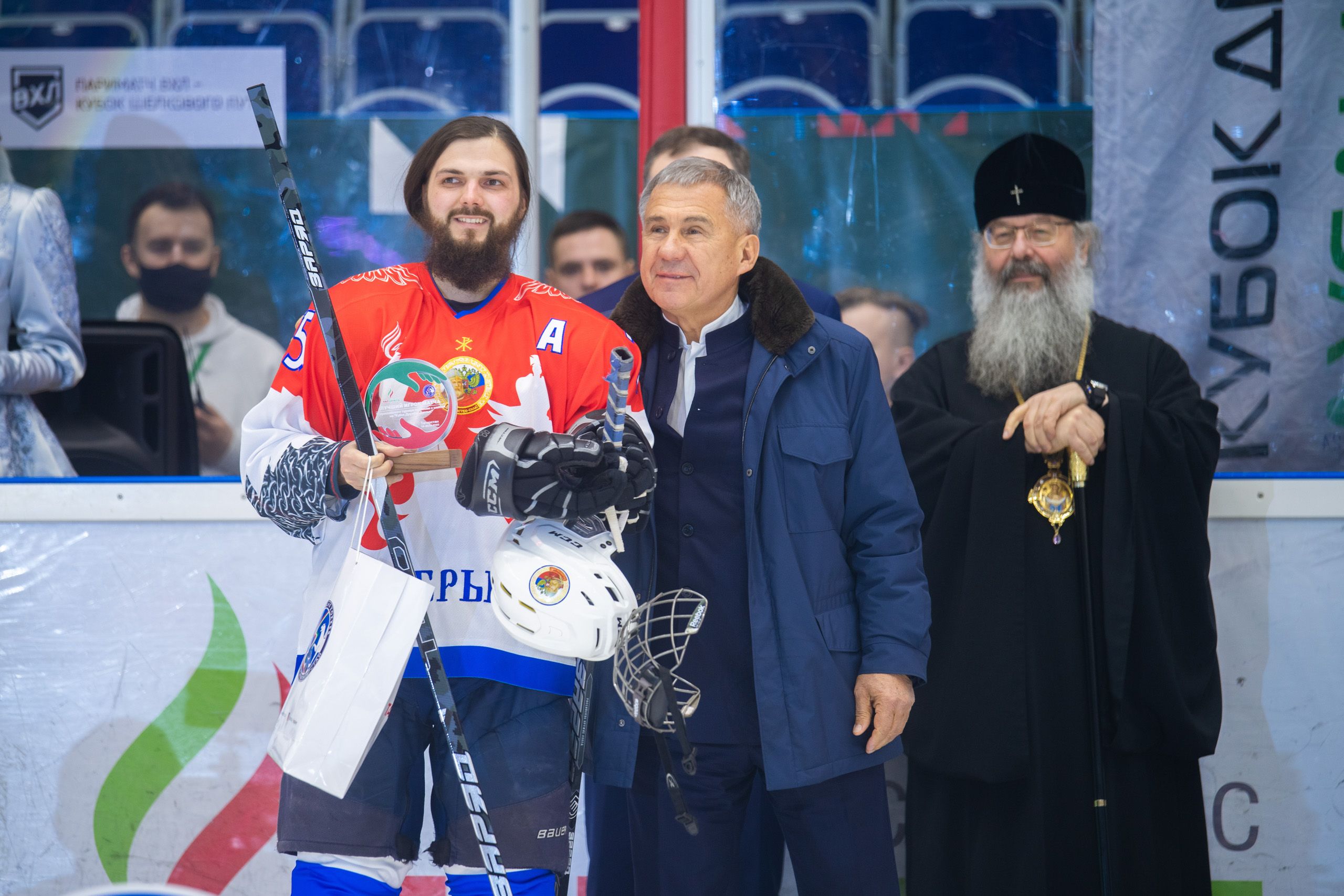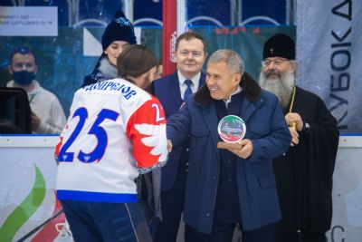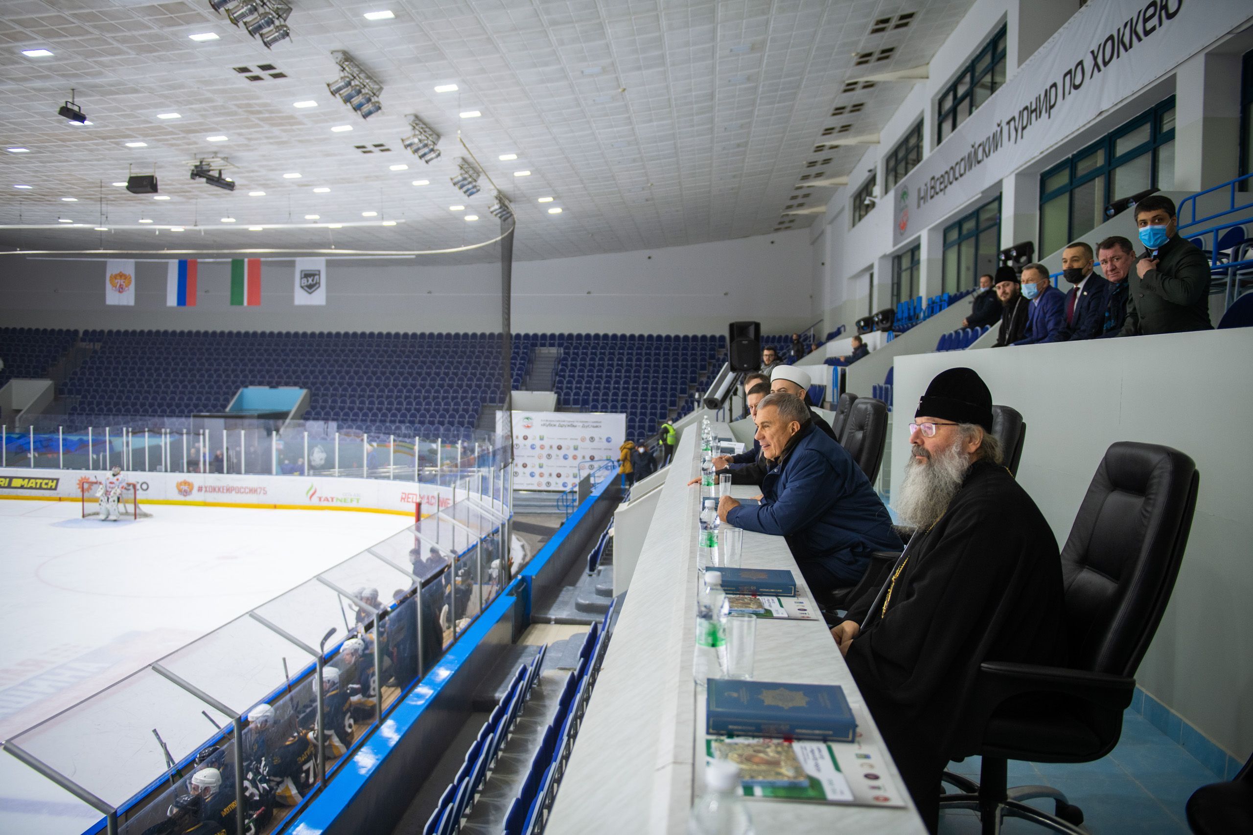 С трибун Казанского ледового дворца спорта Президент вместе с митрополитом Казанским и Татарстанским Кириллом и муфтием Татарстана Камилем хазратом наблюдал за ходом матча Казанской межконфессиональной команды «Миллениум» и команды Верховного суда РТ «Фемида». В упорной борьбе со счётом 4:3 победу одержали хоккеисты «Миллениума».