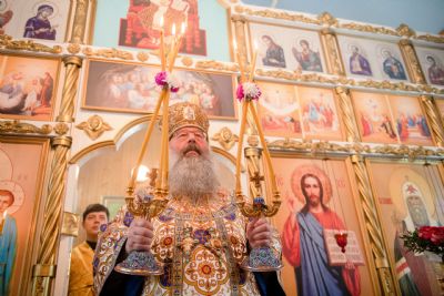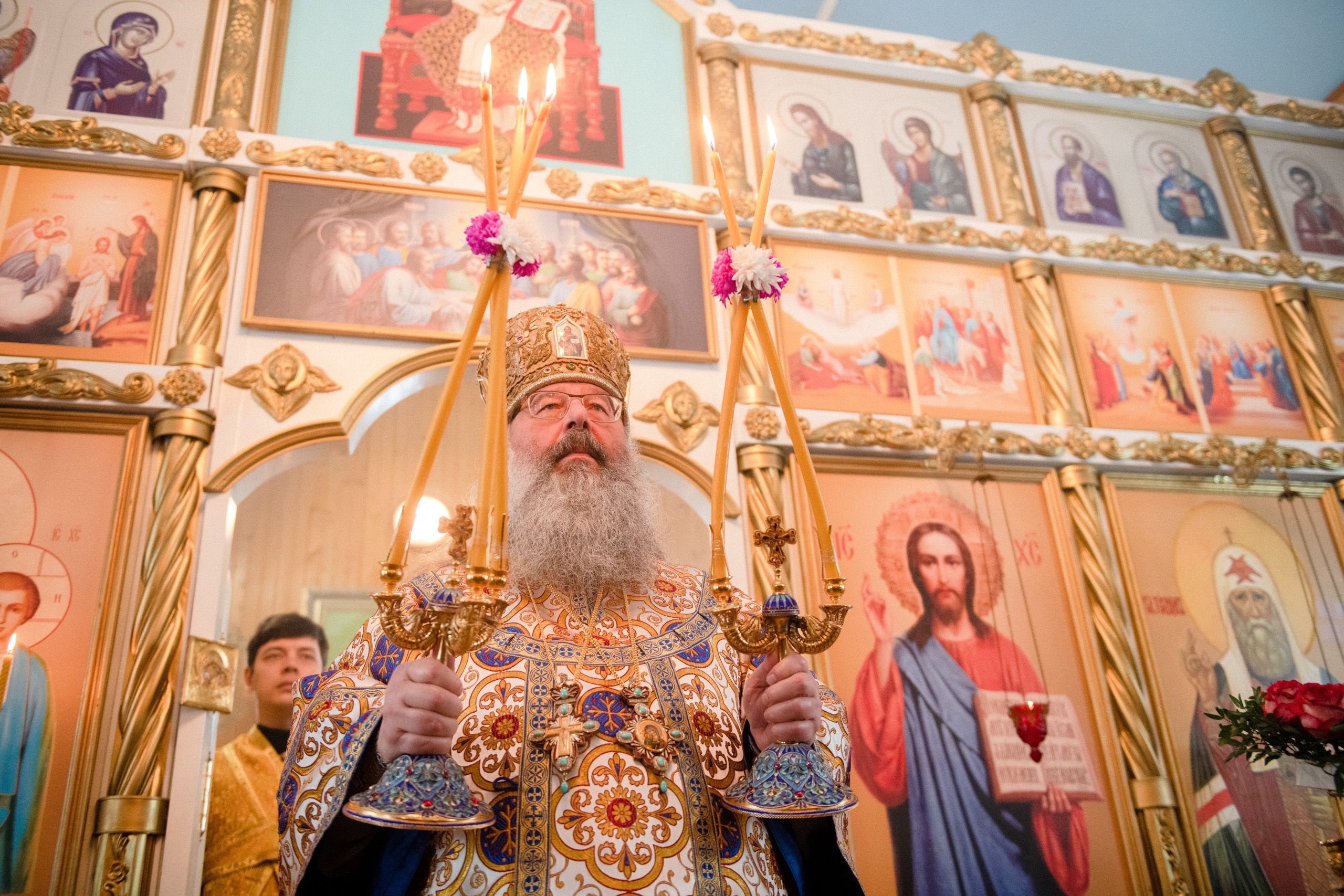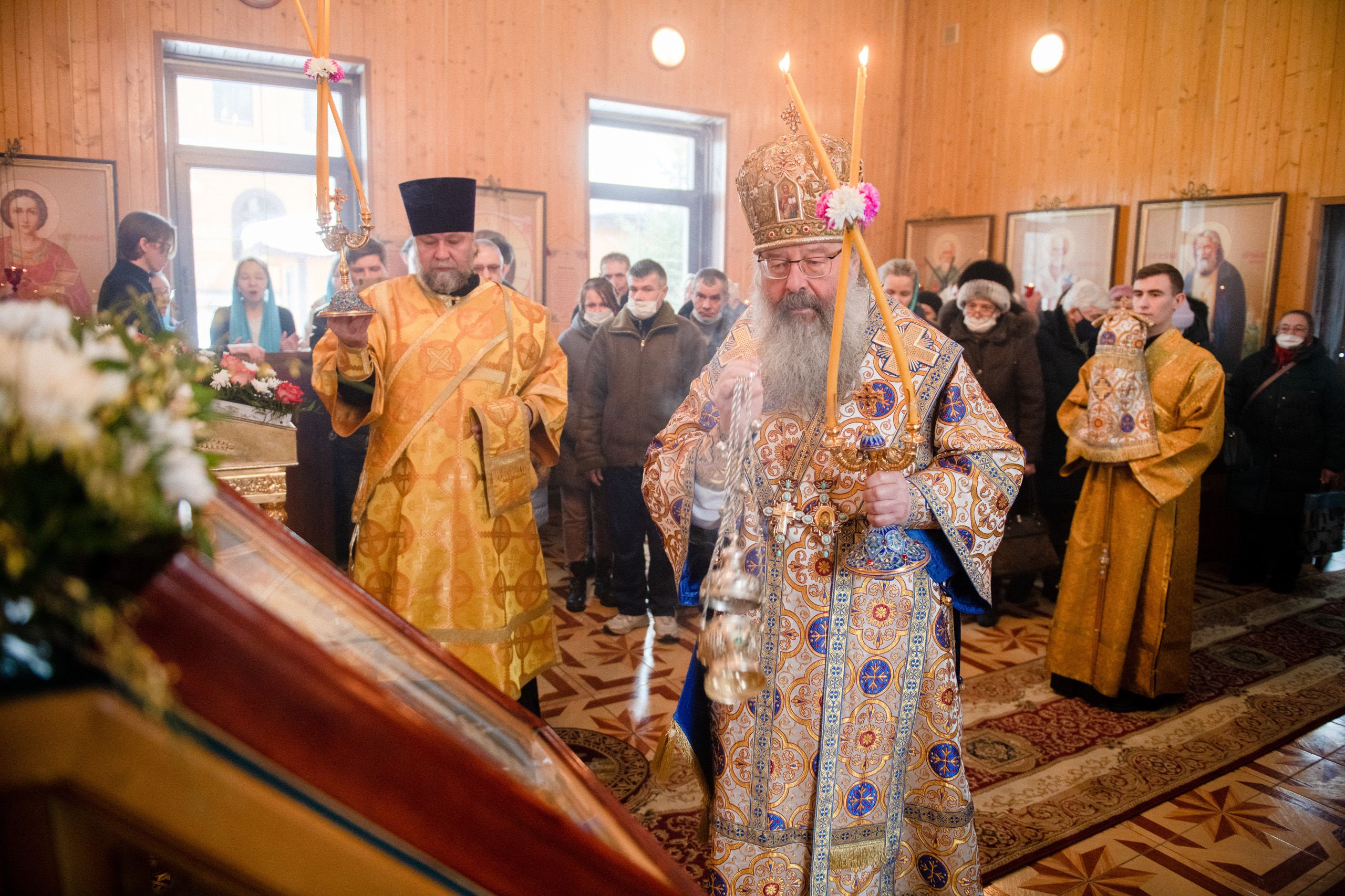 В завершение были пропеты тропарь, кондак и величание святителю Тихону. Митрополит Кирилл поздравил прихожан с днём памяти небесного покровителя храма.