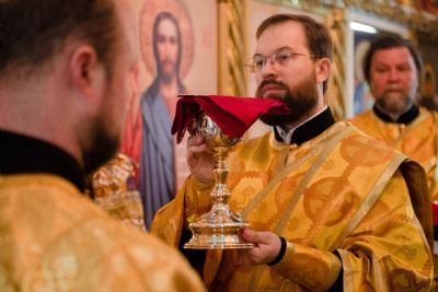 Богослужебные песнопения исполнил смешанный хор студентов Казанской духовной семинарии под управлением Полины Минеевой. По запричастном стихе проповедь произнёс иерей Алексий Краевский.