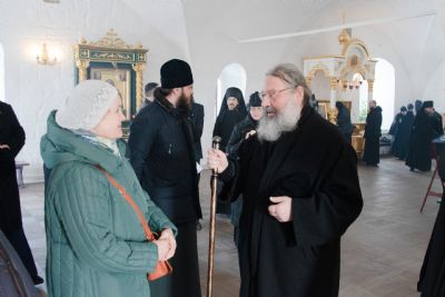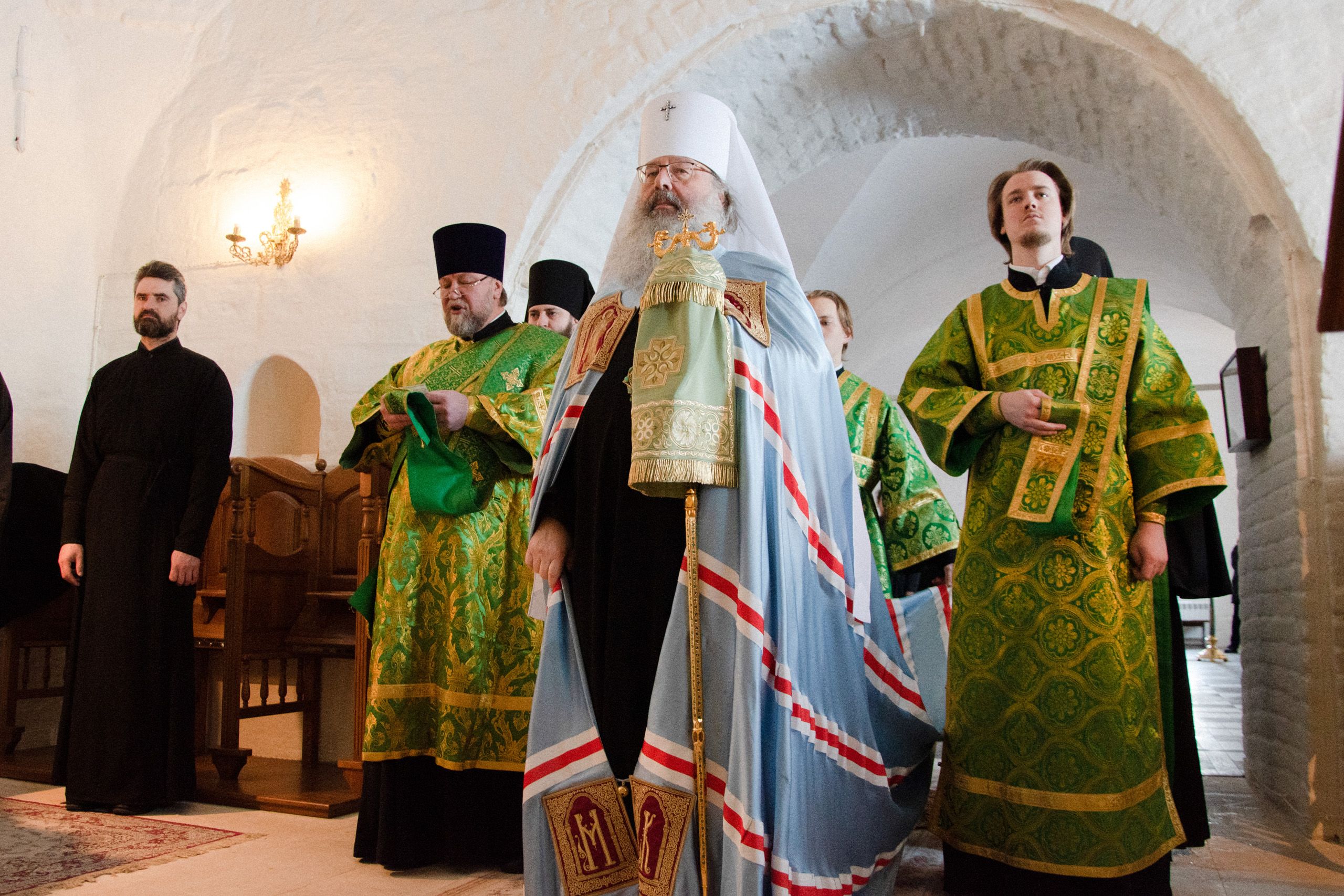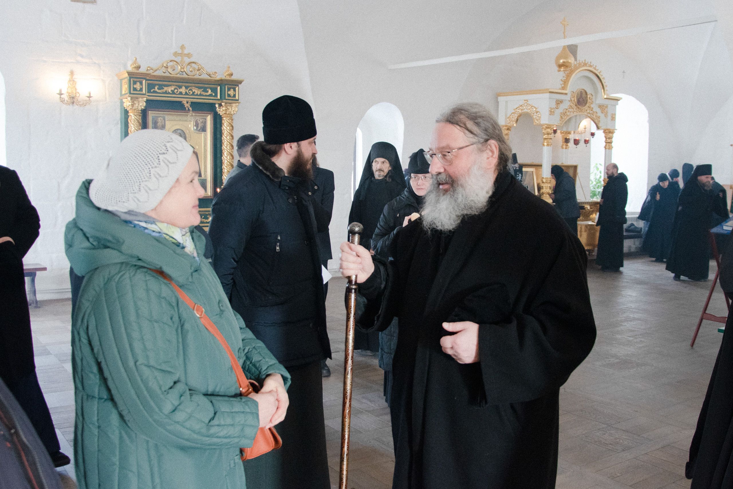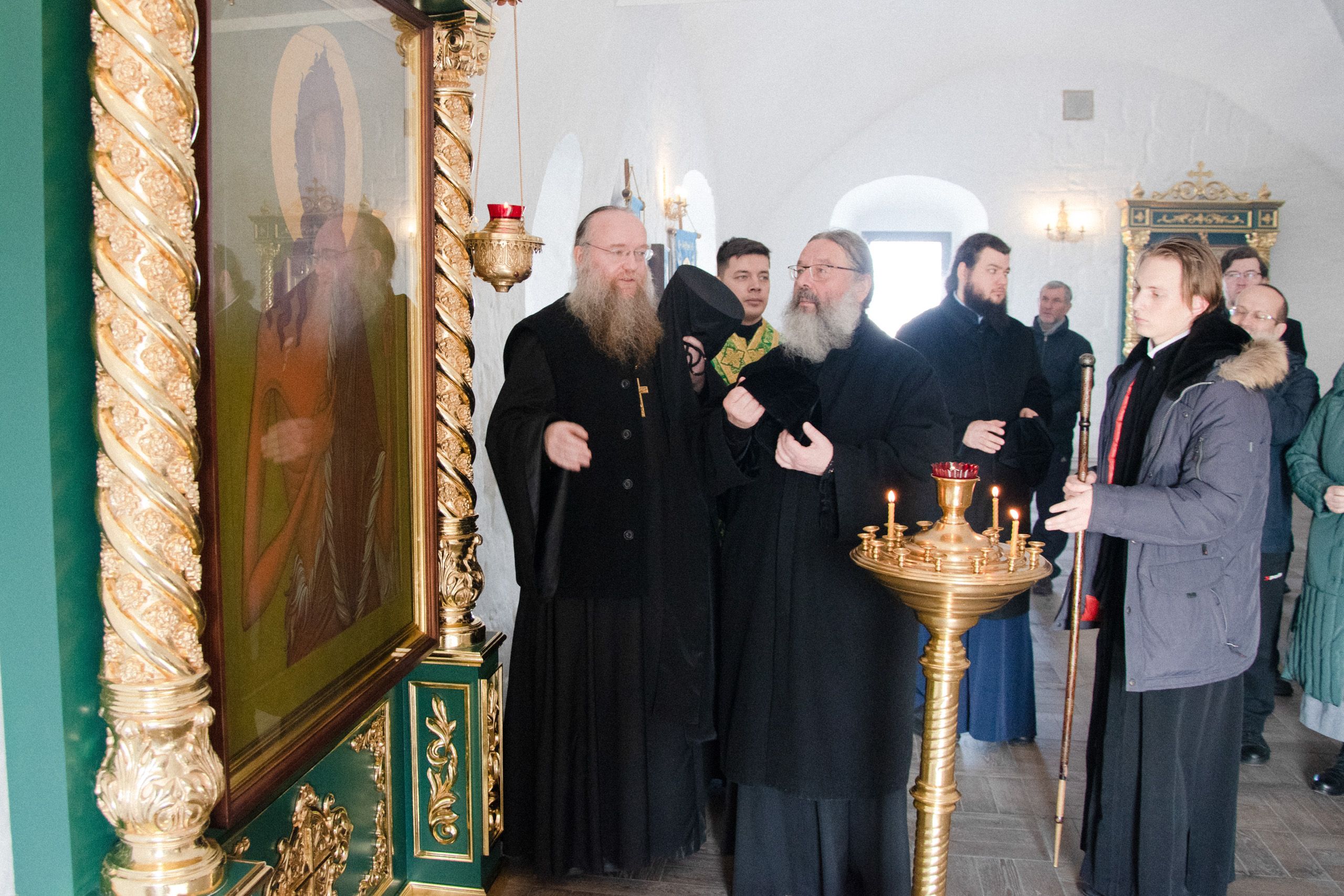 Сегодня мы собрались под сводами этого дивного храма Божиего в одном из самых древних монастырей нашей митрополии, удивительным образом сохранившемся и затем восстановленным. Для нас большое утешение получить благословение на грядущий Великий пост у самого святителя Германа, рядом с мощами которого мы сегодня находимся. Утешение и в том, чтобы помолиться Господу в день преподобных отцов, испросить у них такого же мужества, верности, силы духа, такого же смирения, кротости, целомудрия и послушания, которые имели они, когда ходили по этой земле. Сегодня они ходят по небу и обливаются горькими слезами, взирая на нашу жизнь монашескую и христианскую, но не перестают предстоять за нас пред Господом Богом.