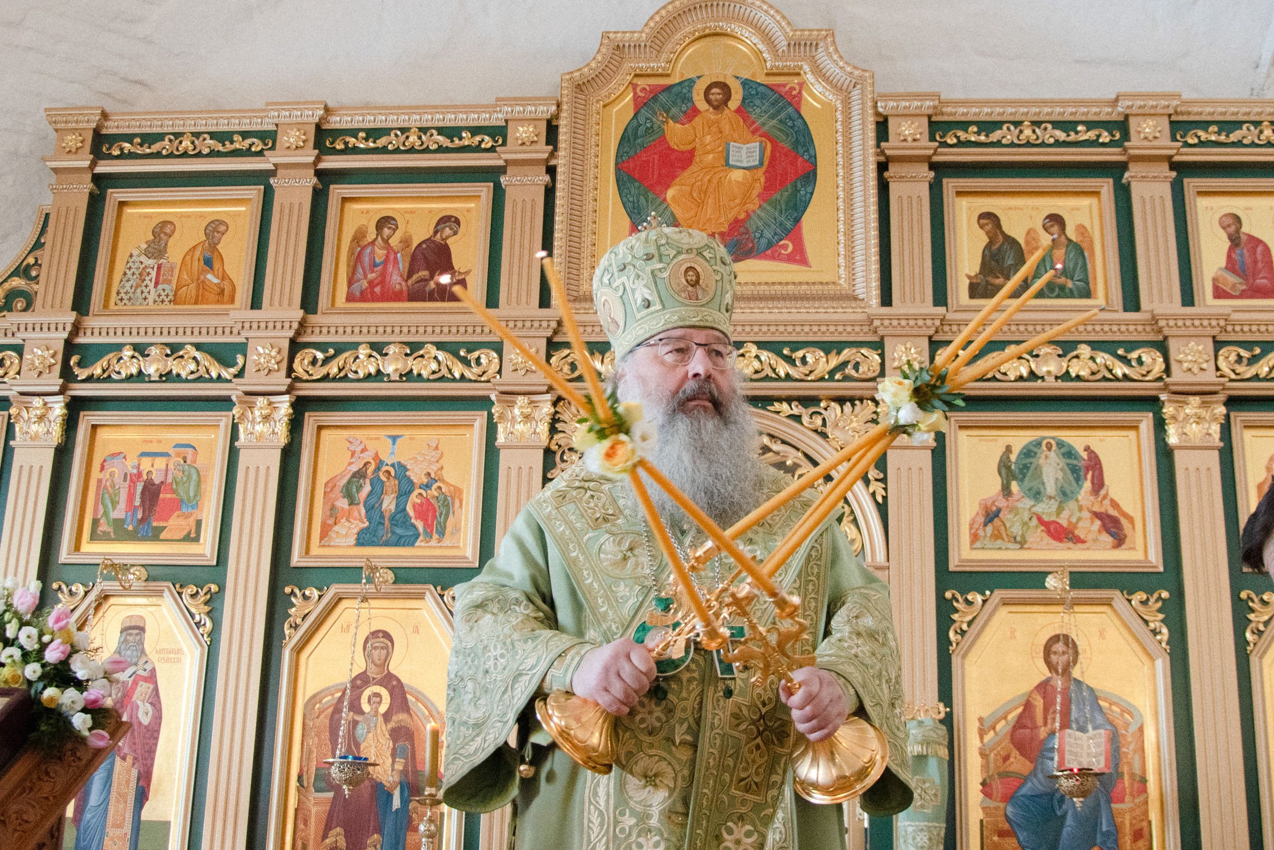 Его Высокопреосвященству сослужили секретарь Татарстанской митрополии иеромонах Кирилл (Корытко), наместник монастыря игумен Симеон (Кулагин), настоятель храма праведного Иоанна Кронштадтского при Казанской духовной семинарии иеромонах Филипп (Киселёв), секретарь главы митрополии иеромонах Алексий (Яцейко), насельники обители в священном сане. Песнопения исполнил архиерейский мужской хор под управлением Дениса Рогова.
