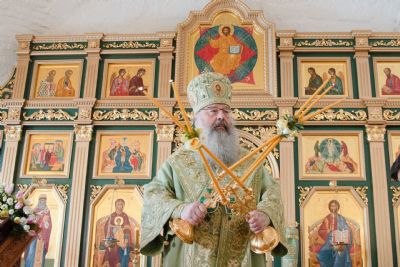 За богослужением молились монашествующие Казанской епархии, прихожане и паломники Свияжского монастыря. По запричастном стихе проповедь произнёс игумен Симеон (Кулагин)