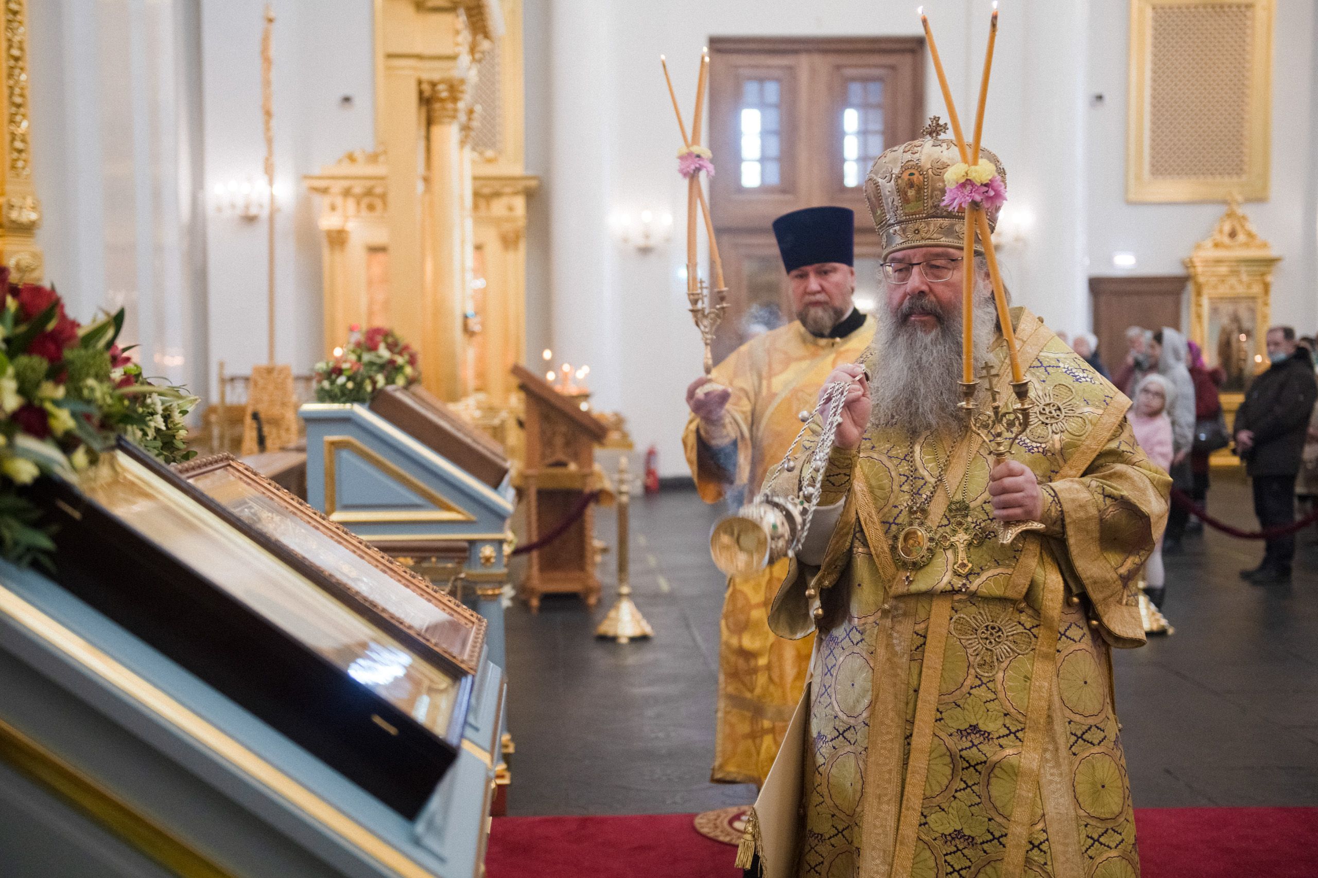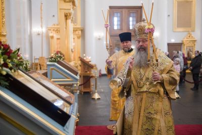 За богослужением митрополит Кирилл вознёс молитву о скорейшем восстановлении мира. По запричастном стихе проповедь произнёс иеромонах Антоний (Кадетов).