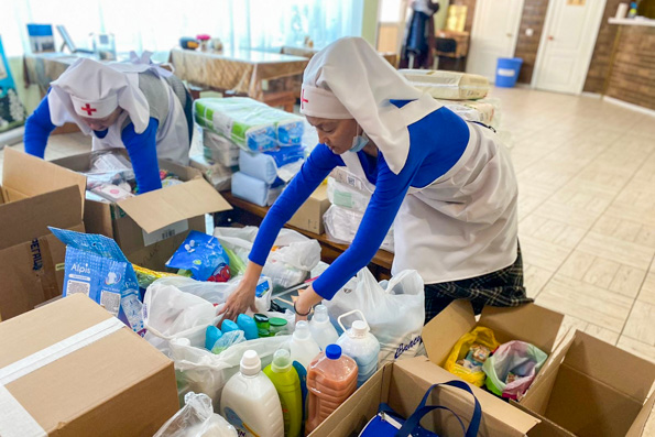 Сбором гуманитарной помощи занимаются сестры милосердия, добровольцы и социальные работники приходов.