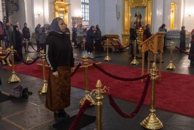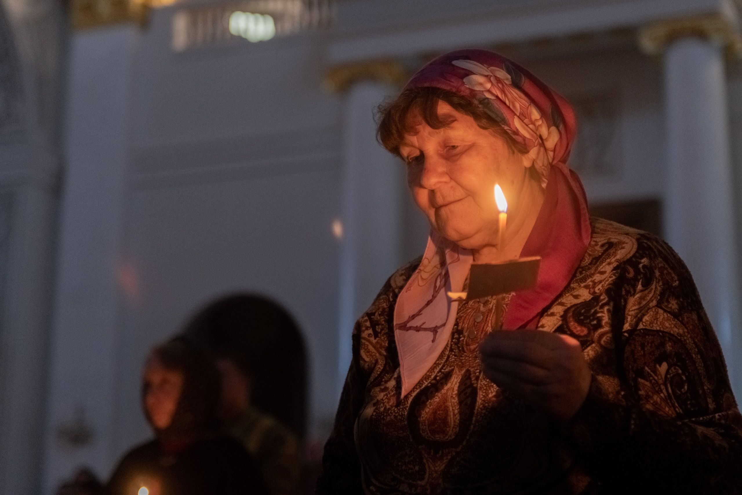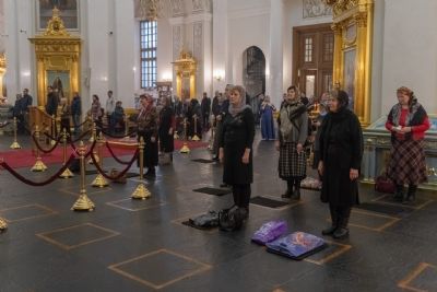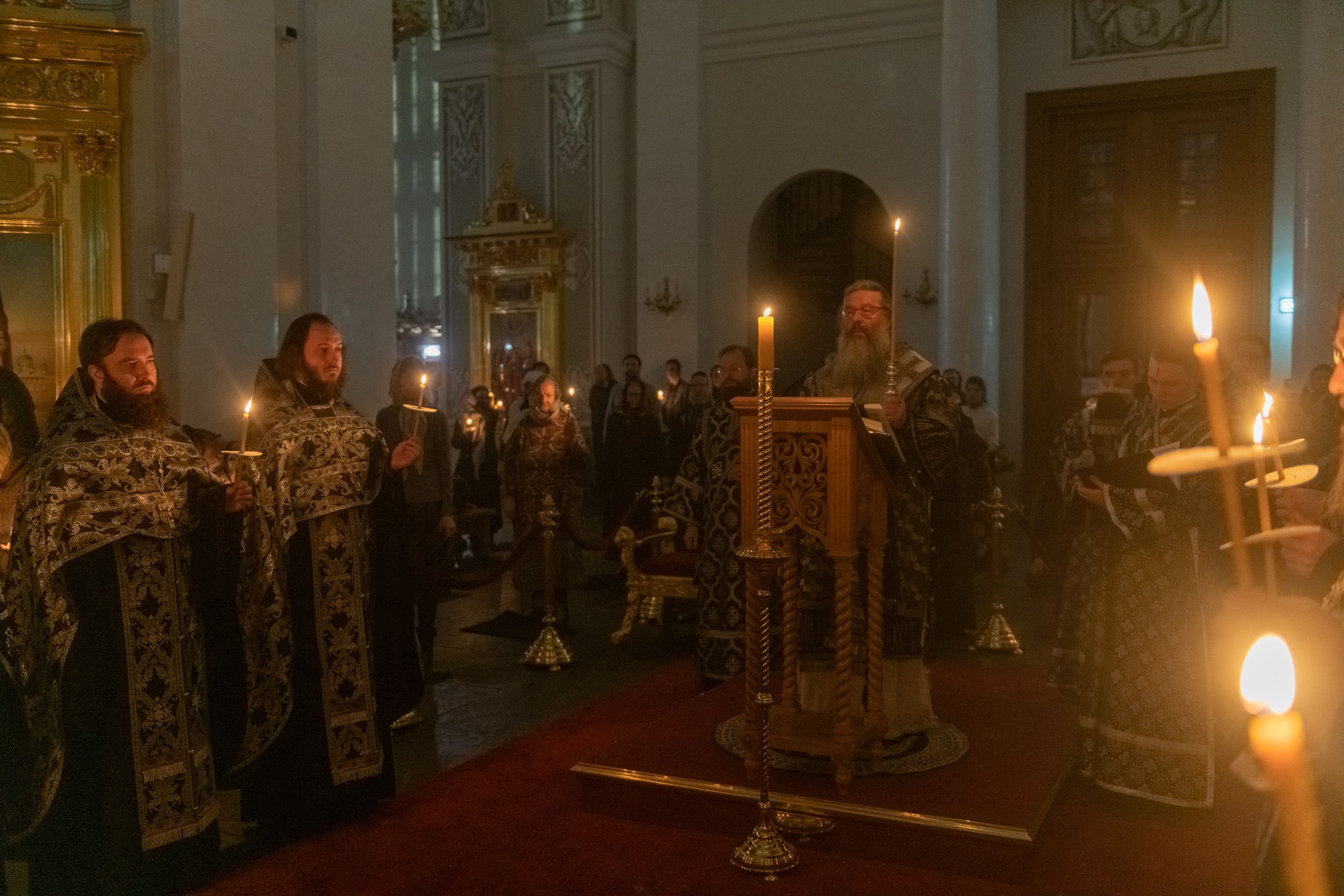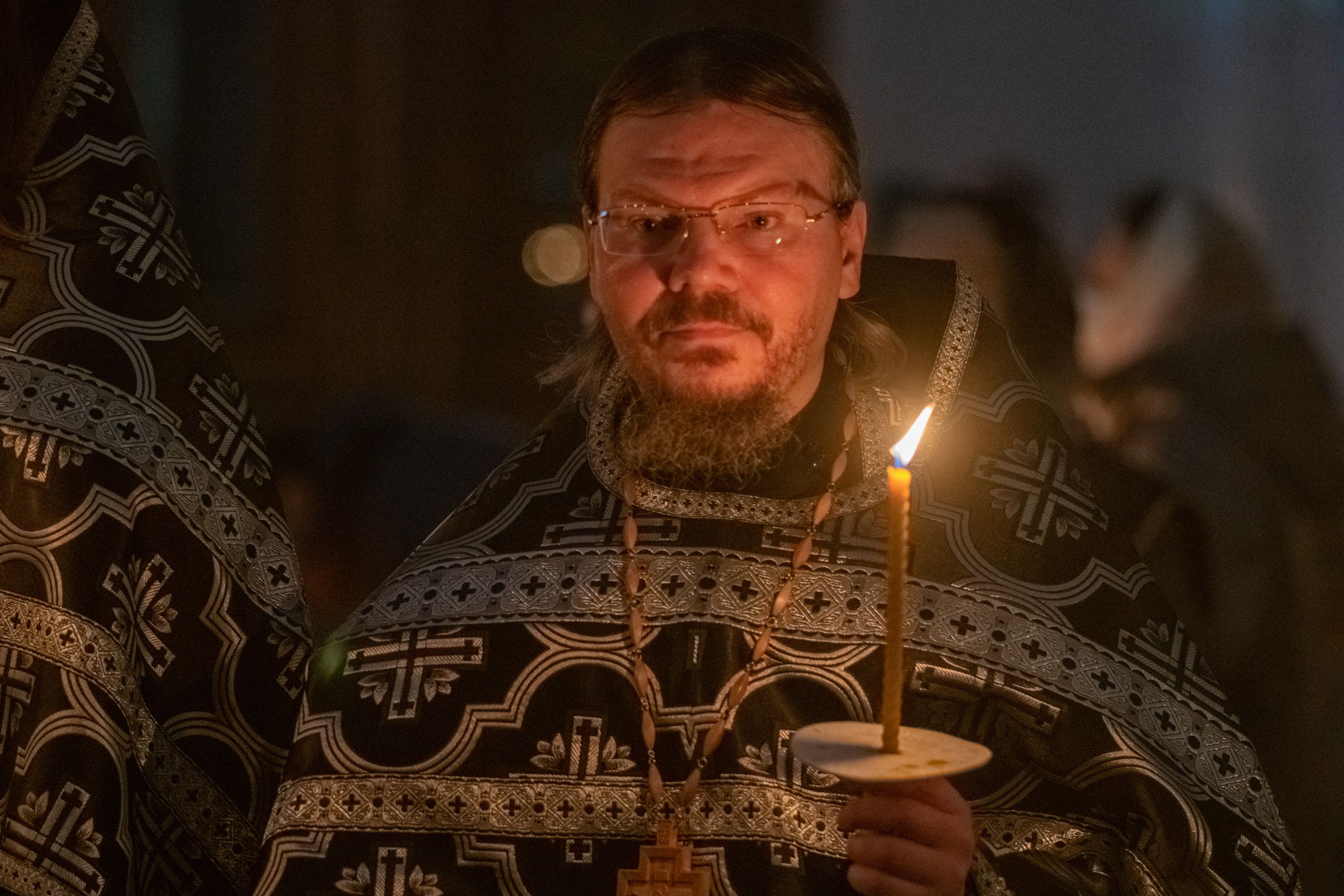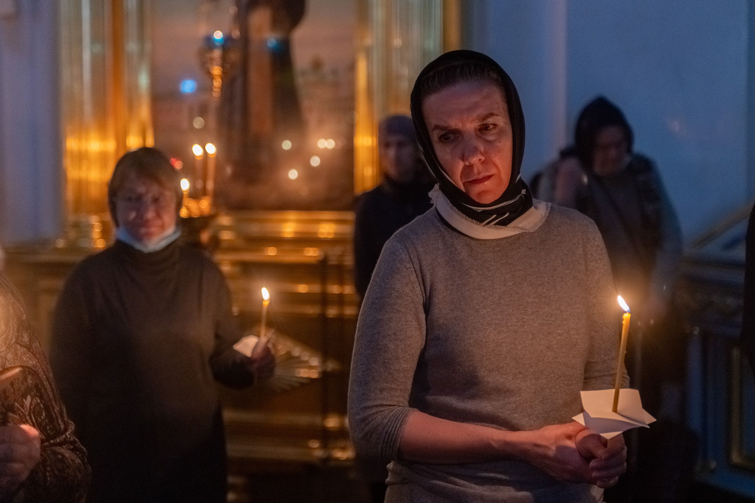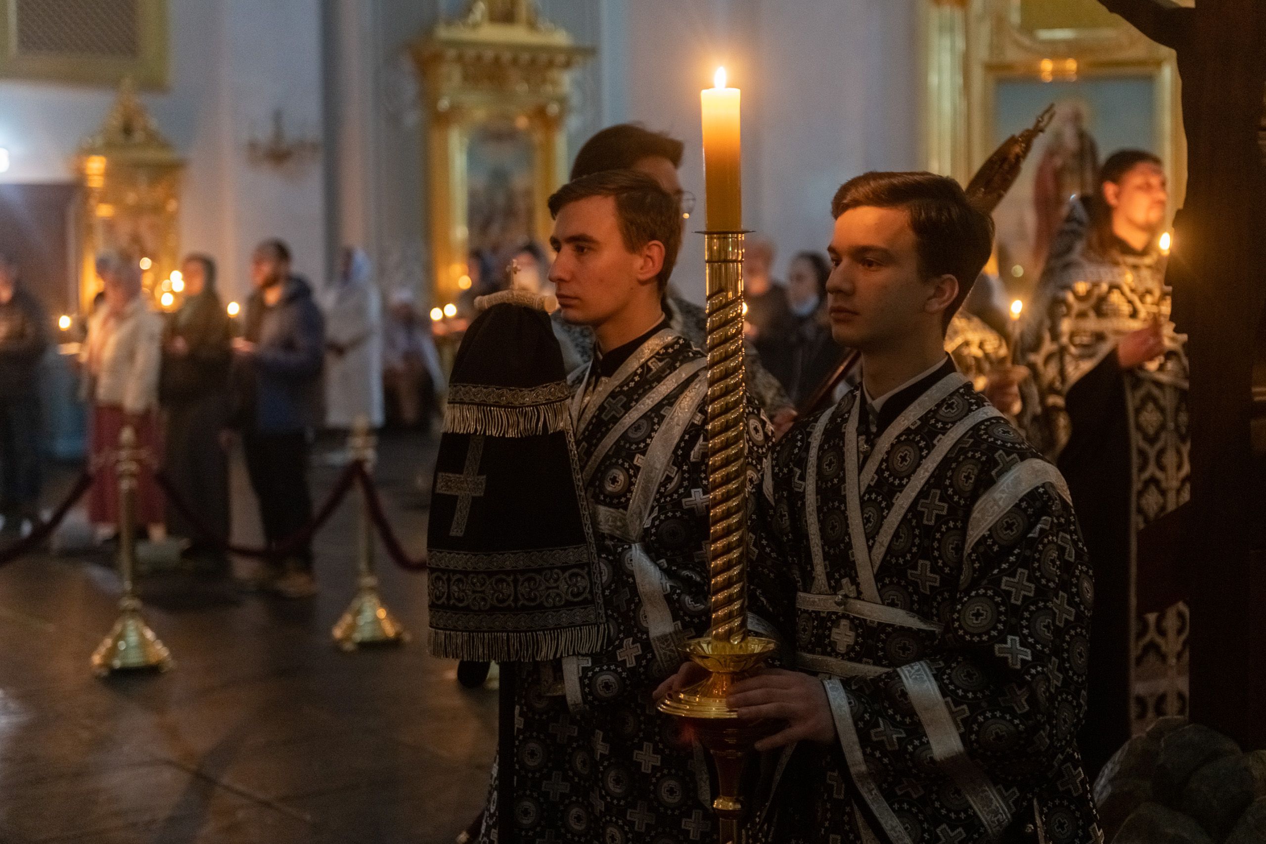 На богослужении было прочитано Евангелие от Луки, повествующее о страданиях Спасителя.