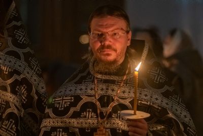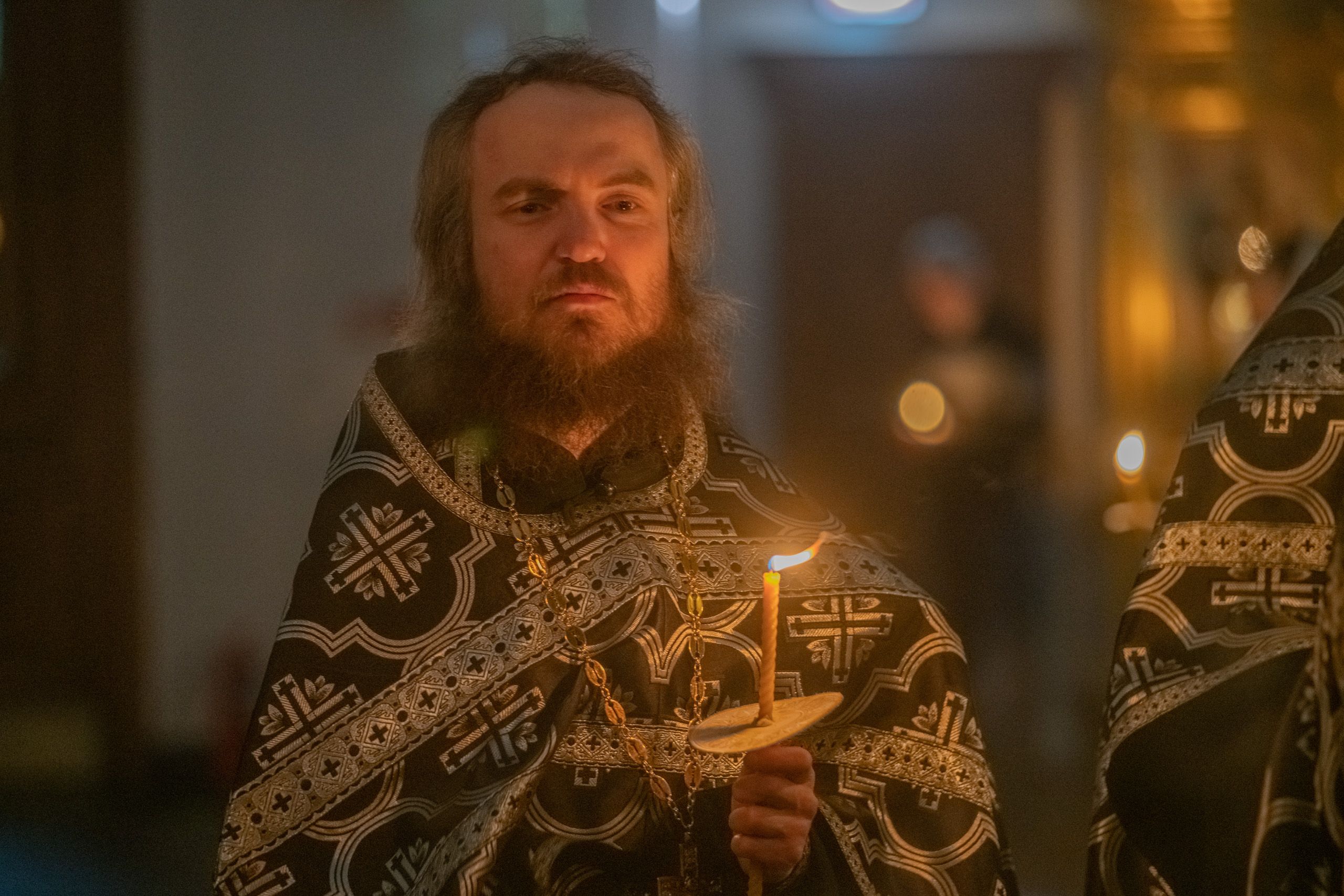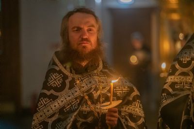 После чтения Евангелия проповедь произнёс иеромонах Кирилл (Корытко):
