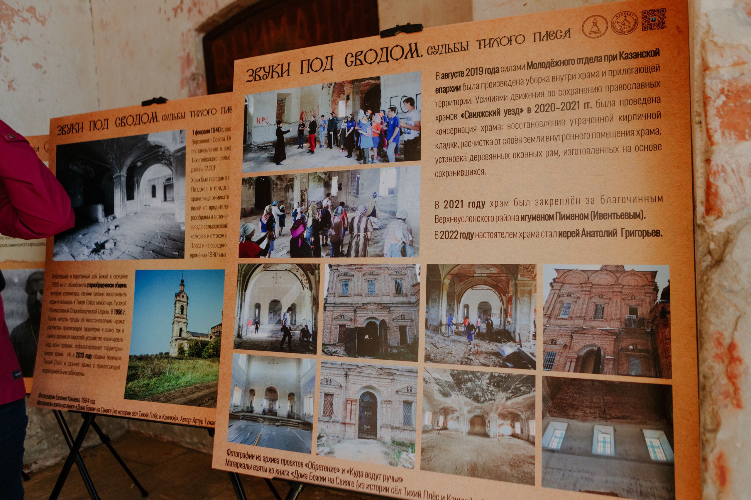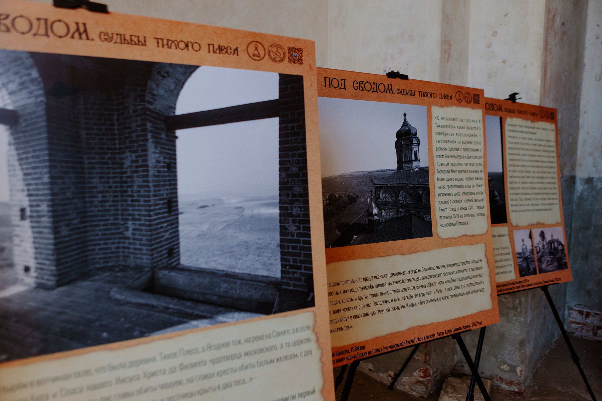 С историей храма и села гостей познакомил краевед Артур Тумаков. Рассказ краеведа дополнили архивные фотографии, представленные в экспозиции «Судьбы Тихого Плёса». Фотокарточки, переданные старожилами села, отражали детство сельчан; молодость, которая пришлась на военное время. В выставке также нашли отражение события приходской жизни — от разрушения храма до первых шагов на пути к возрождению святыни.