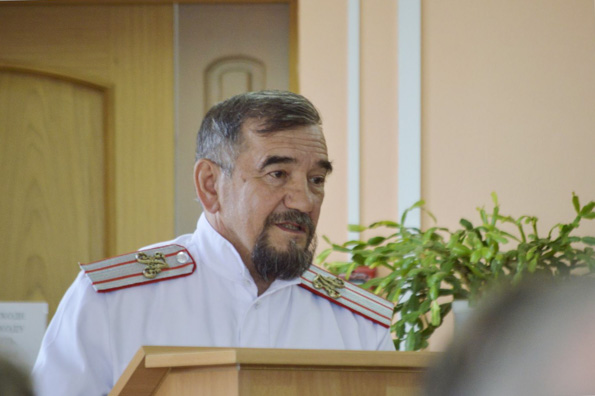 После этого участников конференции поприветствовали атаман Татарстанского окружного казачьего общества Волжского войскового казачьего общества есаул Ярослав Захаров и атаман регионального отделения Общероссийской общественной организации по развитию казачества «Союз казаков-воинов России и зарубежья» казачий полковник Николай Пузырев.