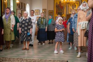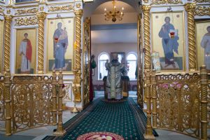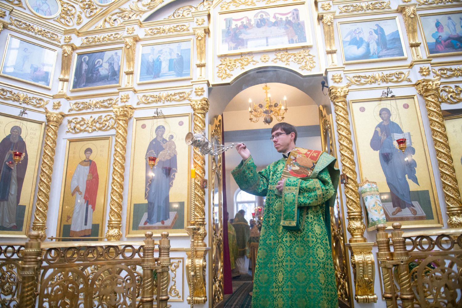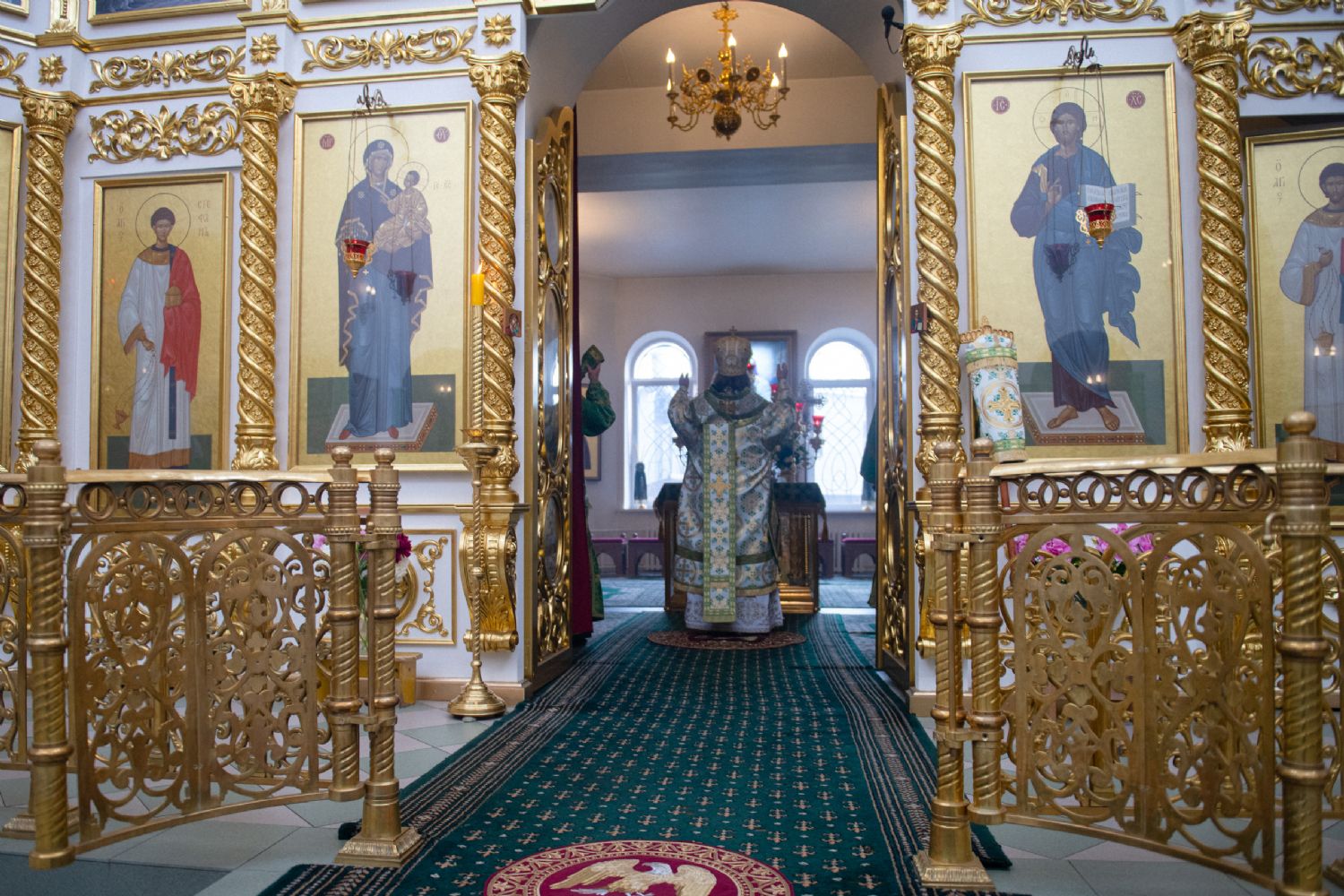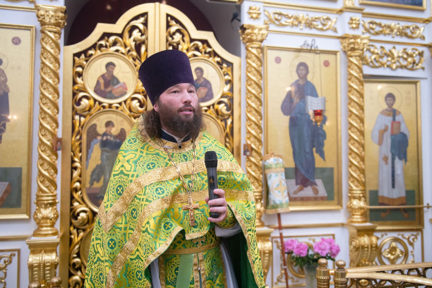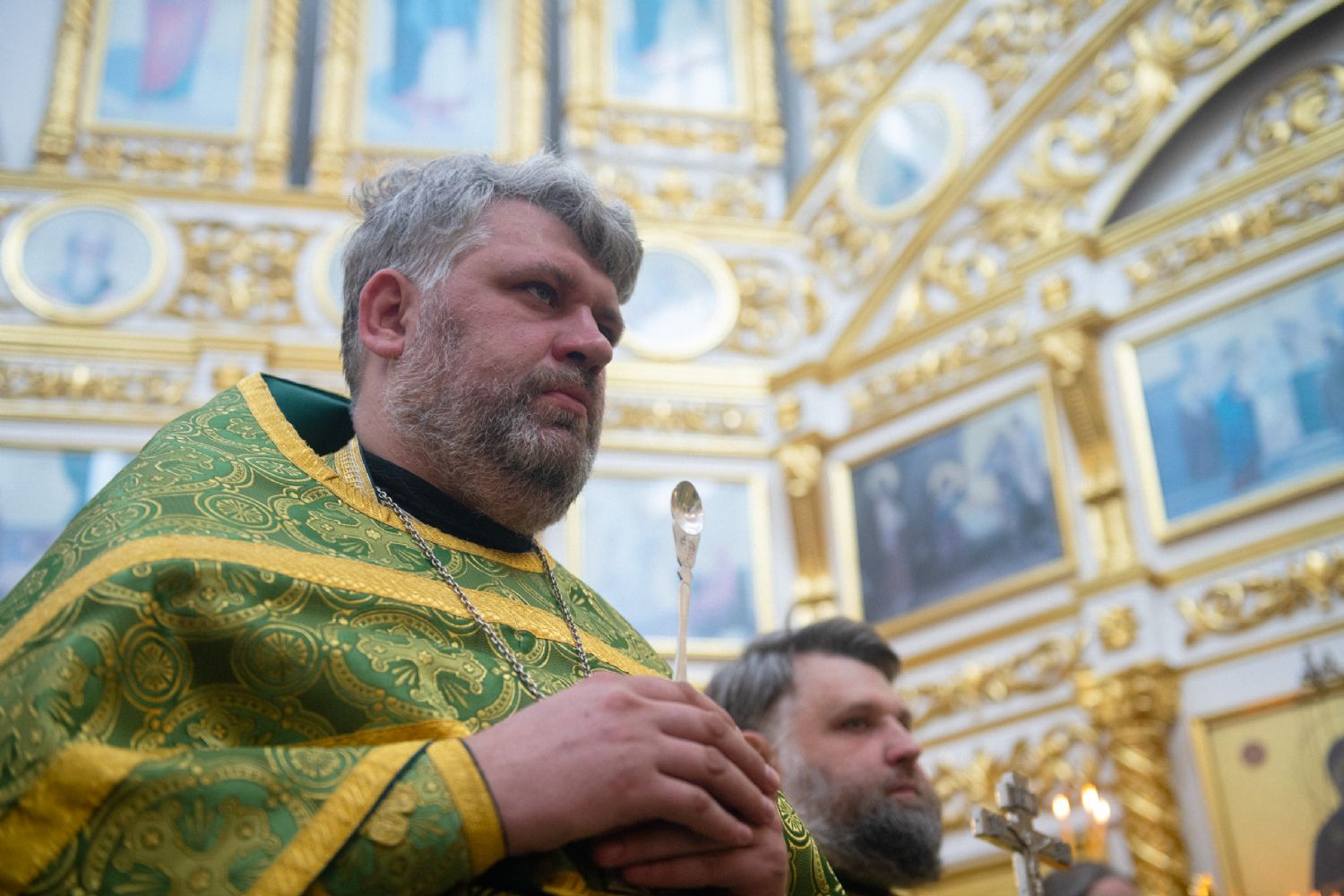 Богослужебные песнопения исполнил приходской смешанный хор под управлением Елены Васильевой. На сугубой ектении была вознесена молитва о восстановлении мира. По запричастном стихе проповедь произнёс клирик храма протоиерей Сергий Шкуро.