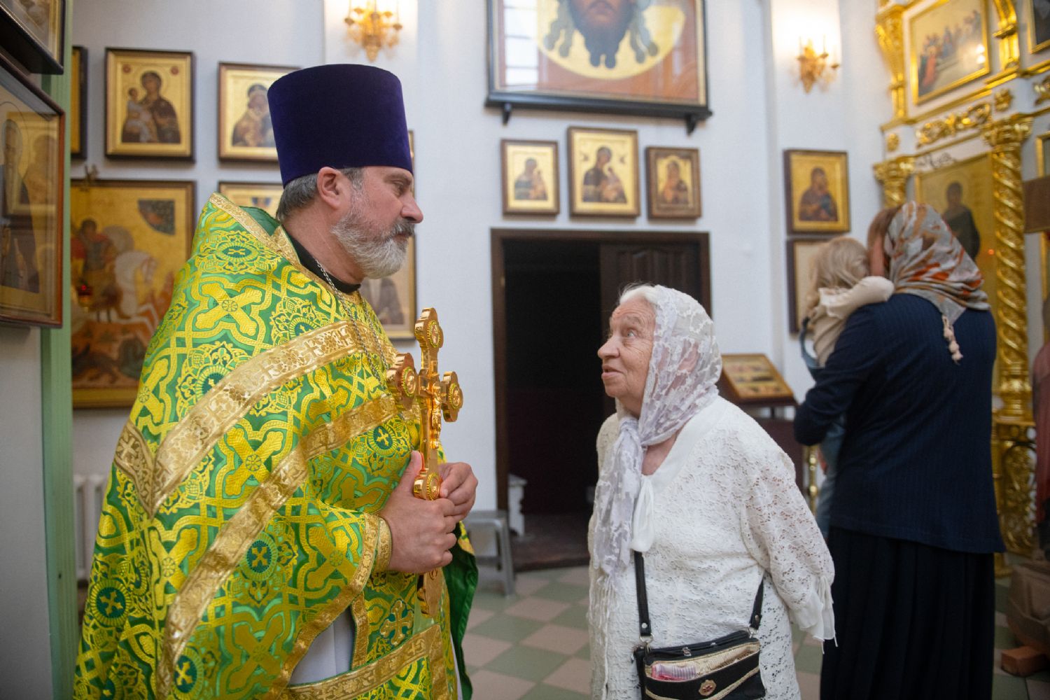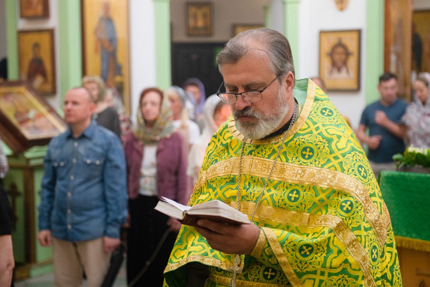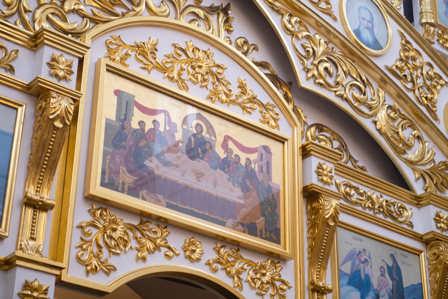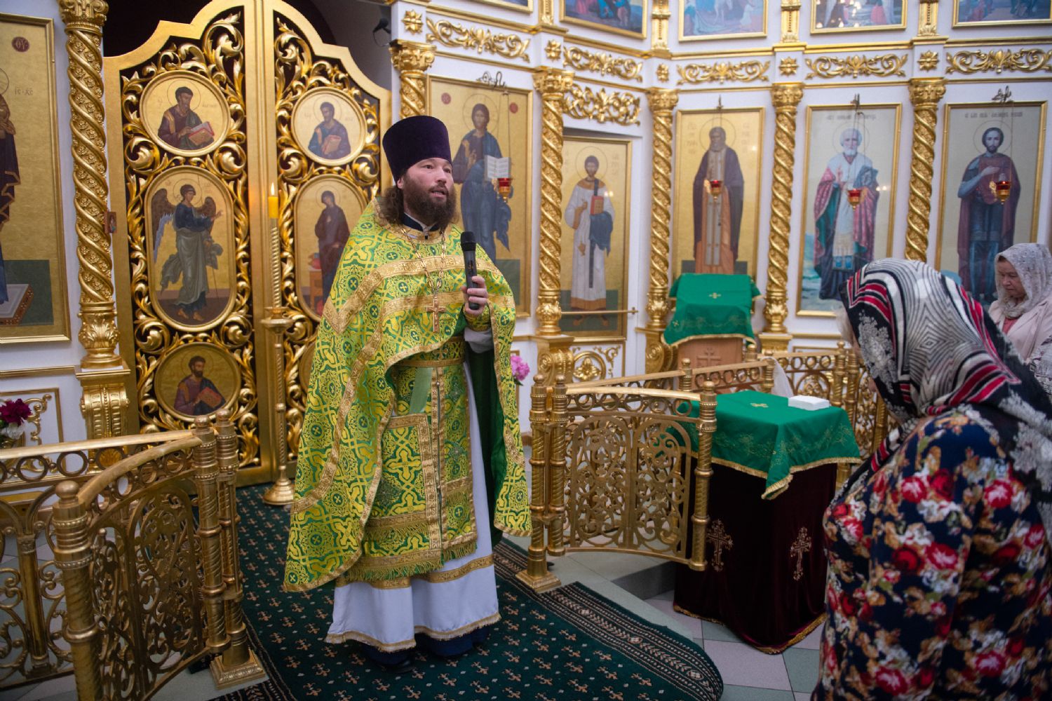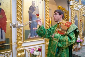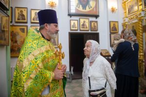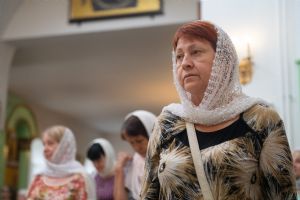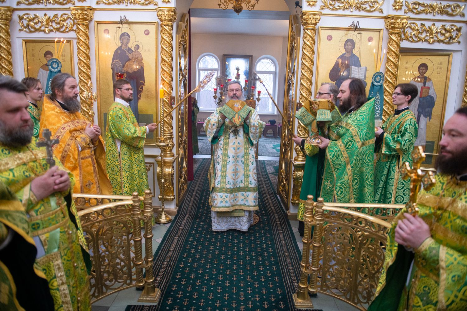 Богослужебные песнопения исполнил приходской смешанный хор под управлением Елены Васильевой. На сугубой ектении была вознесена молитва о восстановлении мира. По запричастном стихе проповедь произнёс клирик храма протоиерей Сергий Шкуро.