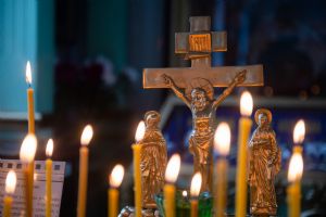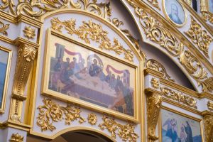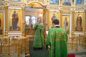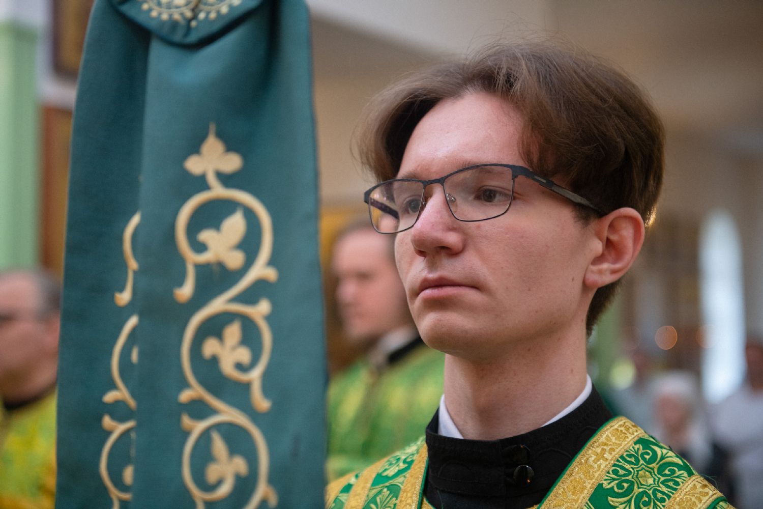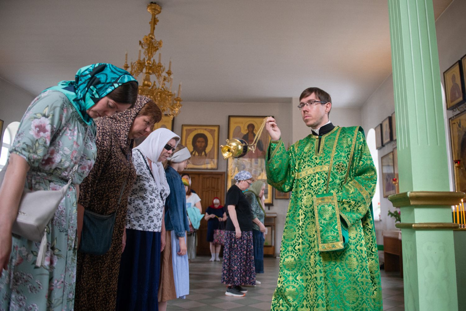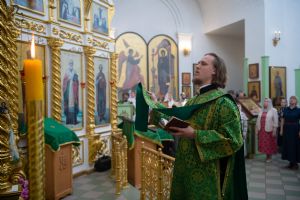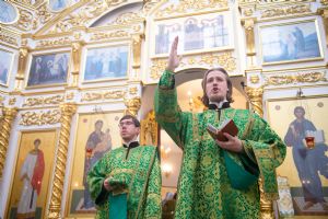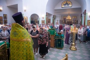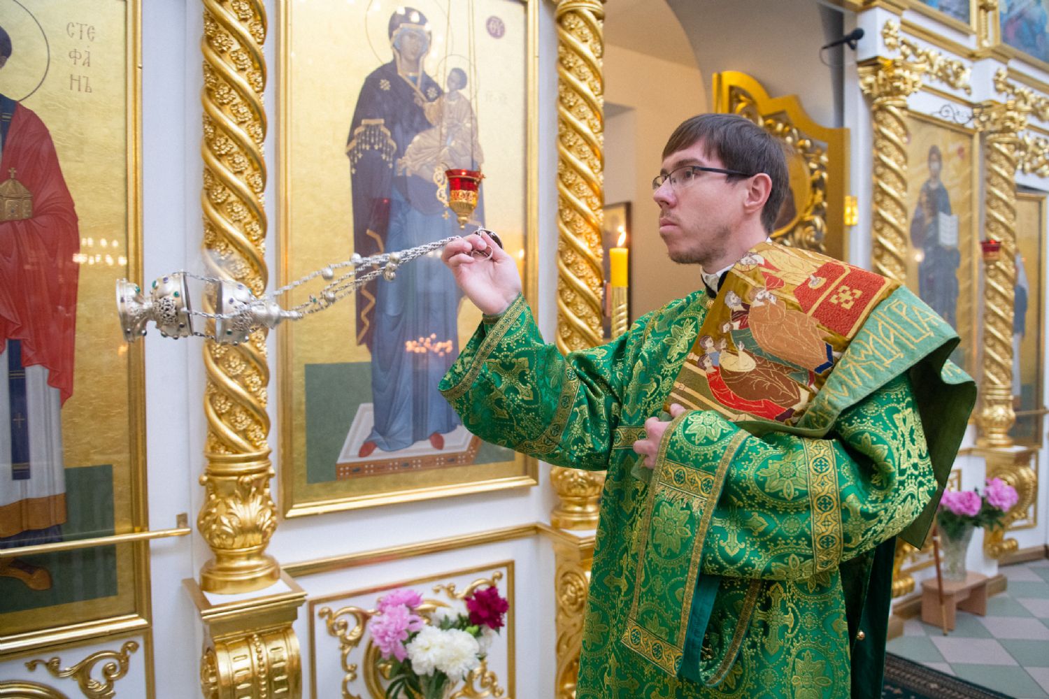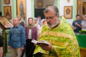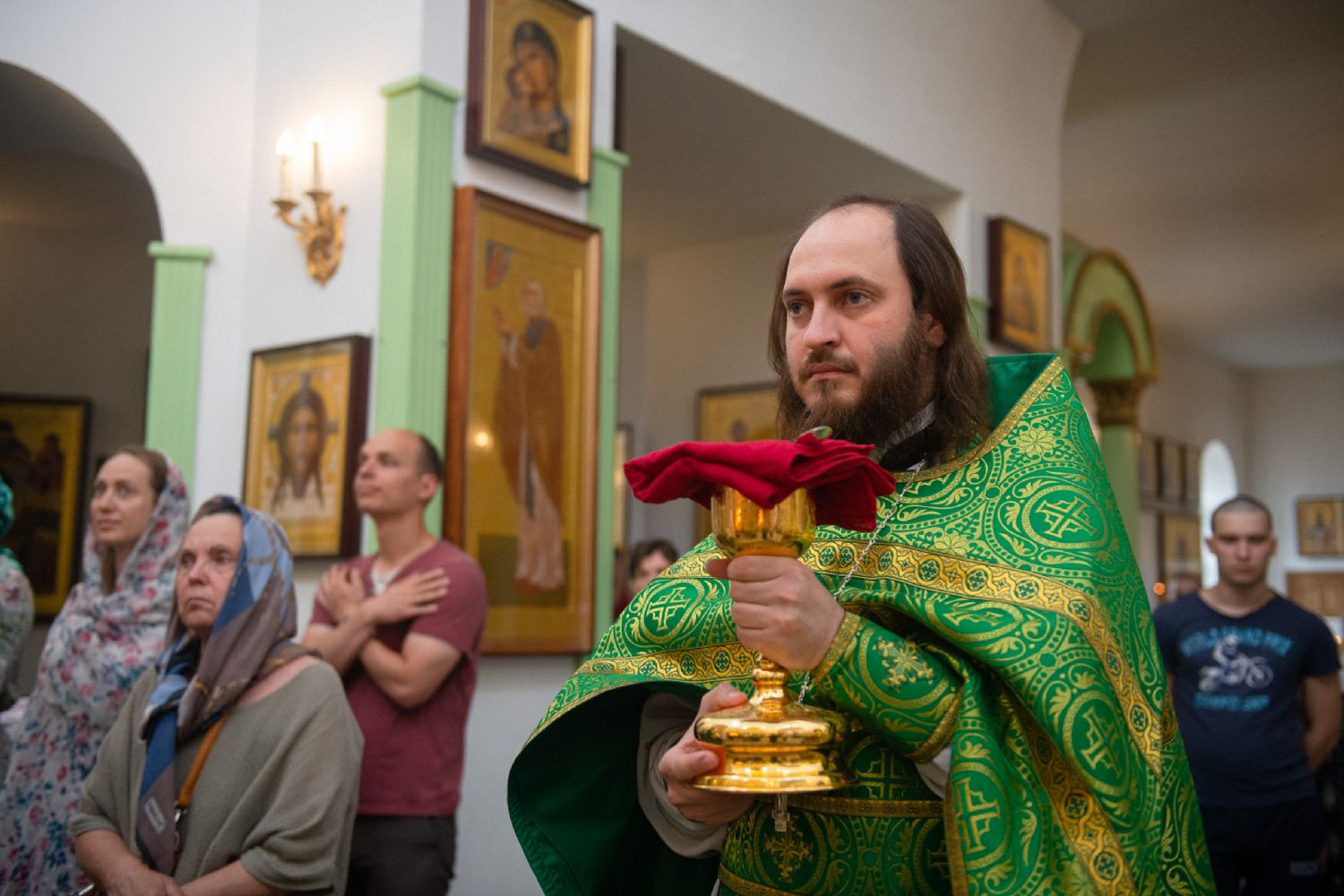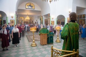 Богослужебные песнопения исполнил приходской смешанный хор под управлением Елены Васильевой. На сугубой ектении была вознесена молитва о восстановлении мира. По запричастном стихе проповедь произнёс клирик храма протоиерей Сергий Шкуро.