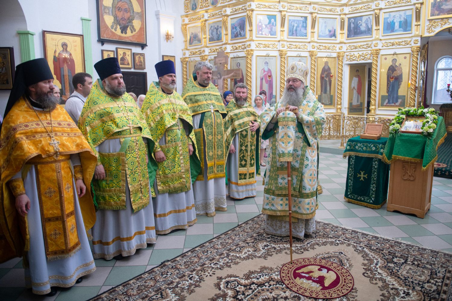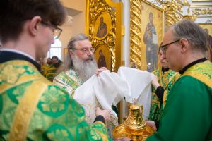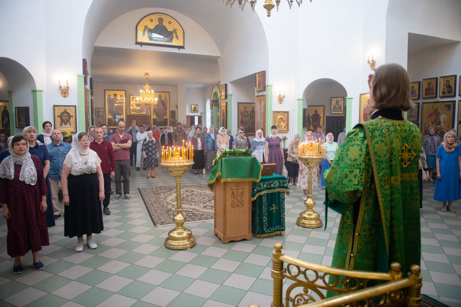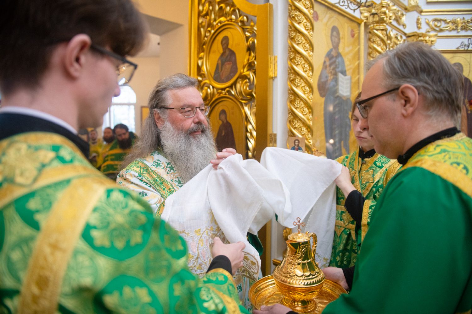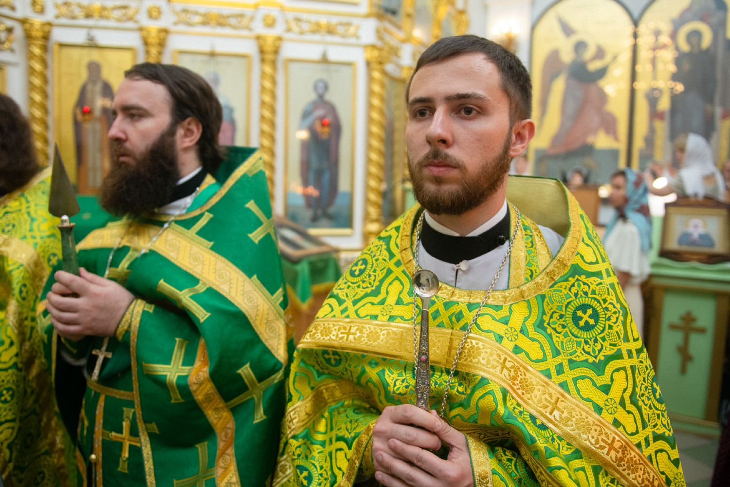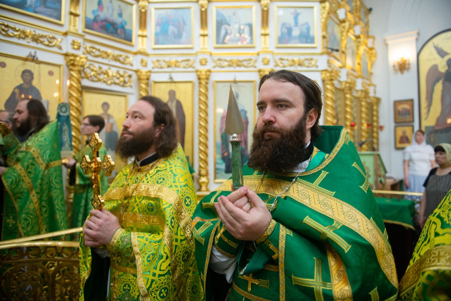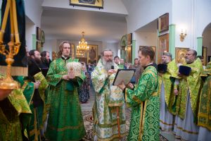 Его Высокопреосвященству сослужили секретарь Татарстанской митрополии, настоятель Серафимовского храма иеромонах Кирилл (Корытко), настоятель храма святителя Саввы Сербского города Екатеринбурга иеромонах Аркадий (Логинов), секретарь митрополита иеромонах Алексий (Яцейко), клирики прихода.