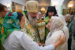 Архипастырь преподал верующим благословение. После службы митрополит Кирилл посетил приходской Центр духовного и творческого развития личности «Перемена». Правящий архиерей осмотрел отремонтированные помещения, где с нового учебного года будут заниматься воспитанники Серафимовской воскресной школы. В новом центре созданы условия для инклюзивного образования. Бесплатные творческие занятия для детей с ограниченными возможностями проходят при поддержке Министерства труда, занятости и социальной защиты РТ. Необходимые мебель и оборудование в Центр приобретены при поддержке Президента Татарстана Р.Н. Минниханова.