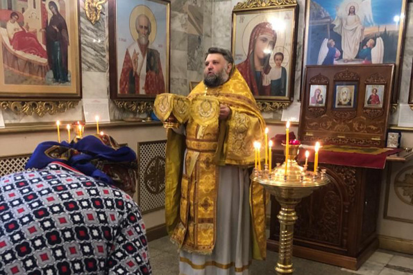 Богослужение совершил клирик прихода преподобного Серафима Саровского иерей Сергий Тимофеев. Клиросные послушания нёс клирик Серафимовского храма диакон Азат Альмухаметов. Помолиться и причаститься Святых Христовых Таин пришли сотрудники и пациенты МКДЦ.