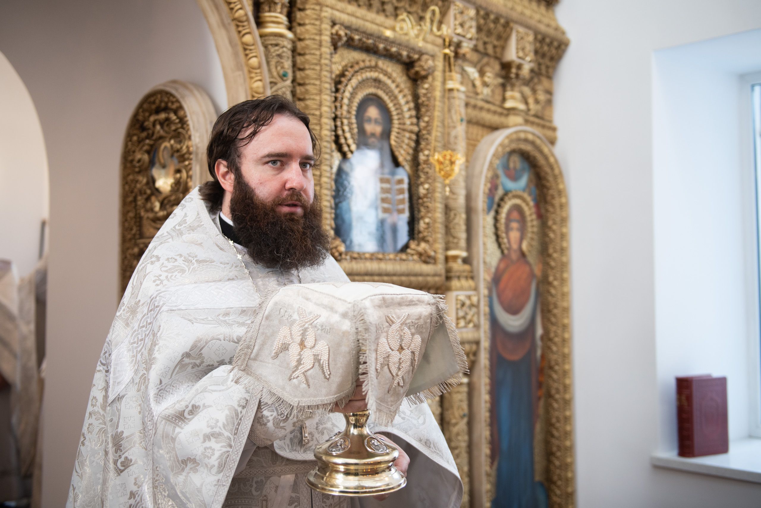 Всех вас сердечно приветствую и поздравляю с воскресным днём и с великим освящением этого чудесного храма в честь Покрова Пресвятой Владычицы нашей Богородицы и Приснодевы Марии!