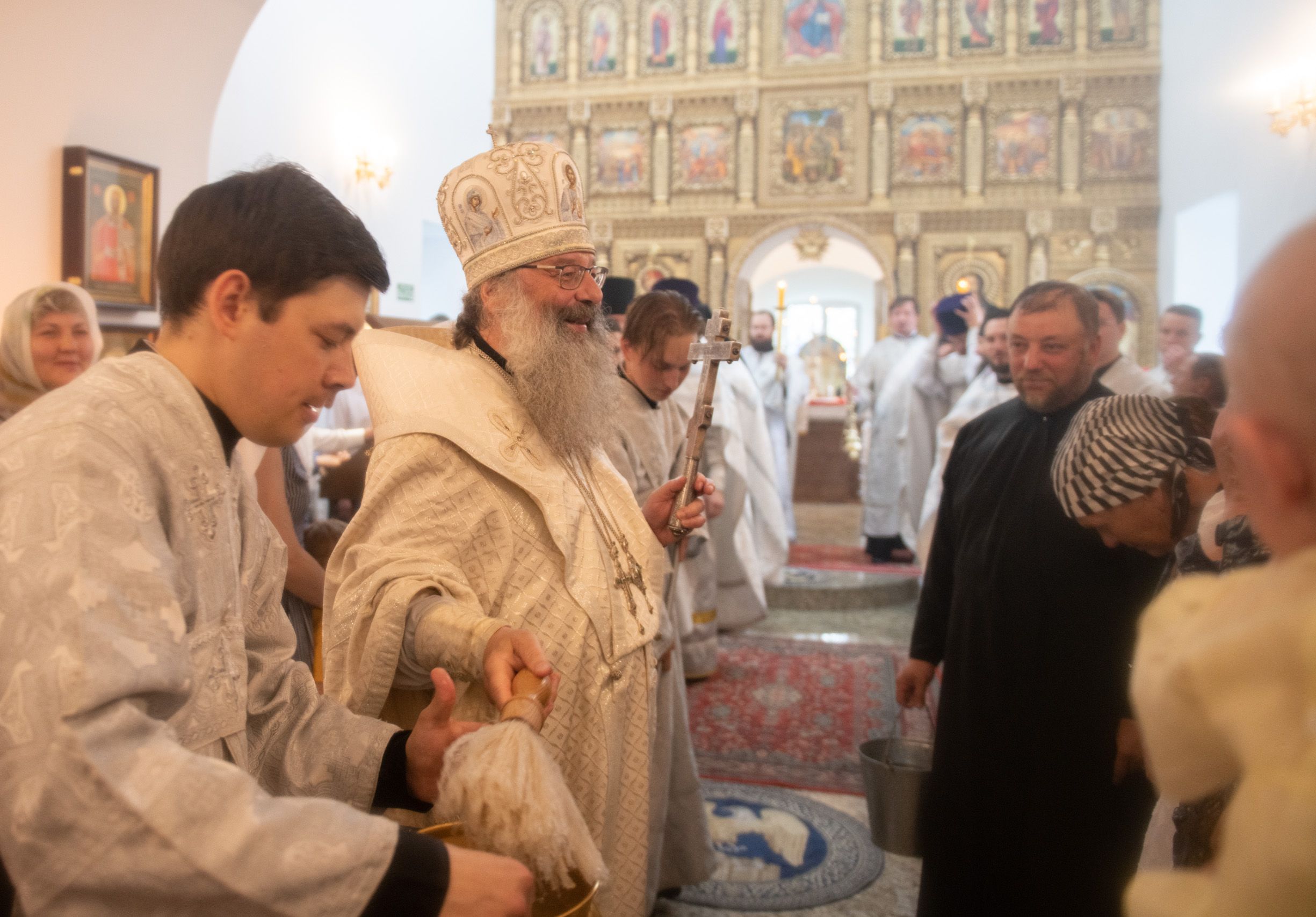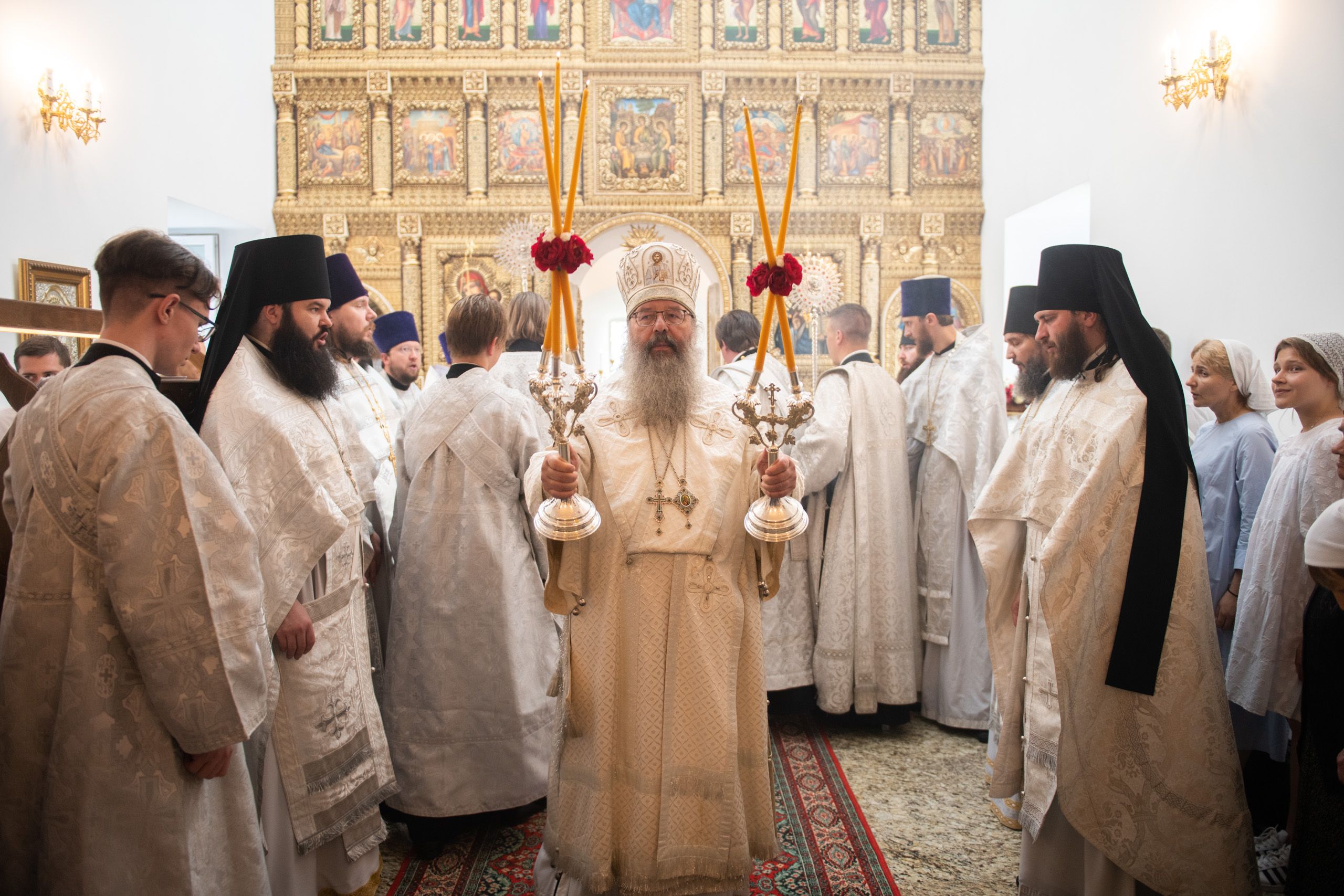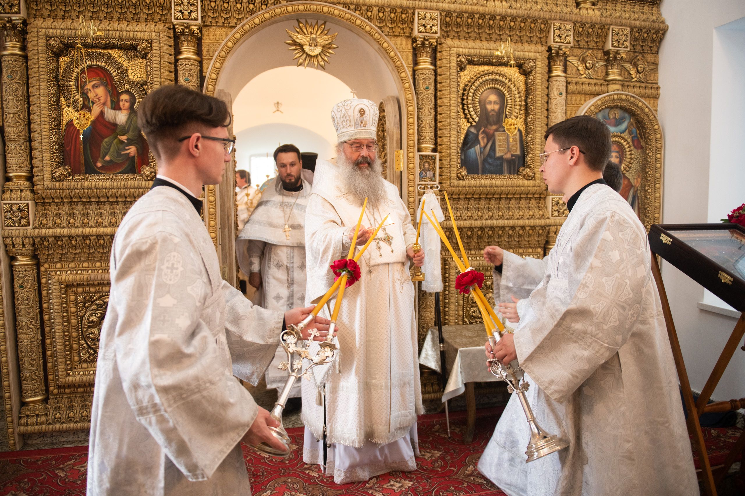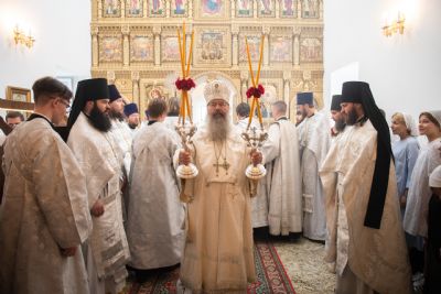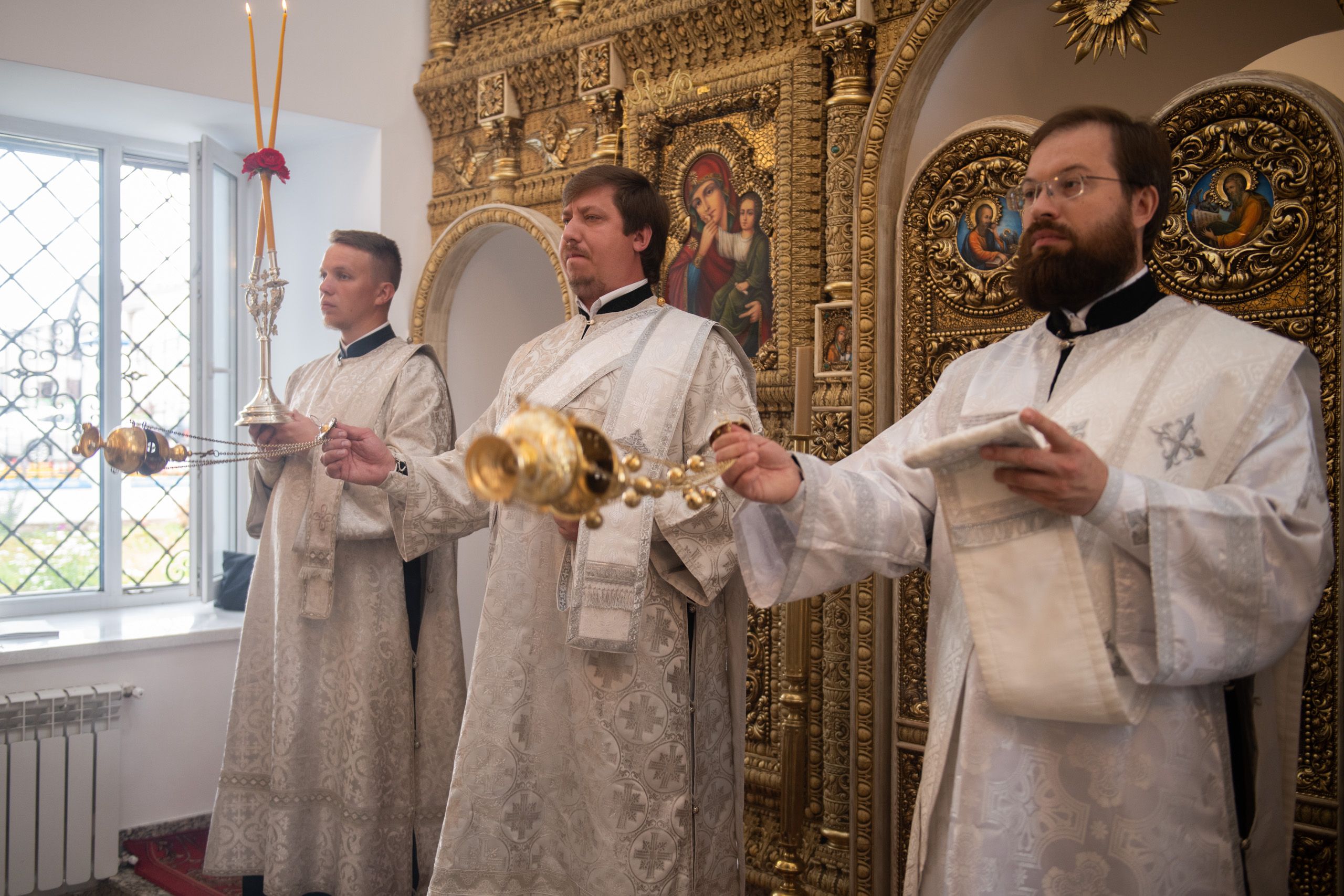 В храме три престола — в честь Покрова Пресвятой Богородицы, святителя Николая Чудотворца и иконы Божией Матери «Троеручица». По благословению Его Высокопреосвященства правый престол в честь иконы Божией Матери «Троеручица» освятили иеромонах Филипп (Киселёв), иеромонах Аркадий (Логинов), иерей Ярослав Петрущенков; левый Никольский престол — иеромонах Алексий (Яцейко), иерей Виктор Бельских, иерей Василий Крючков.