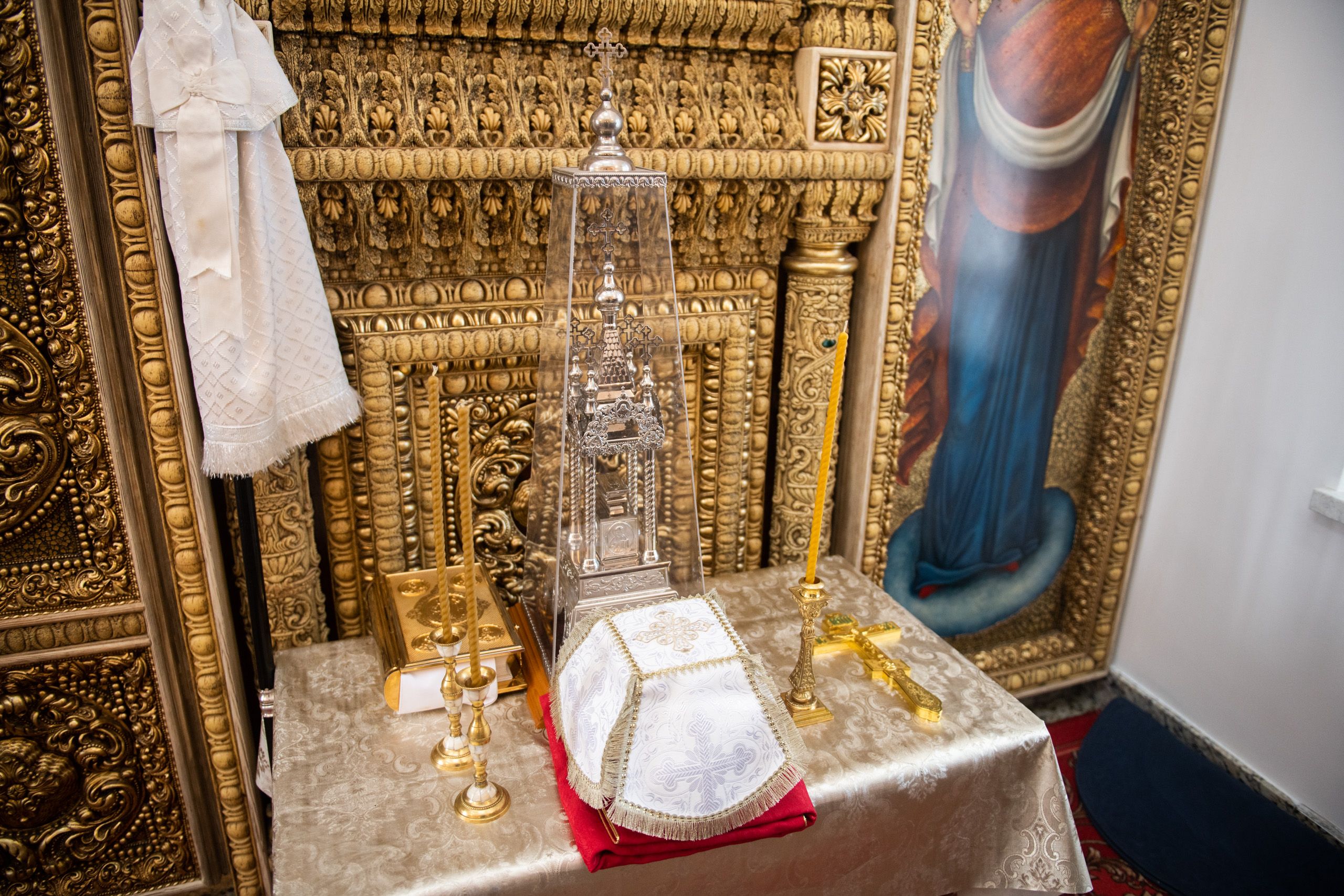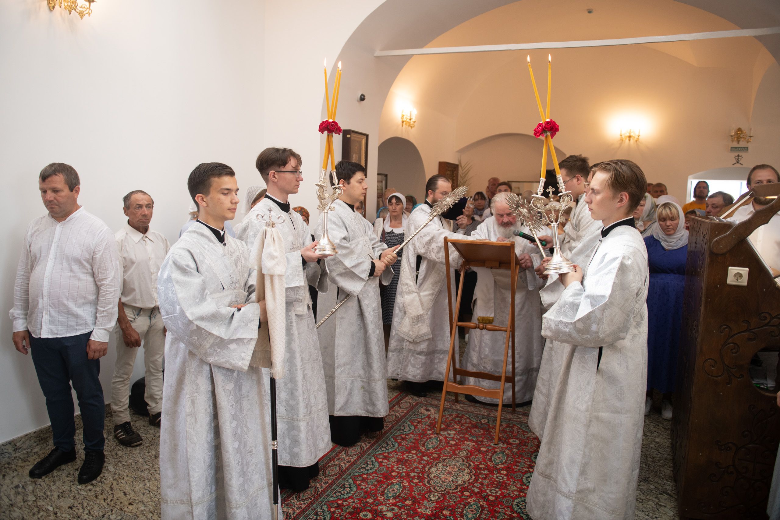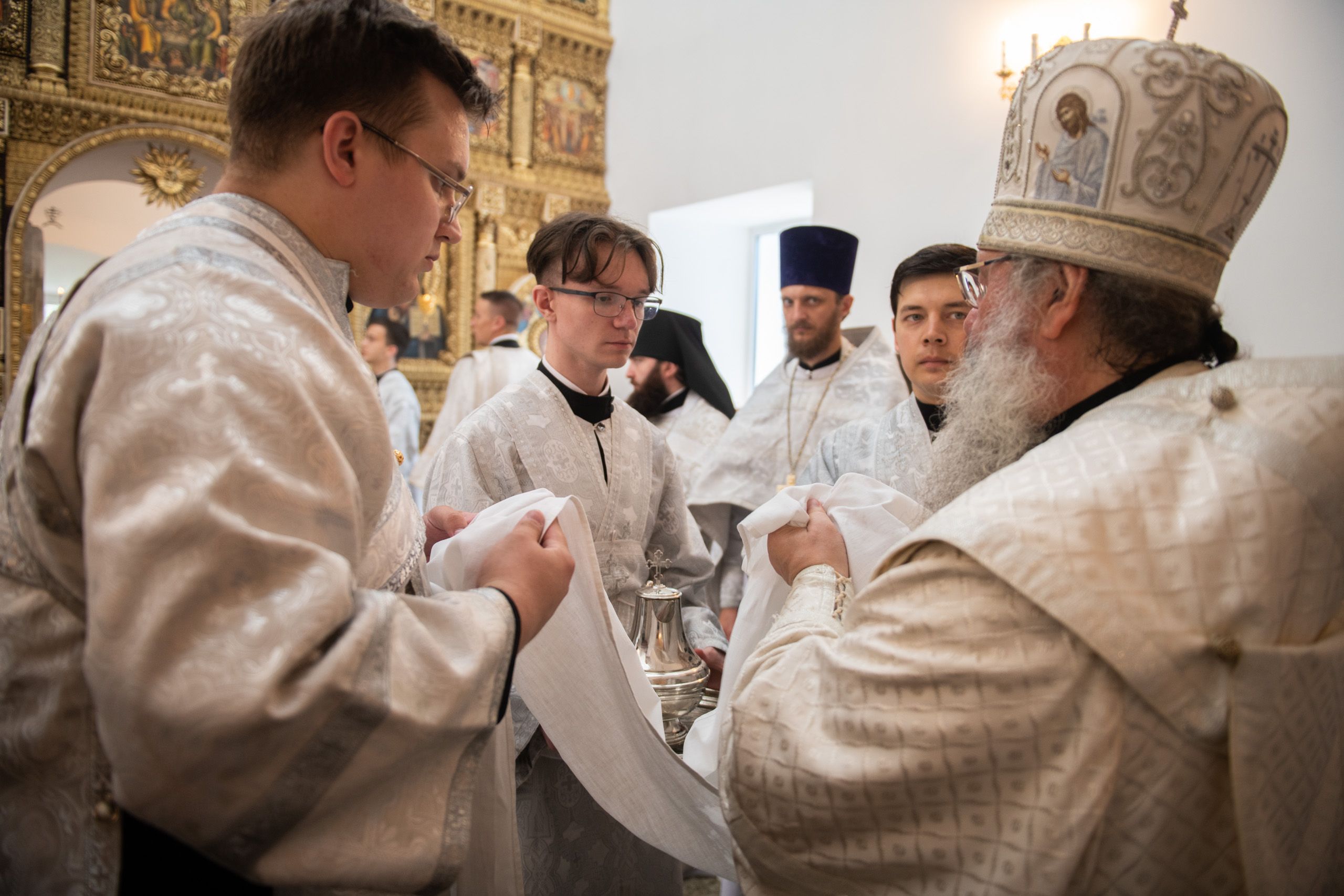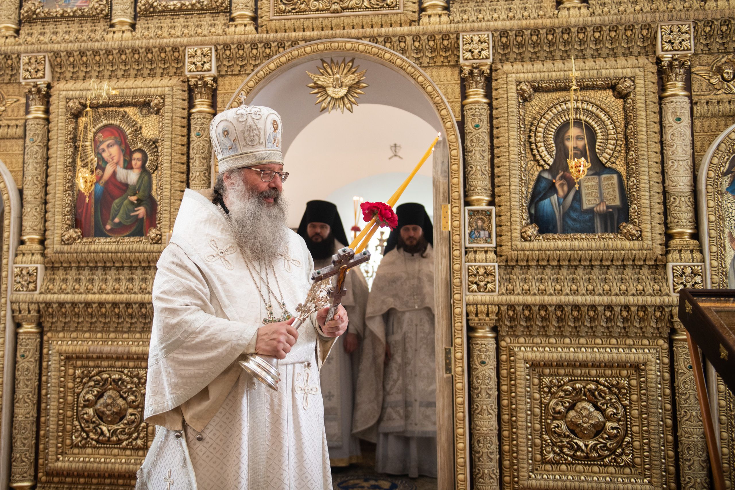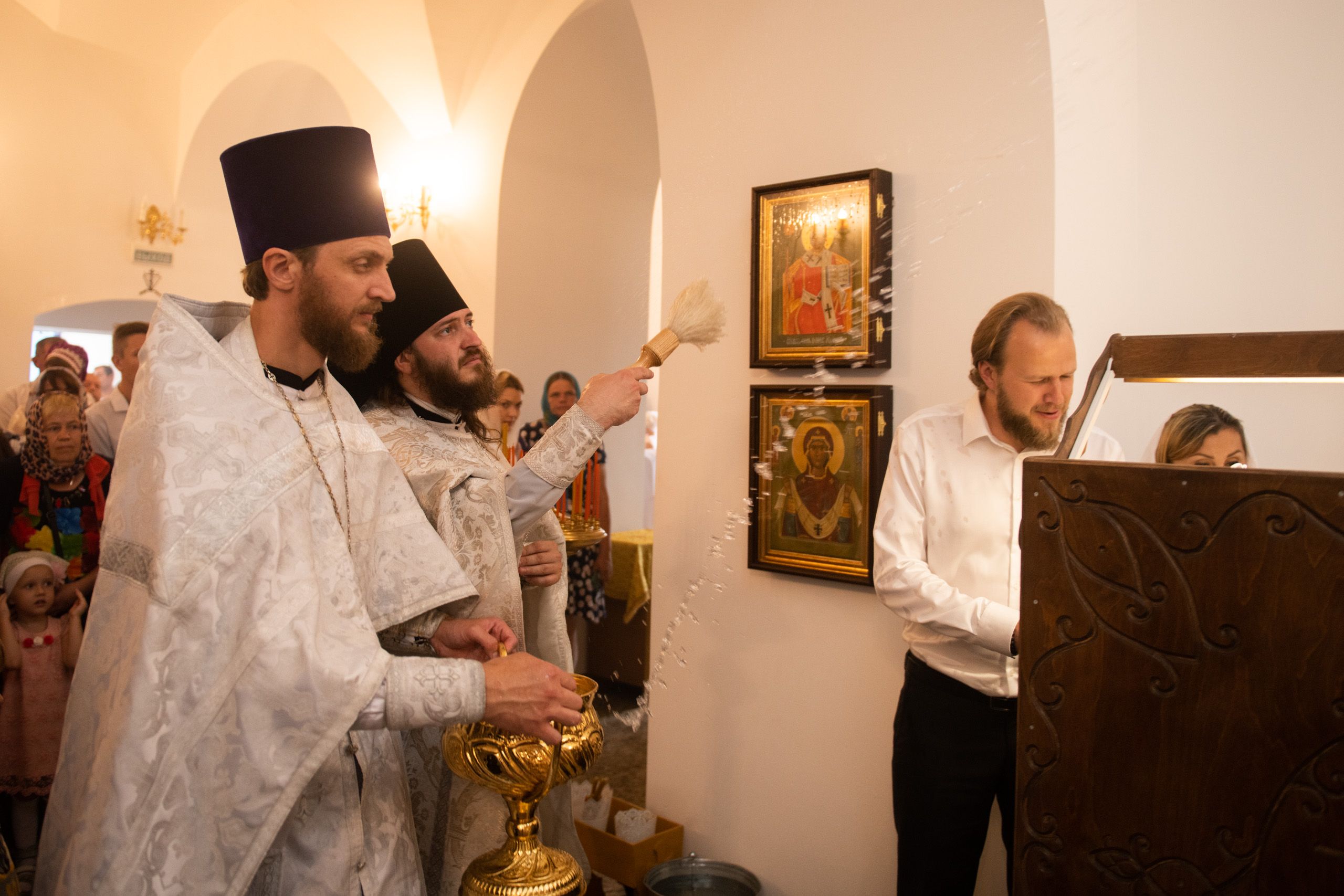 В храме три престола — в честь Покрова Пресвятой Богородицы, святителя Николая Чудотворца и иконы Божией Матери «Троеручица». По благословению Его Высокопреосвященства правый престол в честь иконы Божией Матери «Троеручица» освятили иеромонах Филипп (Киселёв), иеромонах Аркадий (Логинов), иерей Ярослав Петрущенков; левый Никольский престол — иеромонах Алексий (Яцейко), иерей Виктор Бельских, иерей Василий Крючков.