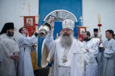 В завершение архипастырь преподал верующим благословение, а жители села преподнесли главе митрополии овощи нового урожая.