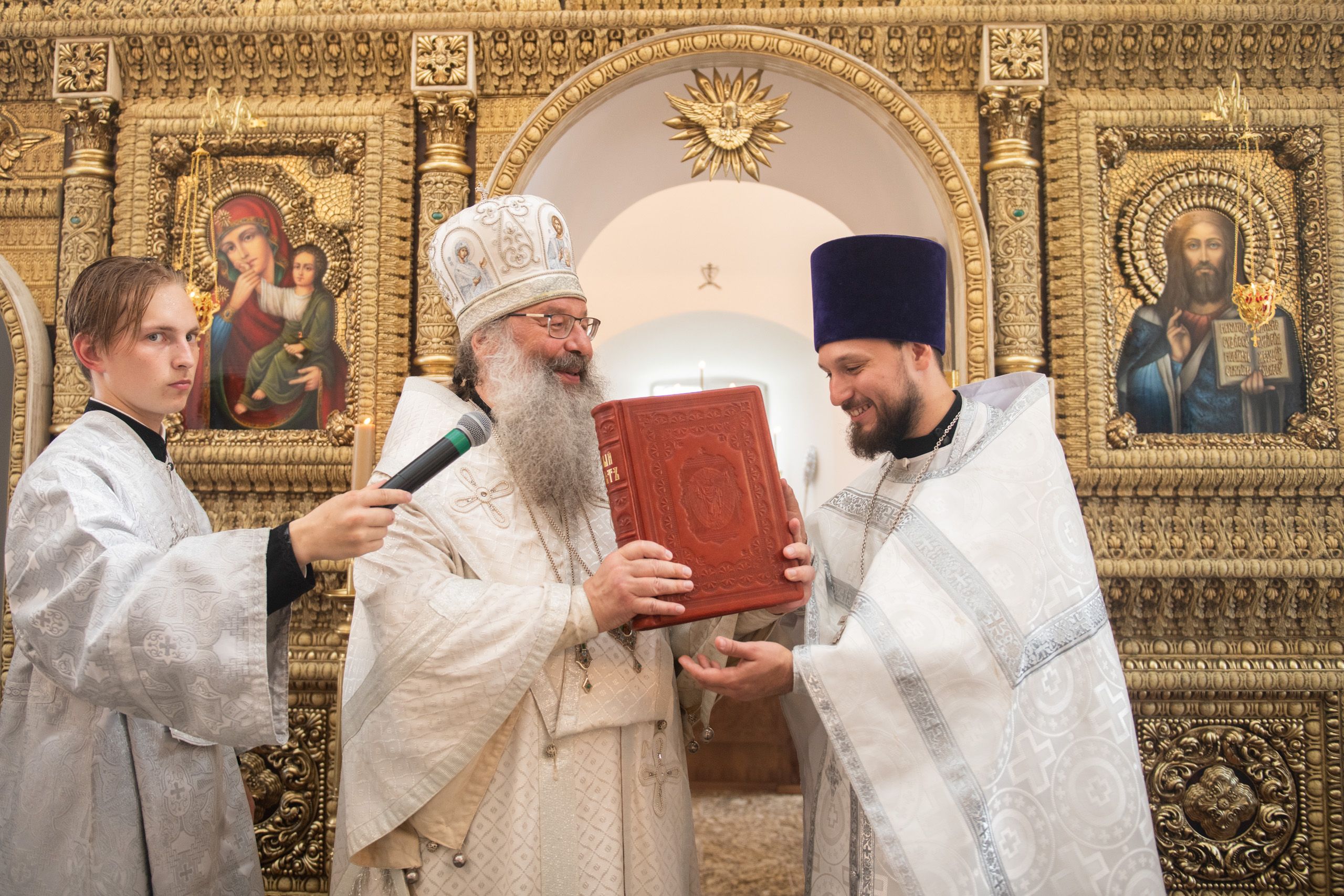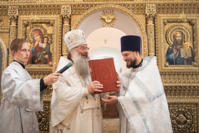 Также митрополит Кирилл передал отцу настоятелю одно из 27 напрестольных Евангелий, которые Святейший Патриарх Кирилл в рамках Первосвятительского визита в Казань 21 июня 2021 года благословил раздать новым приходам Татарстанской митрополии.