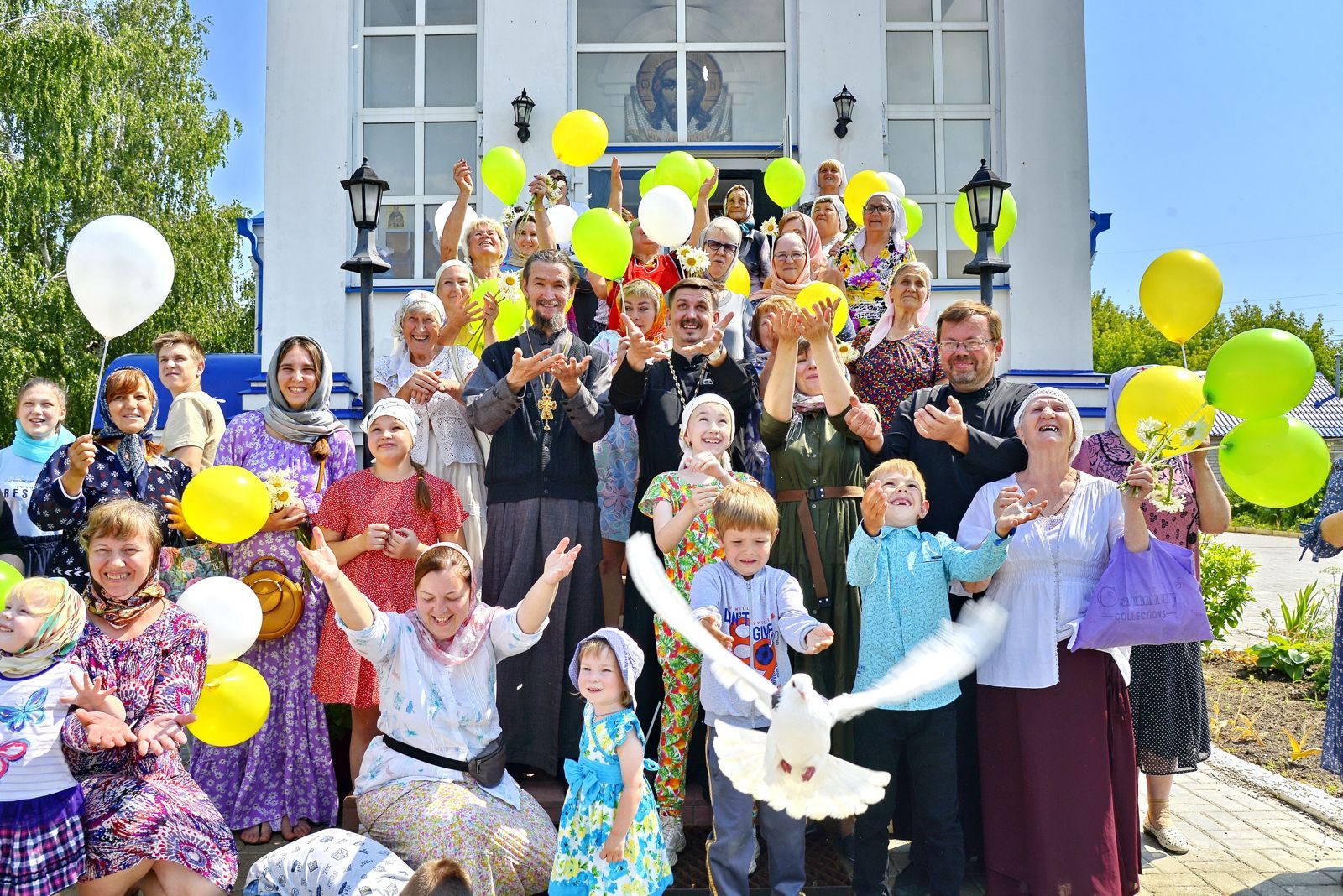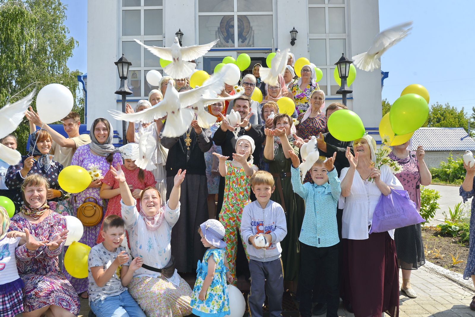 Всем прихожанам храма и гостям торжества священники и прихожане вручили воздушные шарики и ромашки, ставшие символом Дня семьи. Также по традиции взрослые и дети выпустили в небо белых голубей.