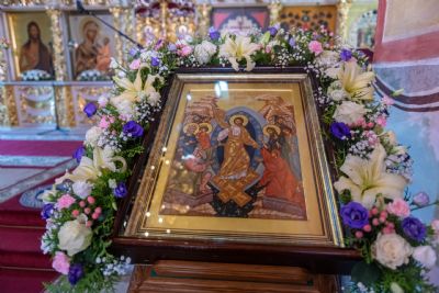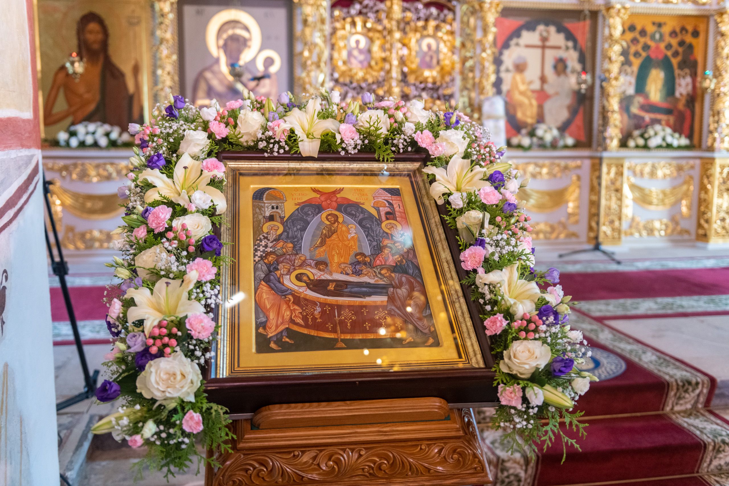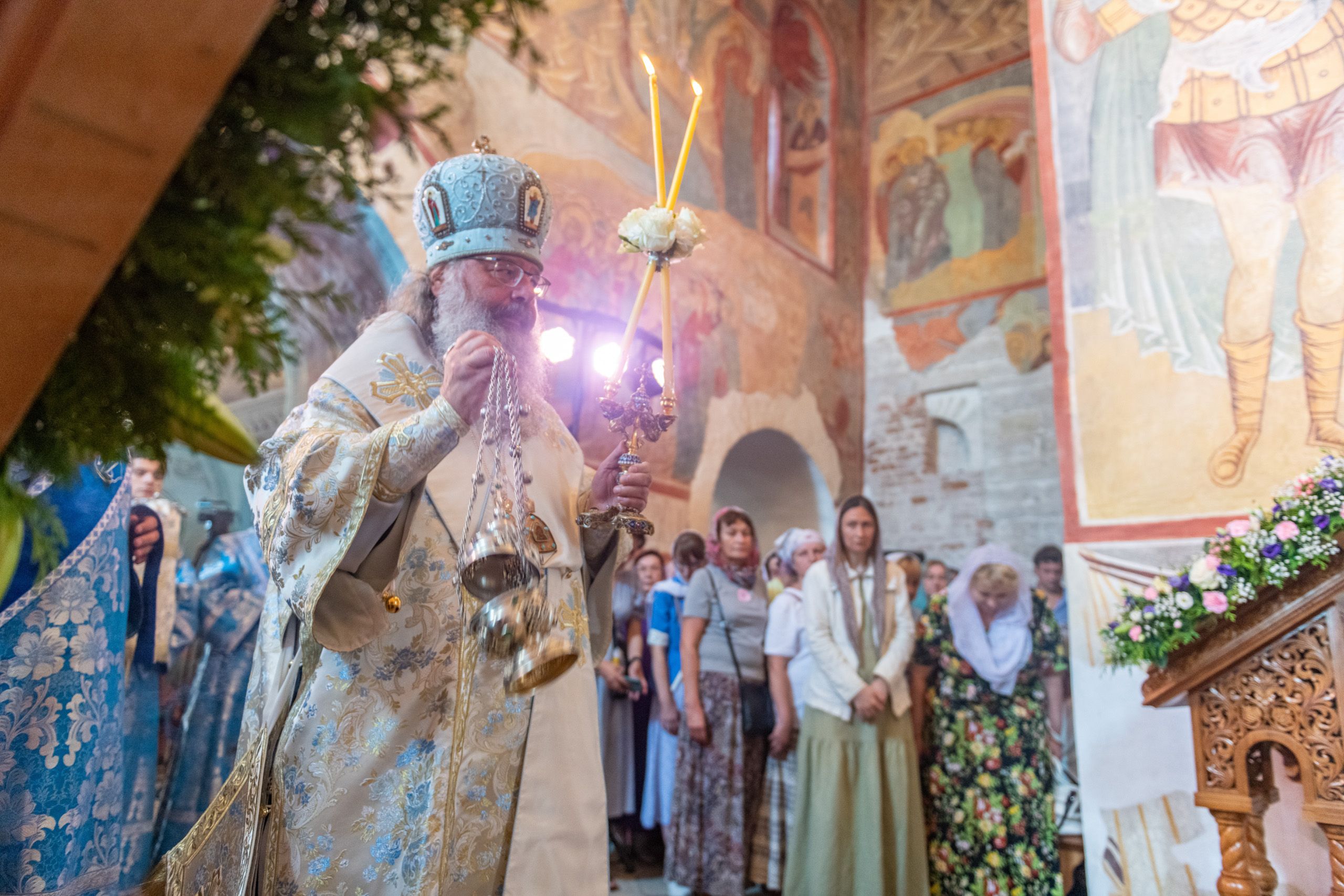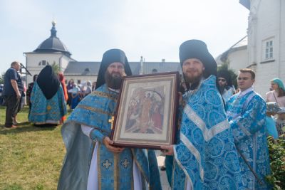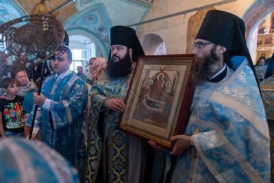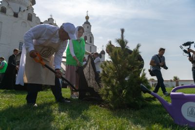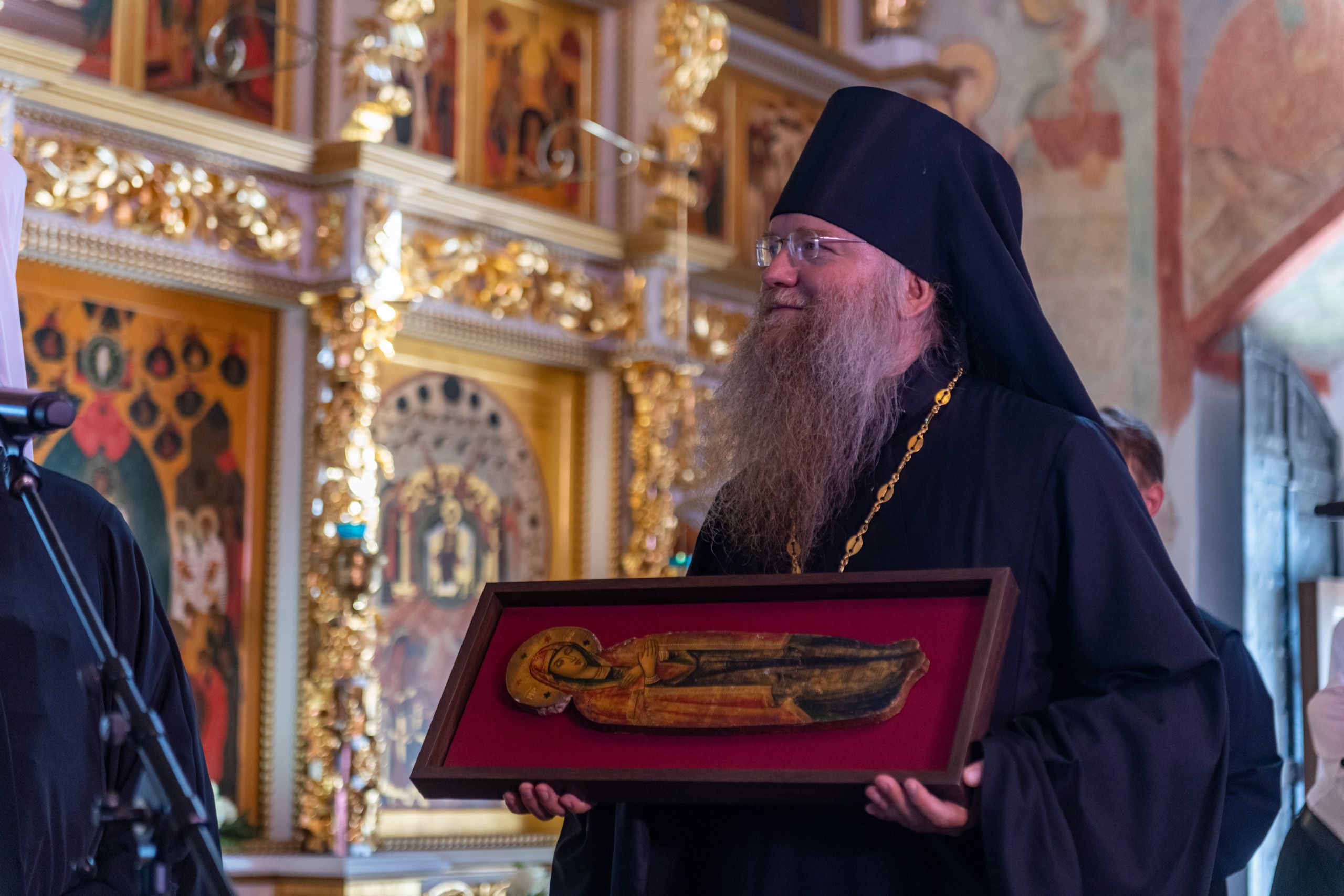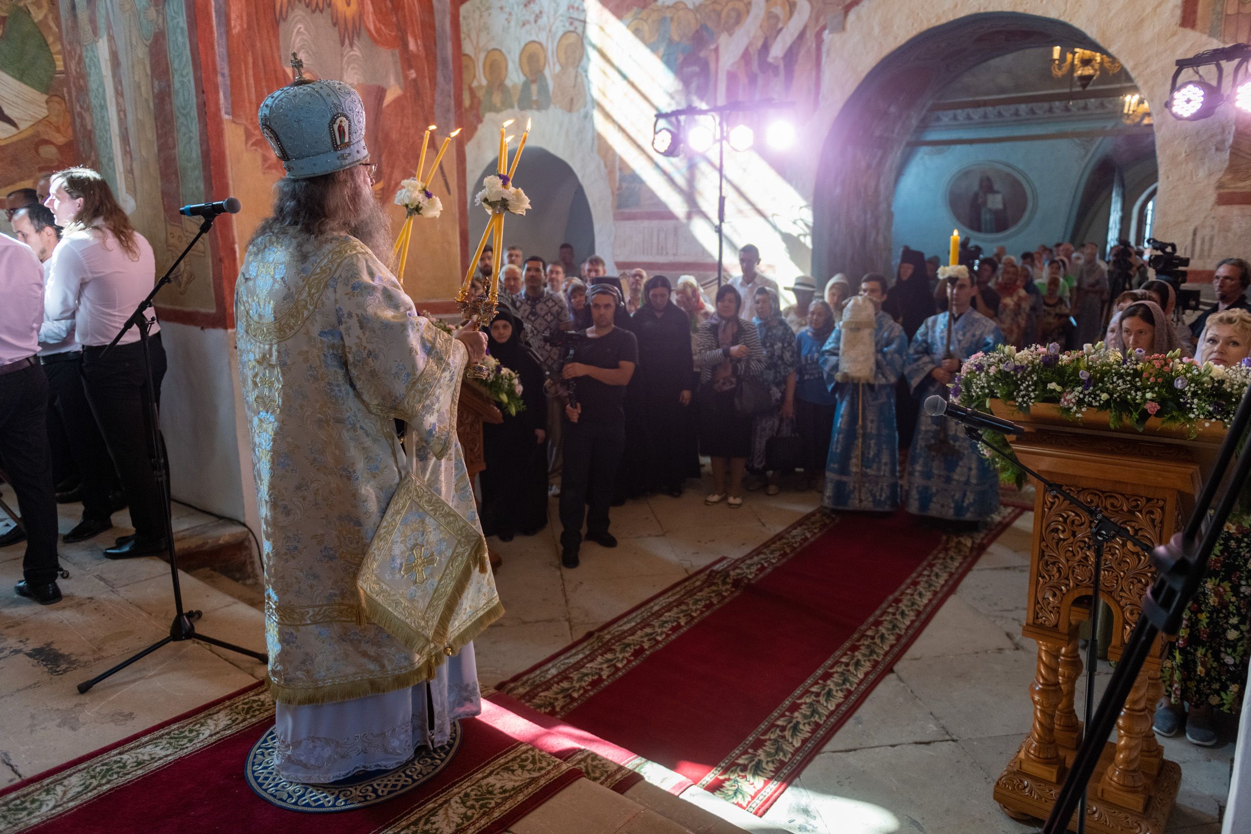 Всех вас поздравляю с удивительным материнским праздником любви Богородицы ко всем нам. Наши благочестивые предки поместили праздник Успения в центр своей духовной жизни и главные храмы старинных русских городов были освящены либо в честь Успения Богородицы, либо в честь Софии Премудрости Божией. Так и после основания Свияжска монахи Троице-Сергиевой лавры построили здесь первым храм в честь Живоначальной Троицы, а следом — Успенский. Почти 300 лет монахи совершали здесь своё служение — возносили молитвы, старались жить правильно, благочестиво. Но настало время, когда всё здесь залили кровью. Сегодня же исполнилось 25 лет с момента возрождения в Свияжске духовной жизни.