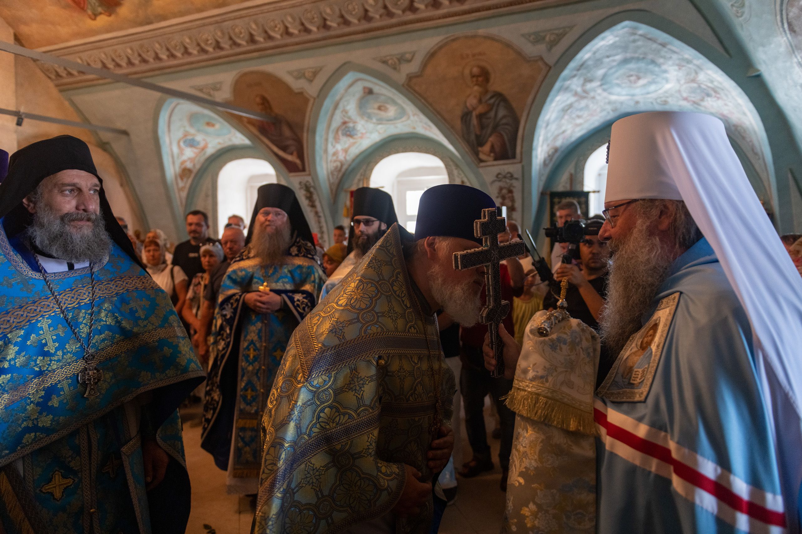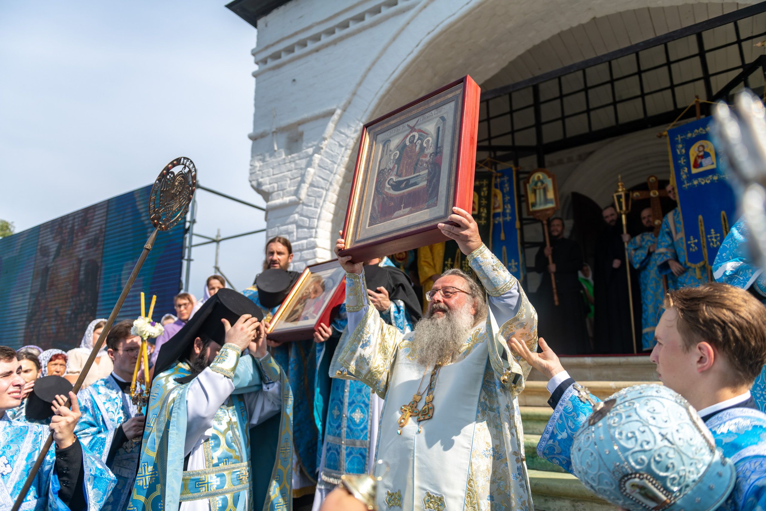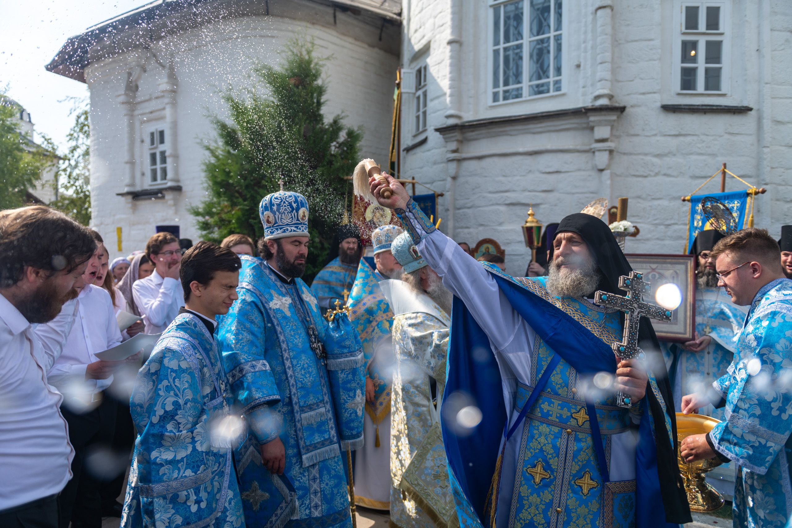 После Литургии состоялся крестный ход вокруг Успенского собора. На территории монастырского кладбища архипастыри, священники и миряне вознесли заупокойные молитвы. Также было совершено славление Царице Небесной.