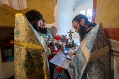 Богослужебные песнопения исполнил архиерейский мужской хор под управлением Дениса Рогова.