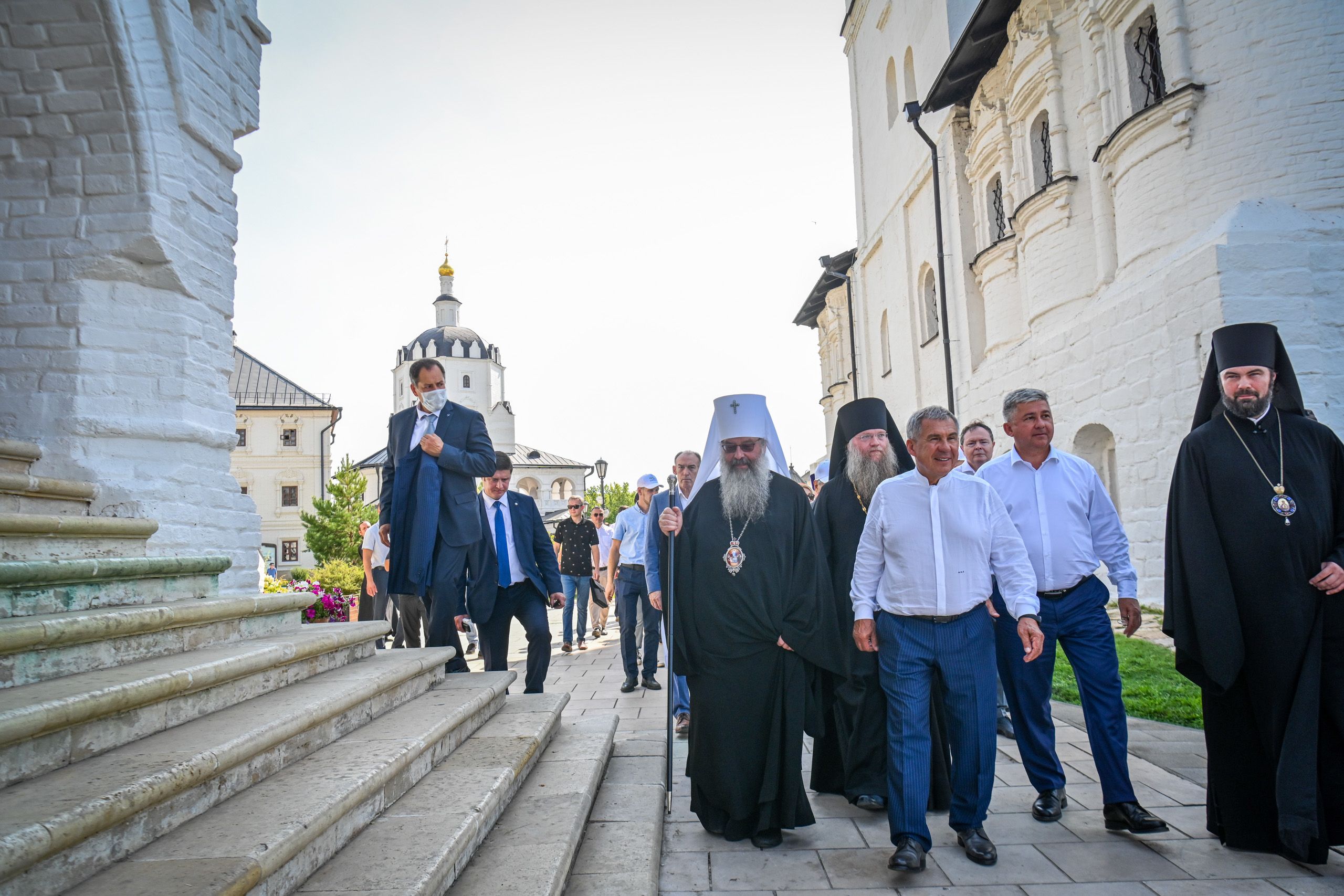 Свияжск является бесценным достоянием всех жителей нашей большой страны, жителей нашей республики. Мы живём в многонациональном, многоконфессиональном Татарстане. Между нами нет никаких споров, только взаимная поддержка. Я мусульманин, но я разделяю со всеми вами радость церковного праздника. Я искренне всех вас поздравляю. Желаю, чтобы на нашей земле был мир. В это непростое время мы, россияне, должны быть вместе.