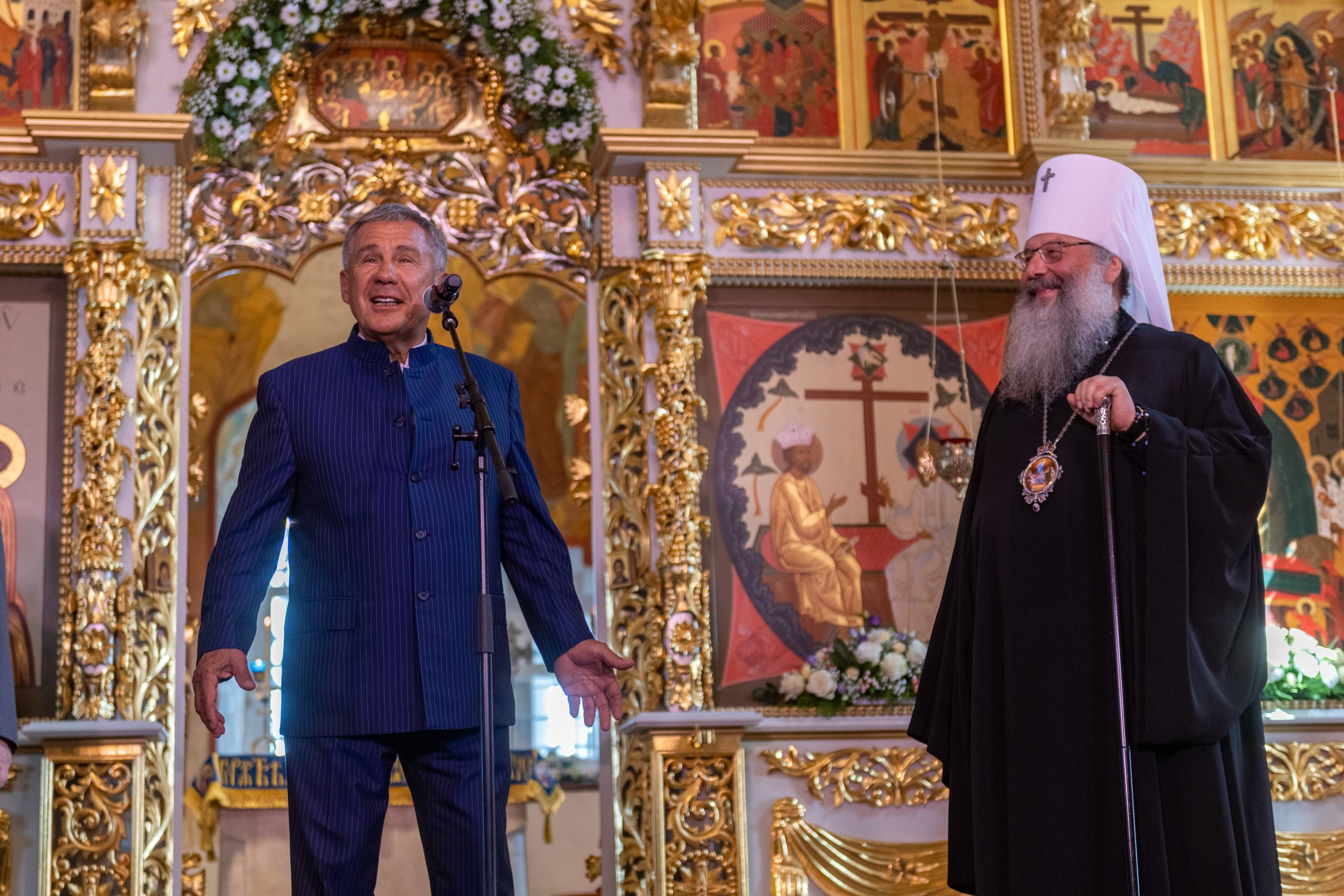 По окончании праздничного богослужения мы с прихожанами говорили о том, что должны быть благодарны добрым людям, которых Господь посылает нам на нашем пути. Сегодня, наши уважаемые, досточтимые президенты, мы хотим от всей Православной Церкви в Татарстане сказать вам большое спасибо за ваш труд, за вашу любовь к своему народу, к Родине, за то, что вы не делите жителей по национальному или религиозному признаку. Все люди для вас родные!