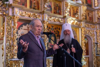 Митрополит Кирилл поздравил Рустама Минниханова, Минтимера Шаймиева и всех собравшихся с наступающим Днём Республики, пожелал доброго здоровья и Божией помощи.