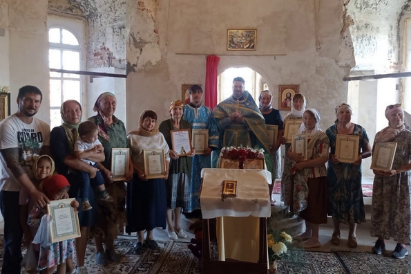 По завершении богослужения отец Ярослав обратился к молящимся с напутственным словом. Священник вручил грамоты мирянам, потрудившимся в деле возрождения храма.