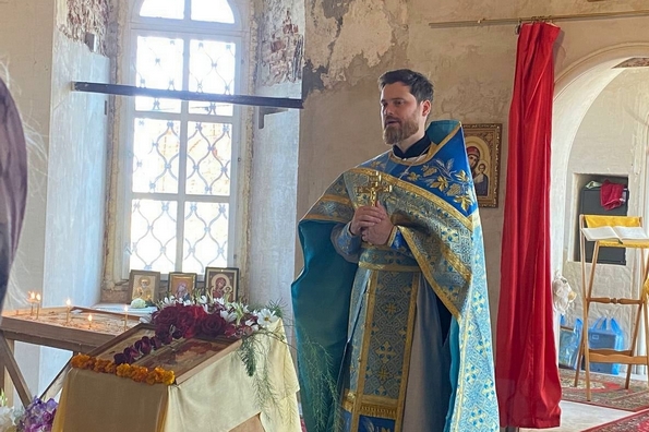 Божественную литургию в восстанавливающимся храме совершил иерей Ярослав Филиппов. За богослужением молились местные жители и гости села.