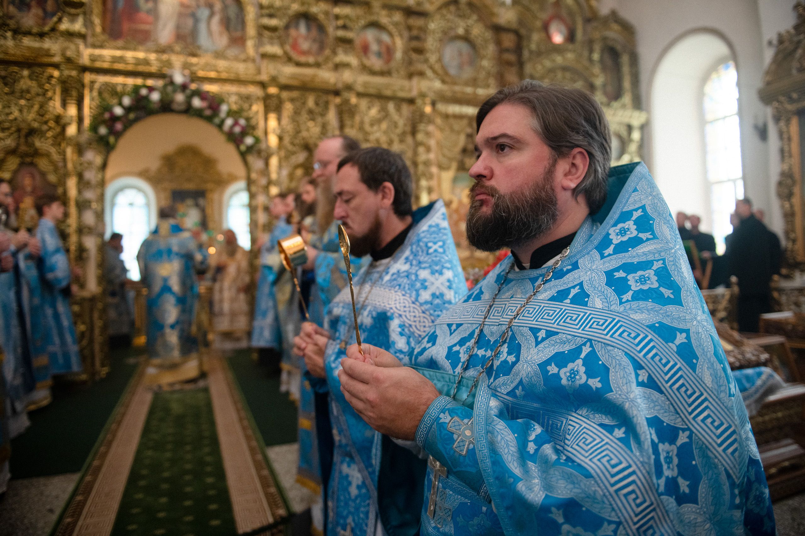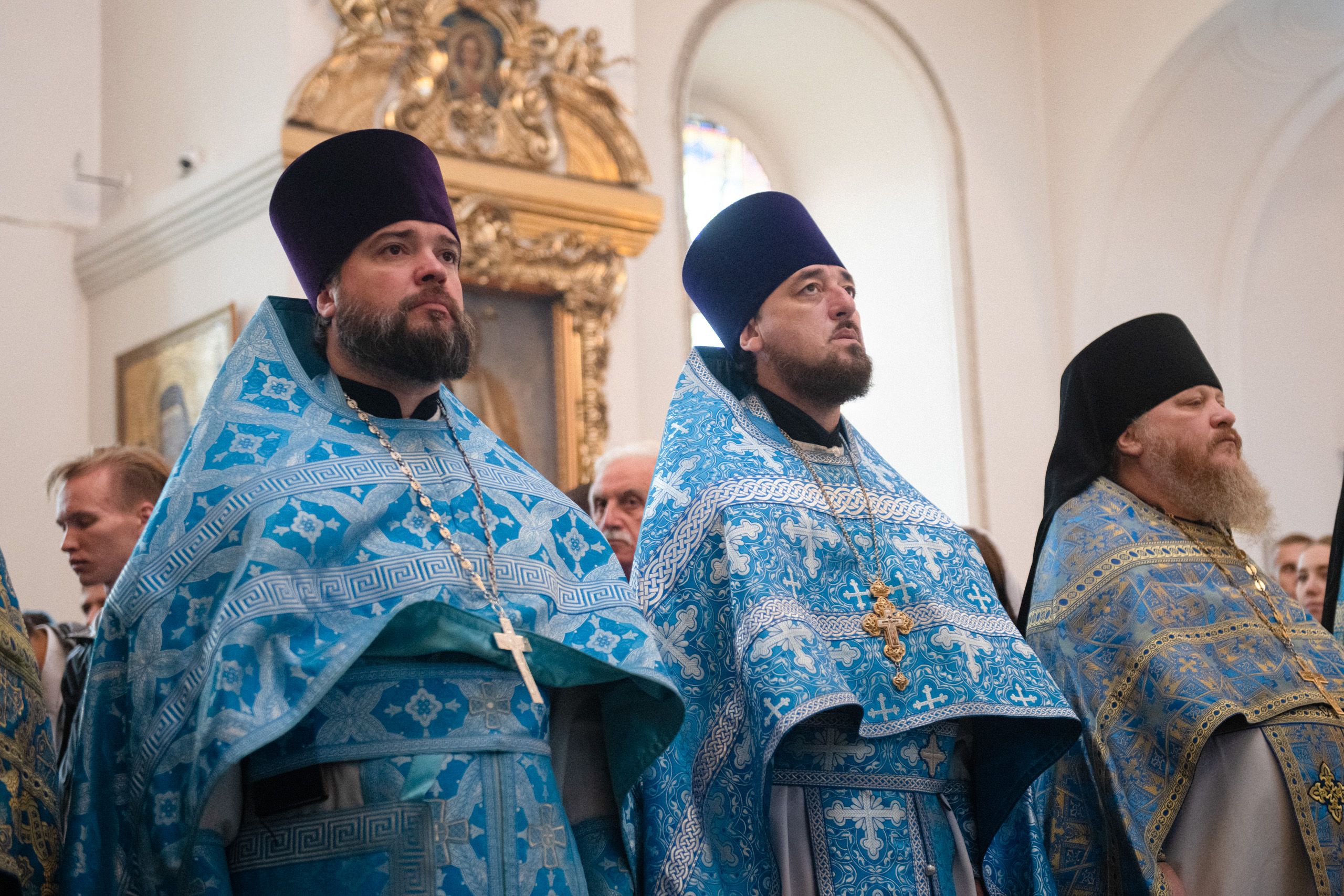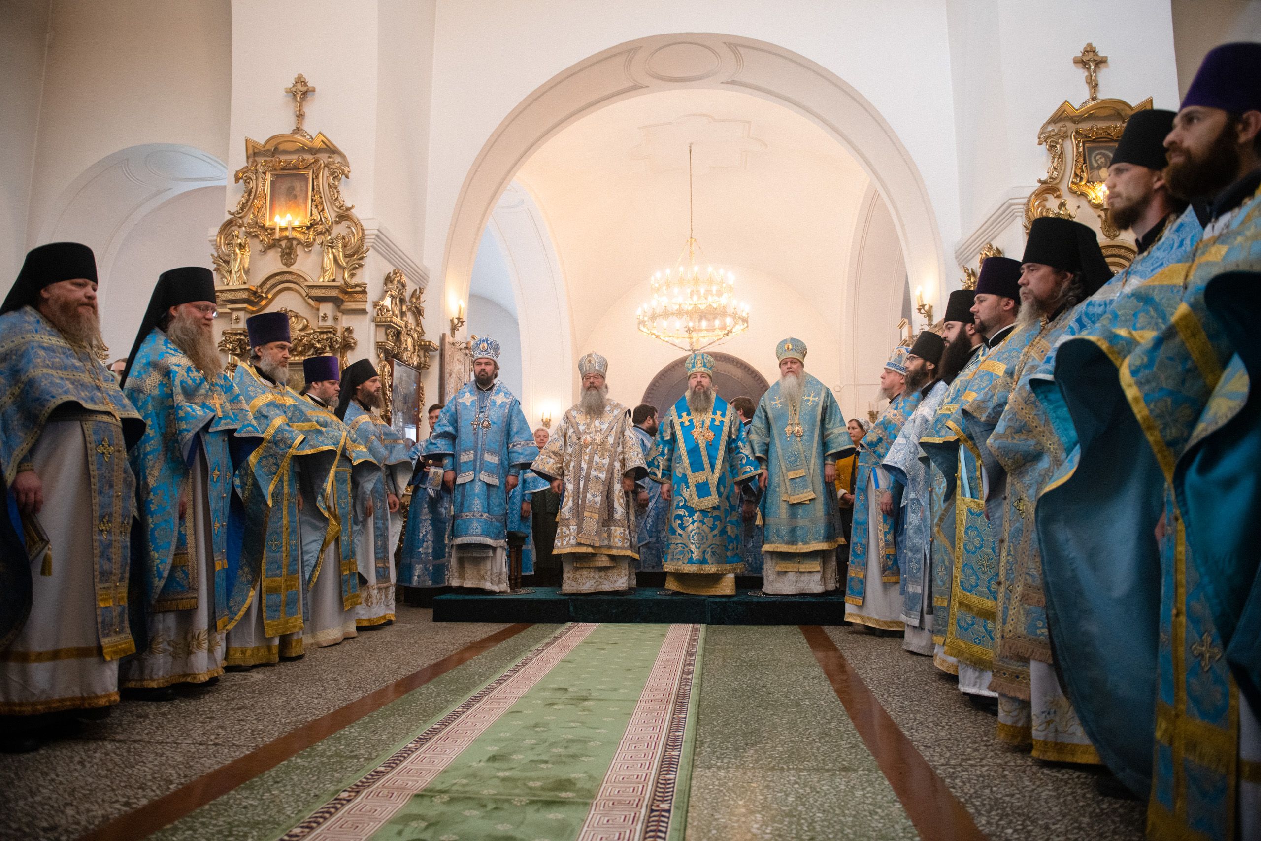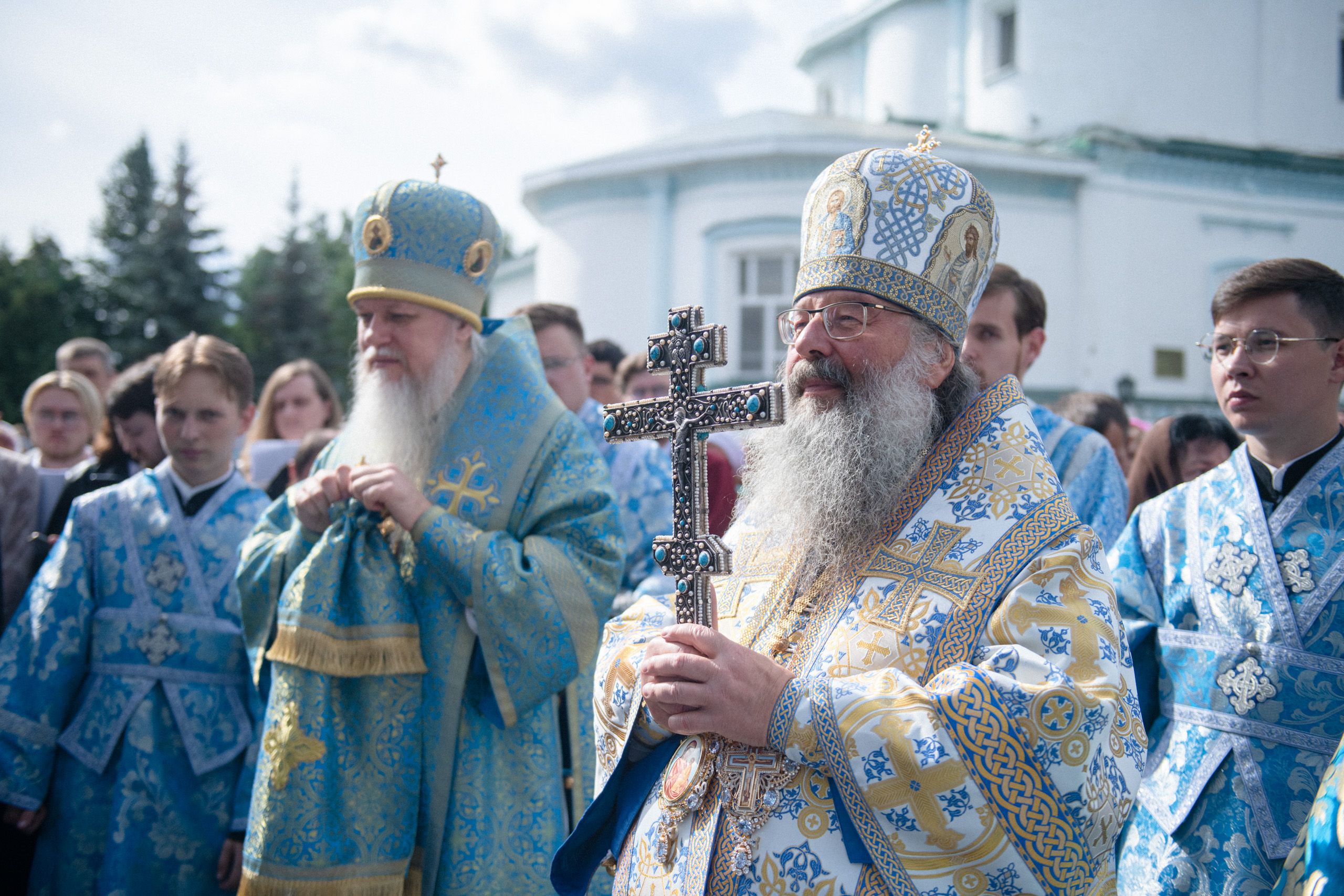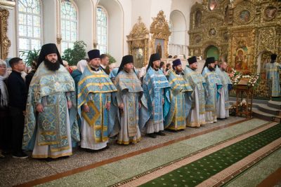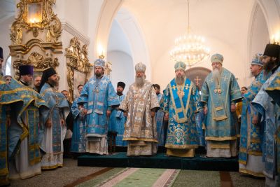Архипастырям сослужили секретарь Татарстанской митрополии иеромонах Кирилл (Корытко), ректор Казанской духовной семинарии протоиерей Владимир Самойленко, наместник Раифского монастыря игумен Гавриил (Рожнов), настоятель Введенского Кизического мужского монастыря игумен Пимен (Ивентьев), наместник Казанско-Богородицкого мужского монастыря игумен Марк (Виленский), наместник Свияжского Богородице-Успенского мужского монастыря игумен Симеон (Кулагин), настоятель Иоанно-Предтеченского мужского монастыря иеромонах Гурий (Ананьев), настоятель Вознесенской Макарьевской мужской пустыни иеромонах Амвросий (Горновский), первый проректор Пензенской духовной семинарии протоиерей Николай Грошев, настоятель храма Новомучеников и исповедников Церкви Русской города Казани протоиерей Андрей Лосык, настоятель храма Казанской иконы Божией Матери иерей Евгений Гаврилкин, первый проректор КазДС иерей Никита Кузнецов, клирик Альметьевской епархии иерей Максим Аширматов, духовенство Казанской и Пензенской епархий, насельники Раифского монастыря в священном сане.