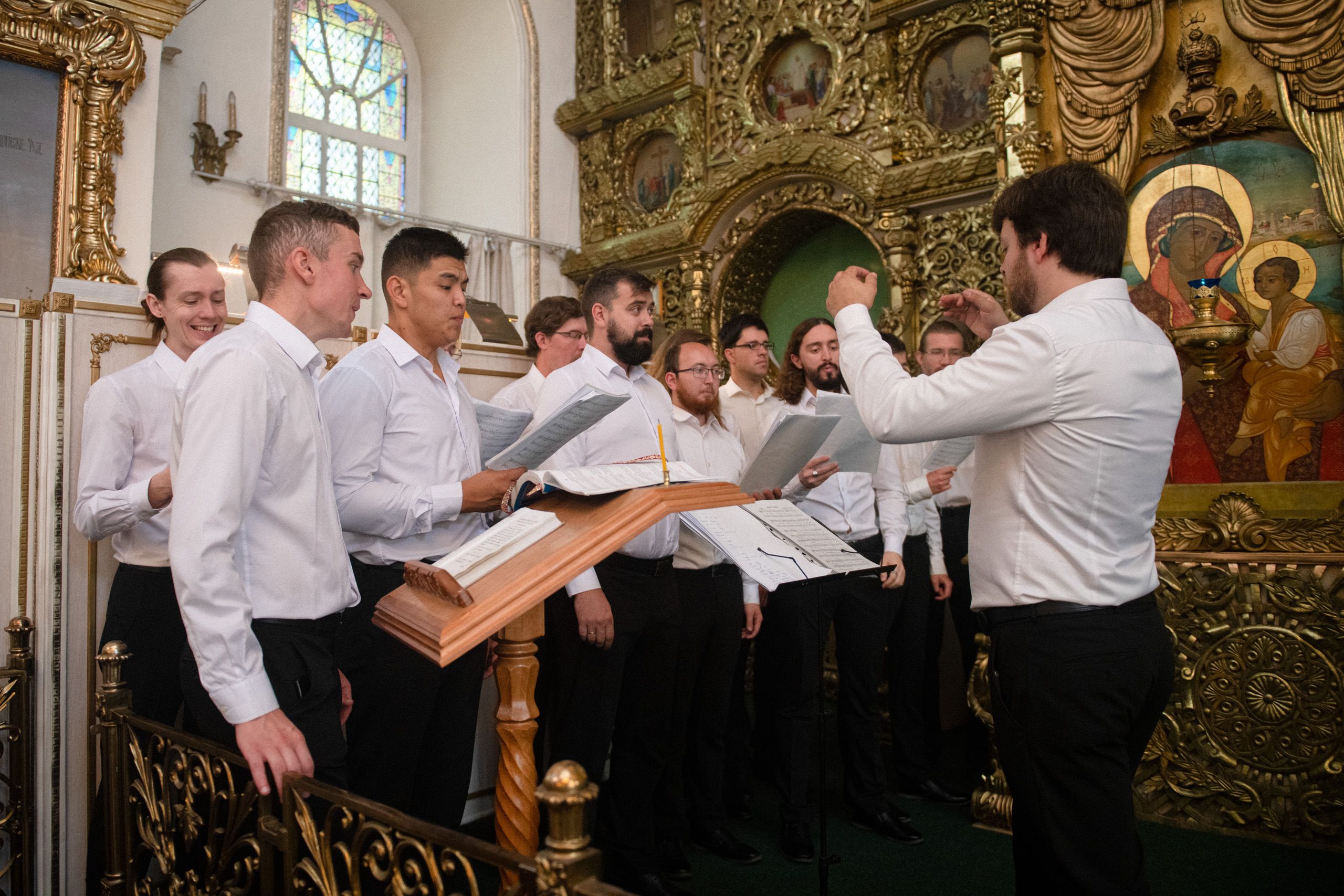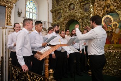 Песнопения исполнялись архиерейским мужским хором (регент — Денис Рогов), монастырским мужским хором (регент — диакон Сергий Уренцев), московским мужским церковным хором «Сихарули» (регент — Шота Мушкудиани).