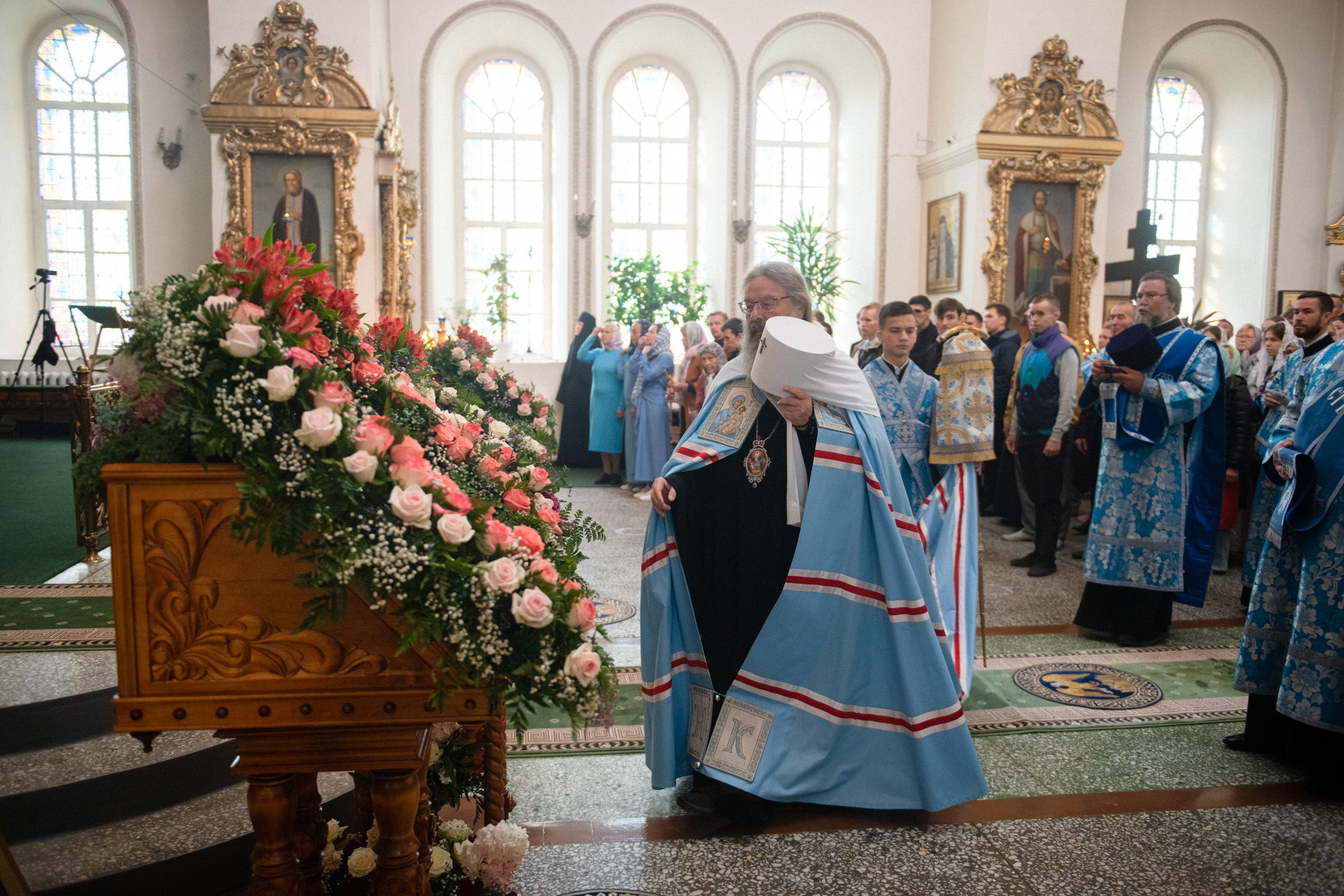 4 сентября 2022 года, в Неделю 12-ю по Пятидесятнице, праздник в честь Грузинской иконы Божией Матери, митрополит Казанский и Татарстанский Кирилл, митрополит Пензенский и Нижнеломовский Серафим, епископ Альметьевский и Бугульминский Мефодий и епископ Волжский и Сернурский Феофан совершили Божественную литургию в Троицком соборе Раифского Богородицкого мужского монастыря.